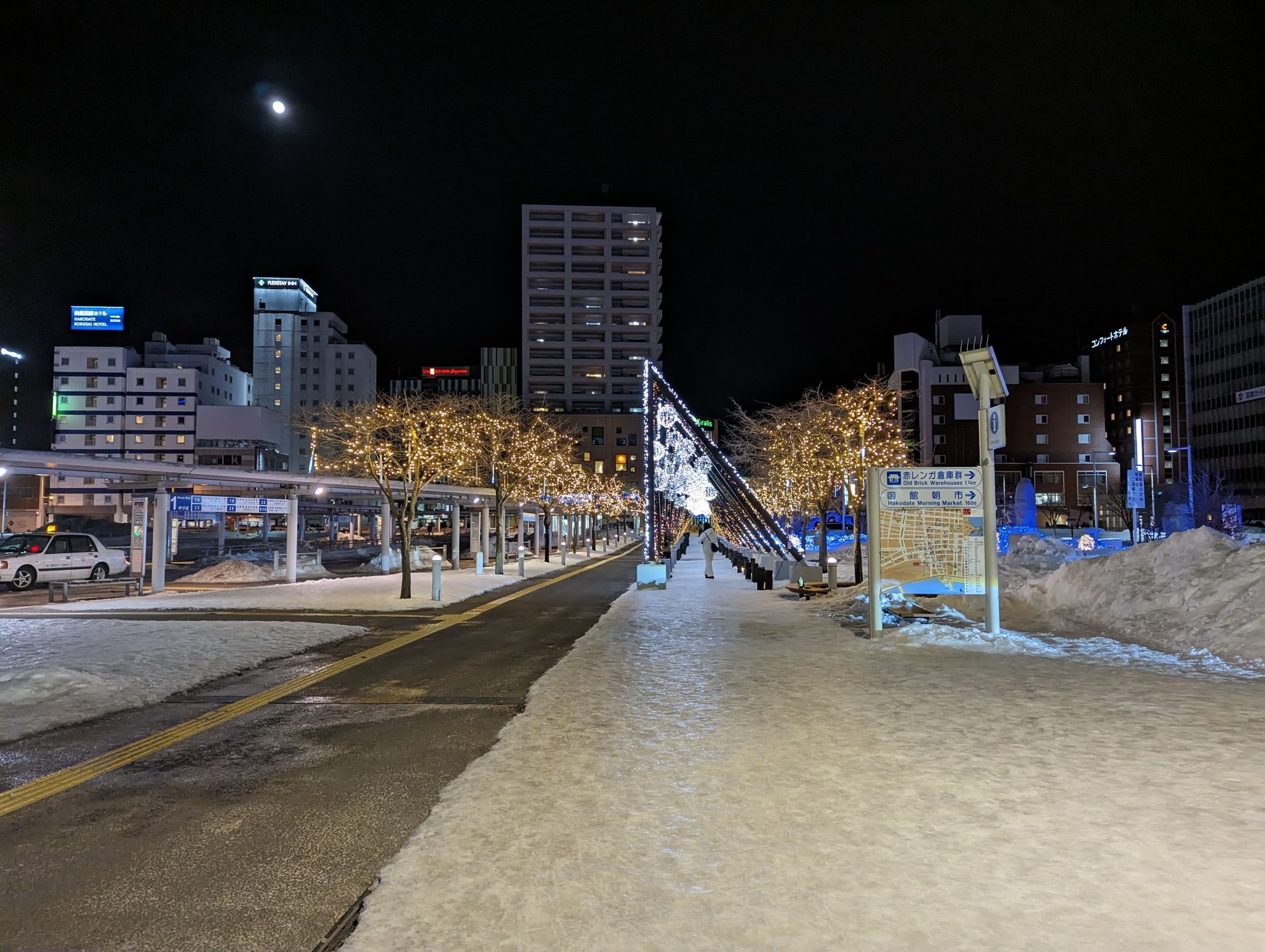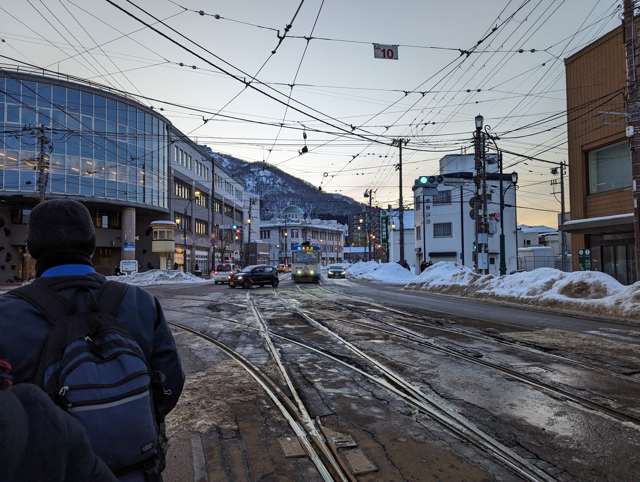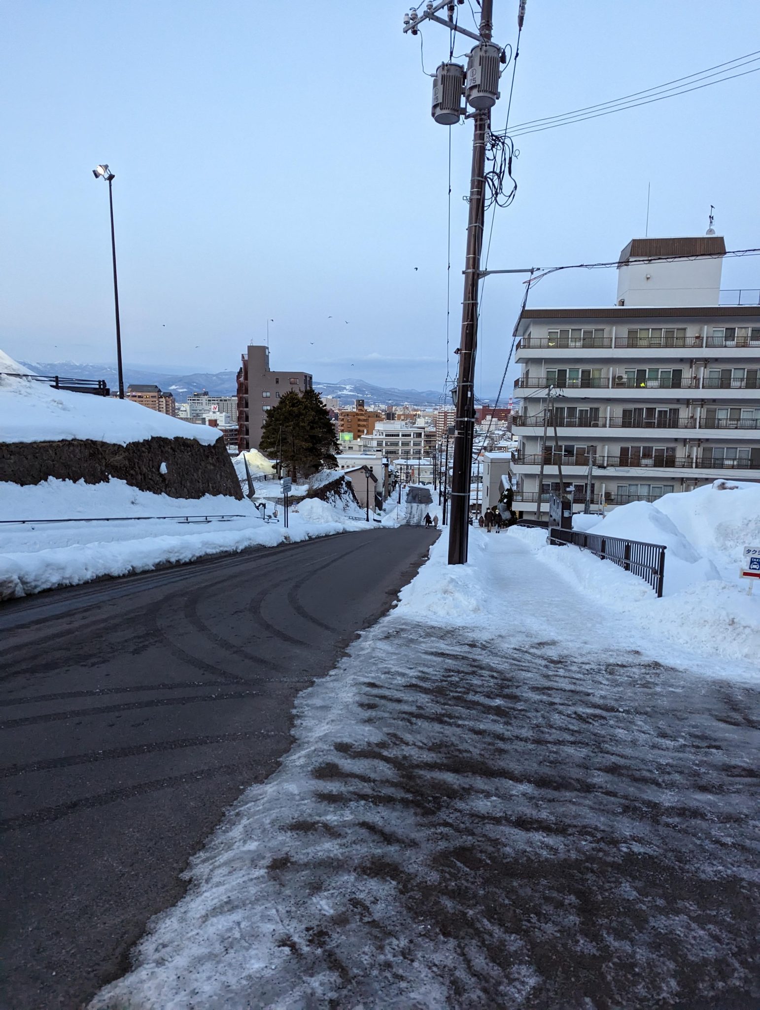 My main goal is to get to the Hakodate Ropeway to head up Mount Hakodate. In order to get there, I will need to ride a street car and walk a few blocks up a relatively steep hill. One of the things I noticed is that snow clearing isn’t great for pedestrians. While winter weather is expected, heading up a pretty steep incline (and later coming back down) is actually quite treacherous in these icy conditions! In fact, I did witness someone take a tumble and proceed to “slide” down half a block before they came to a stop. With this in mind, many pedestrians (myself included) opted to walk in the streets where our footwear has a bit more traction!