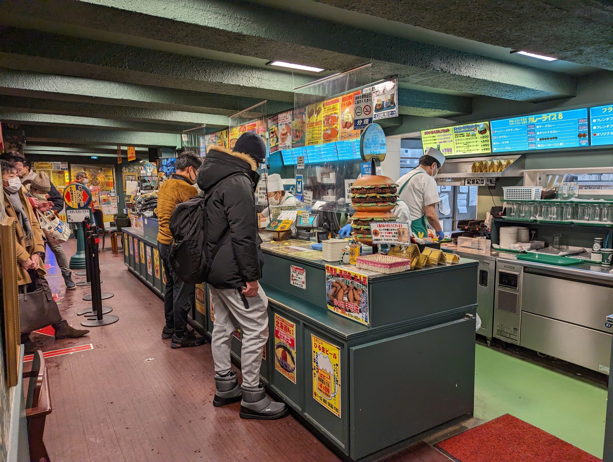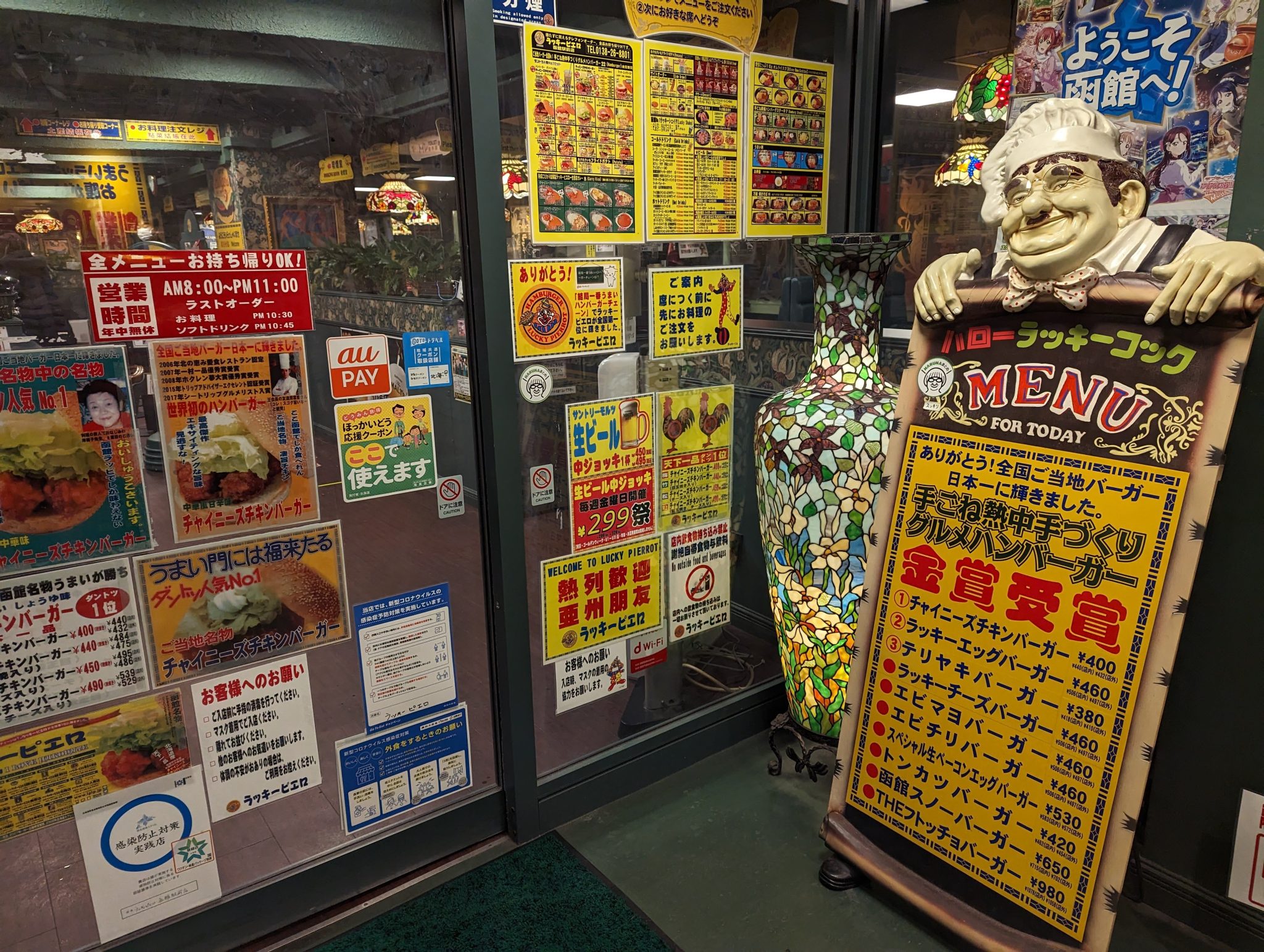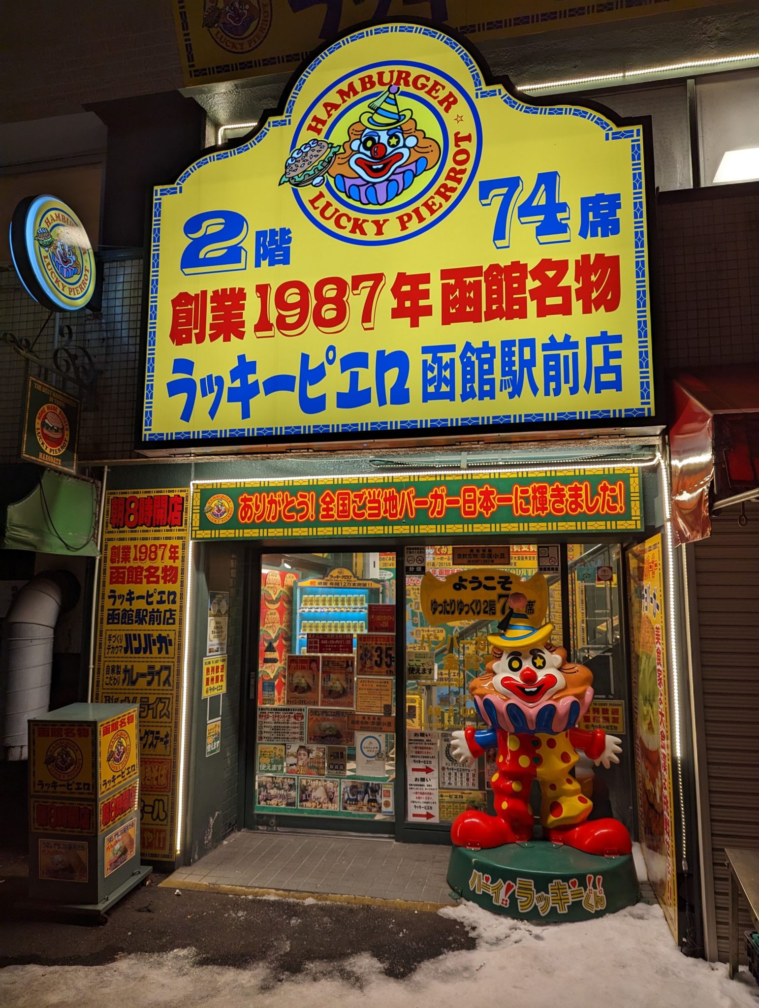 Eventually, I make my way back down the ropeway. And after navigating the slippery and quite honestly, treacherous walk down the hill. My mind is now set on dinner and I have my eyes on a fairly unique restaurant called Lucky Pierrot. It is a local “burger” joint that can only be found in Hakodate. It almost like a diner but with some incredibly wacky decor and a fairly extensive menu.