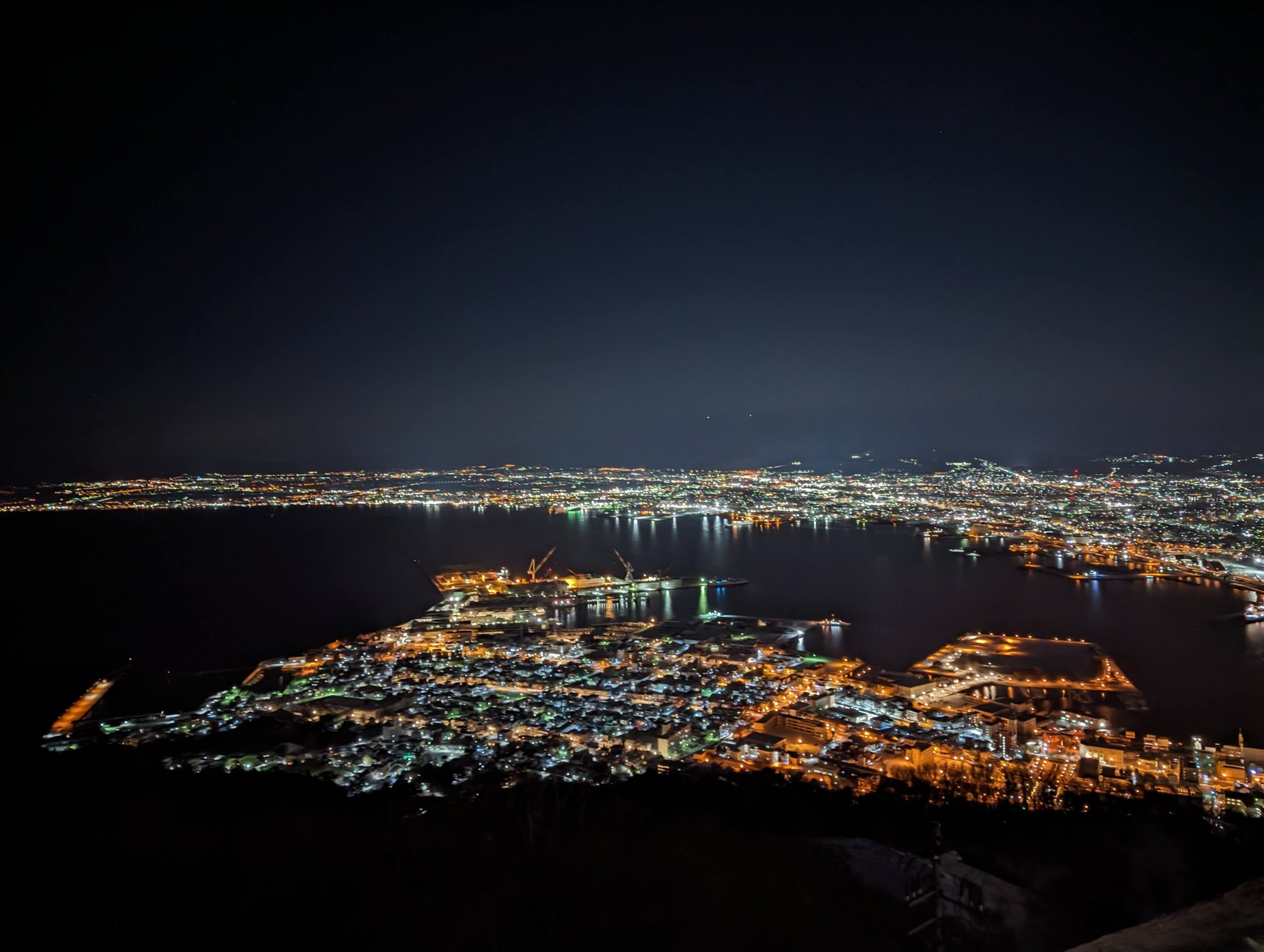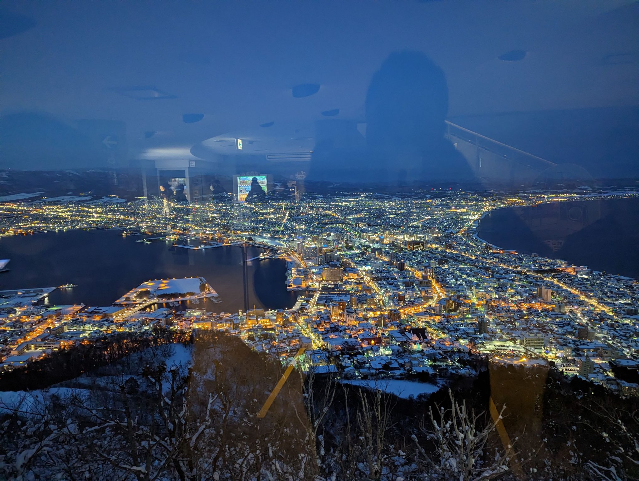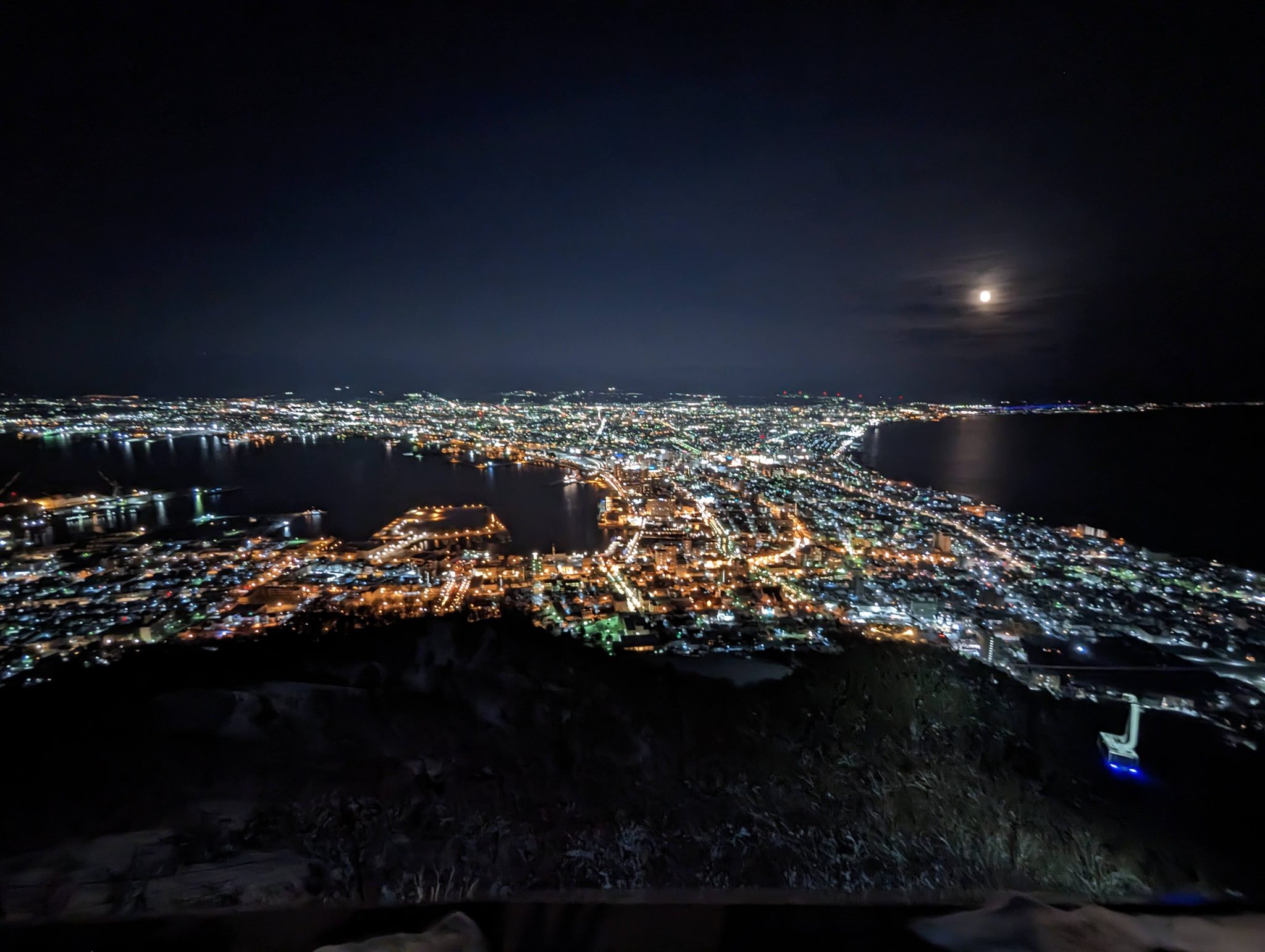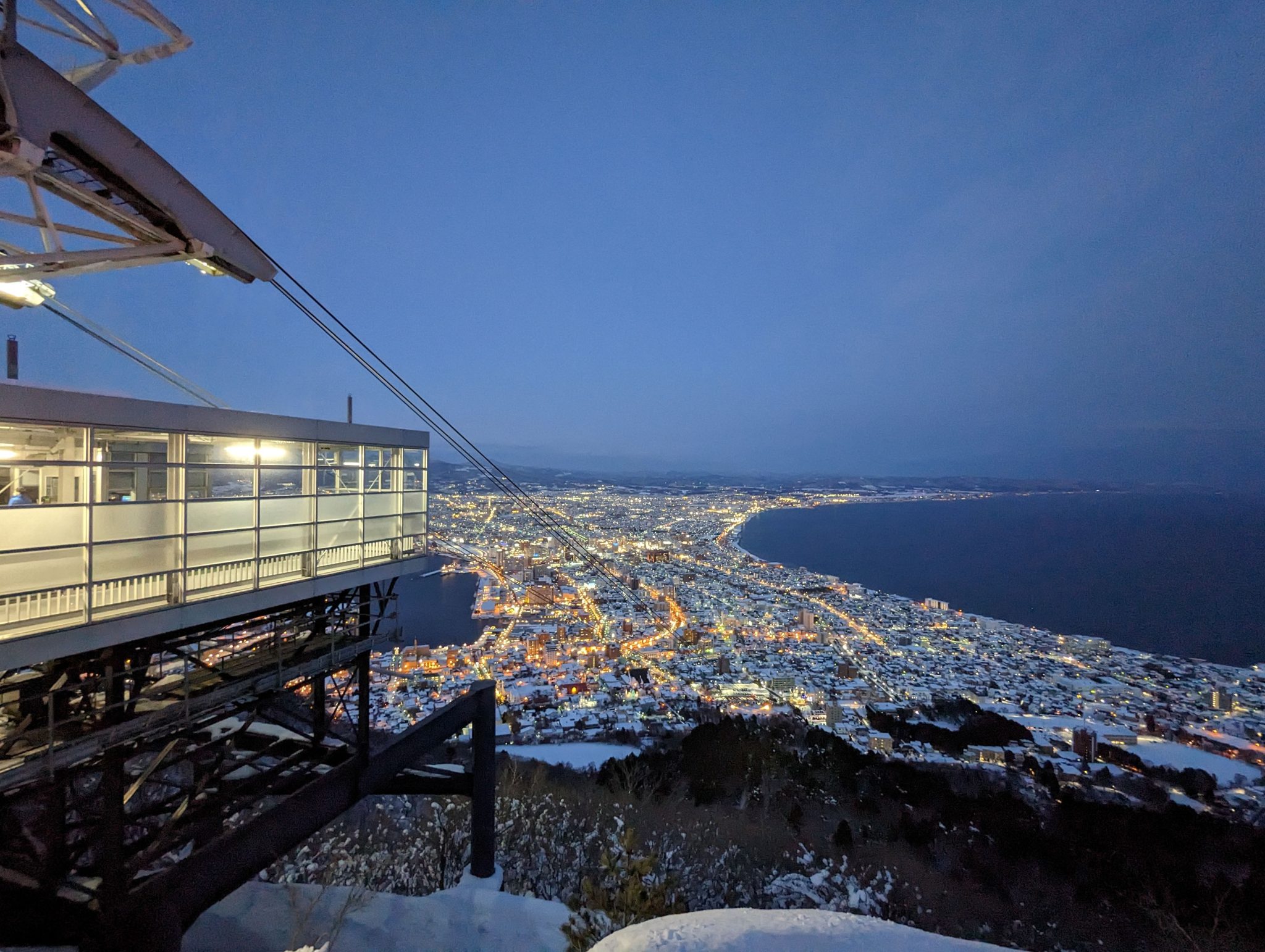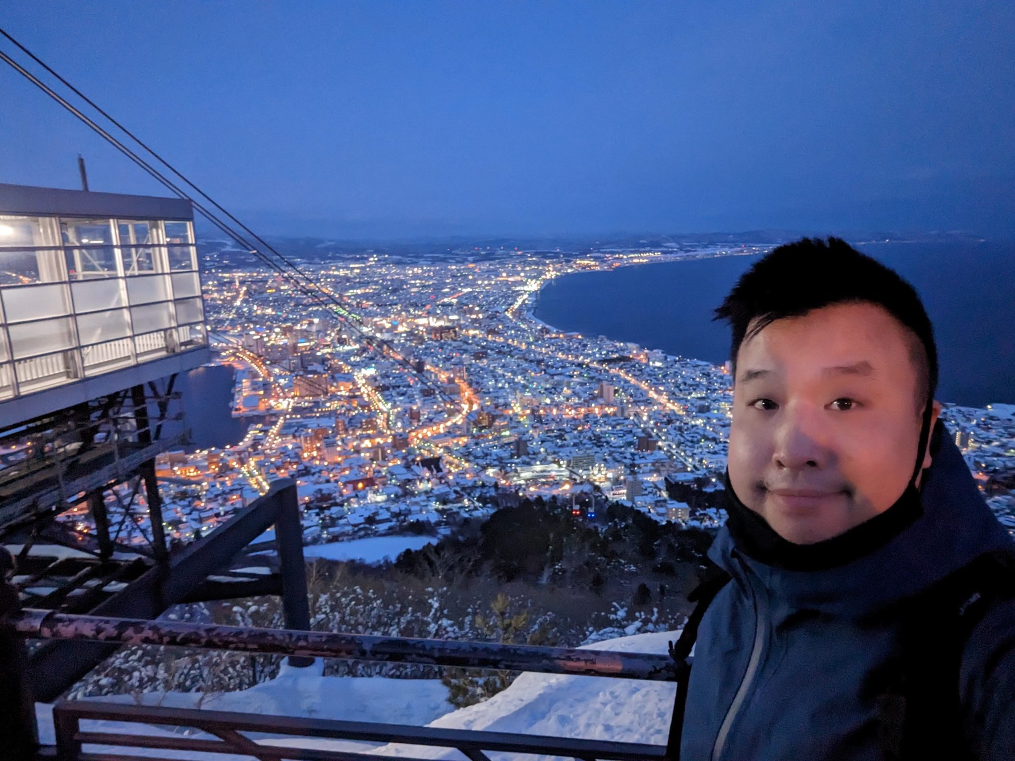 Once at the top, the minute you leave the ropeway car, you get a good appreciation on why this spot is so popular! The view is spectacular and especially when you come at sunset/early evening the “character” of the view changes the longer you stay! Hakodate is “sandwiched” between two bodies of water so seeing the lights contrast by sea on both sides makes for a really cool sight!