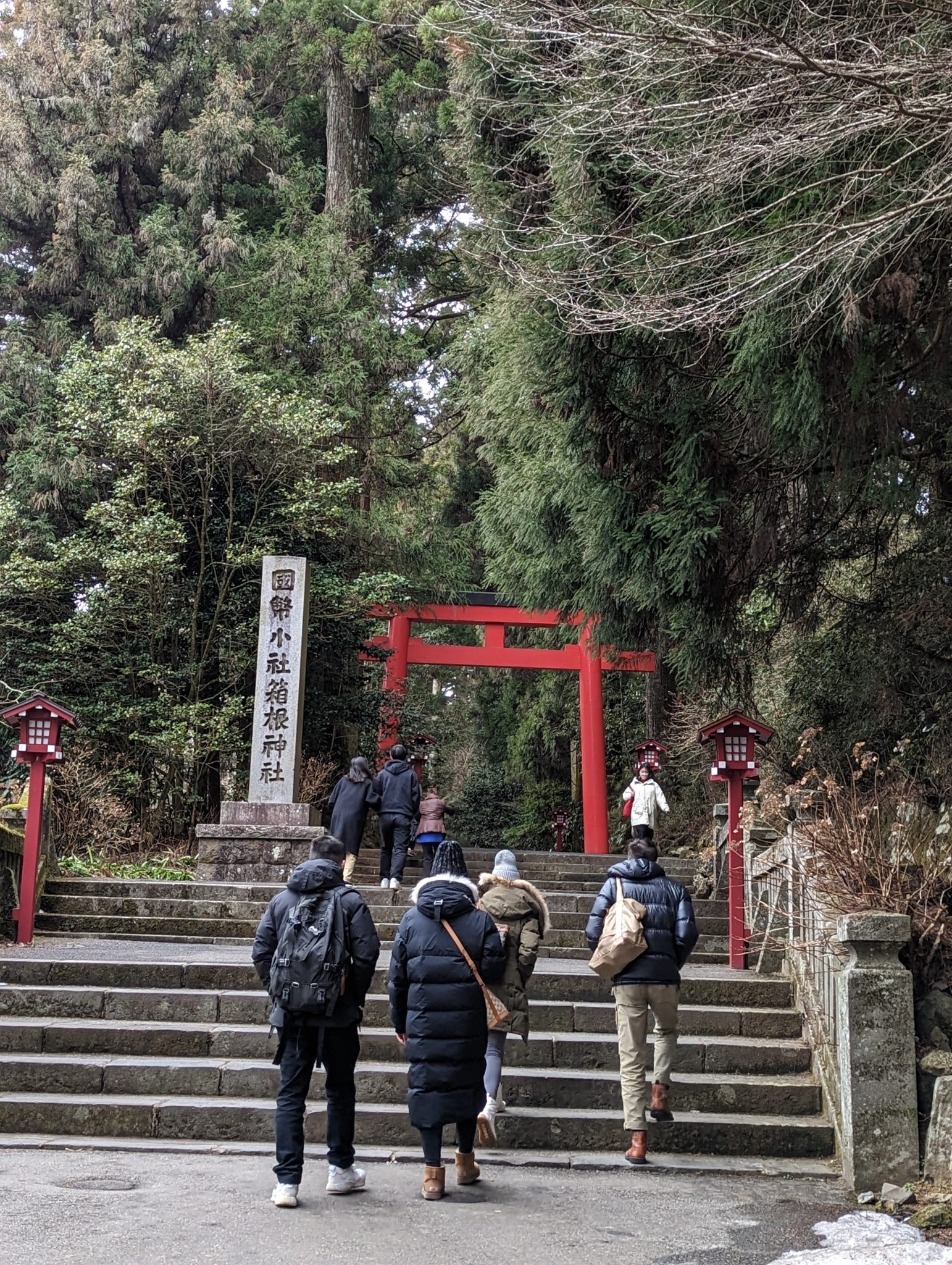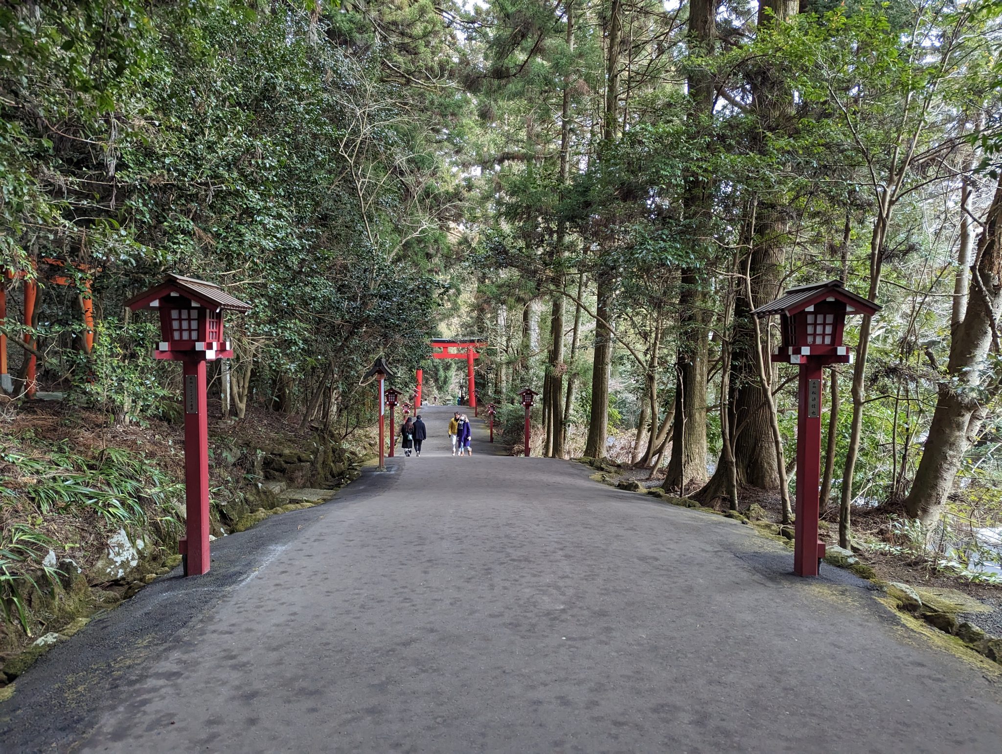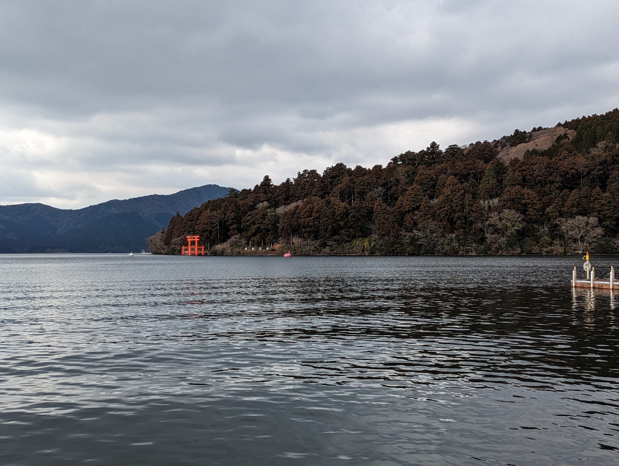 Upon arriving at Lake Ashi, I have a little time to kill before I’m to board the ship to continue the round course. Nearby is the Hakone-Jinja Shrine which has a floating Torii gate that is quite popular for tourists to take photos of. It’s a short walk from my bus stop, but unfortunately when I get there, I find that the torri gate is closed to the public. While its a small bummer, I head back to the dock and drown my sorrow in some coffee and a very tasty strawberry pastry