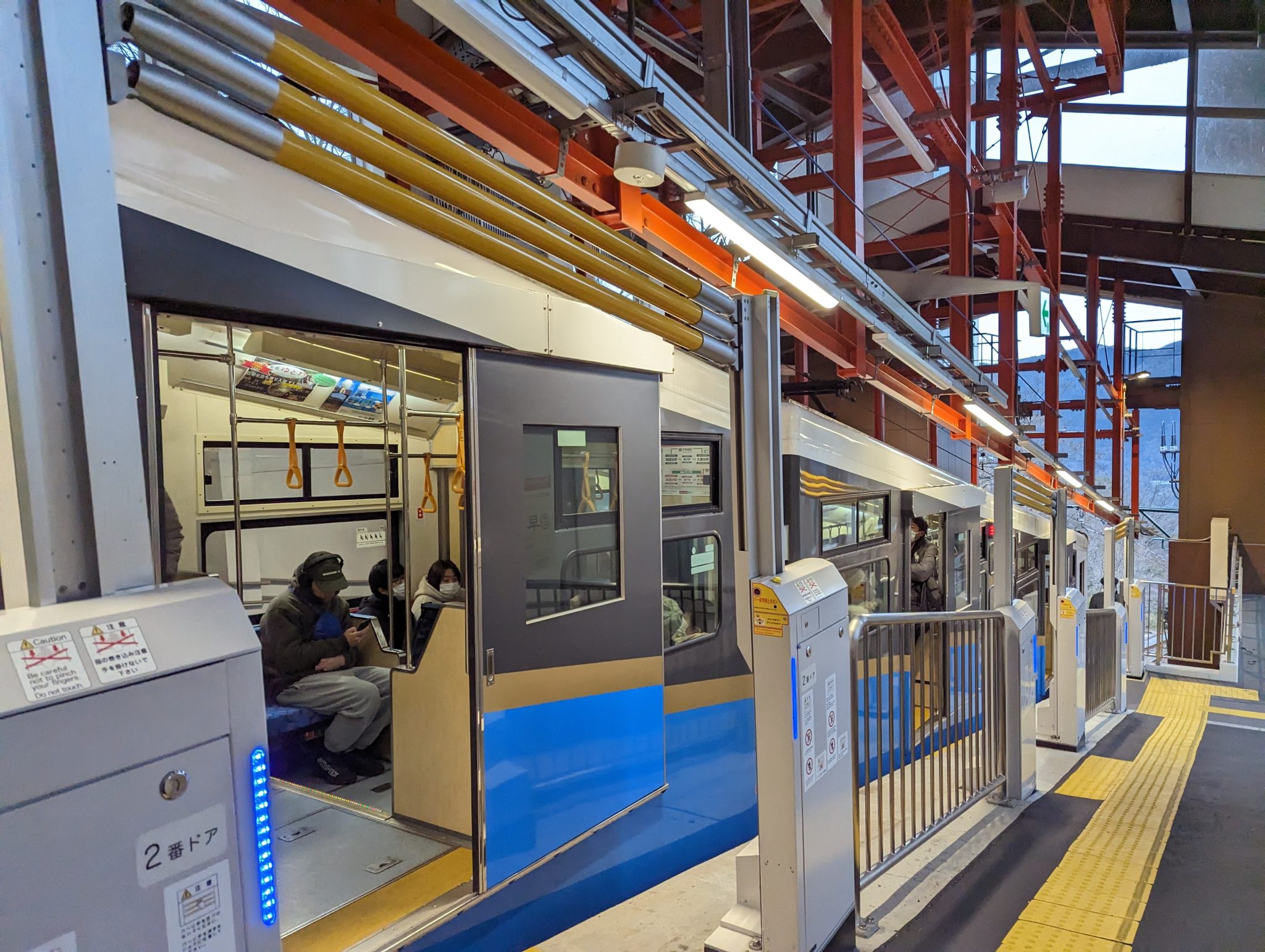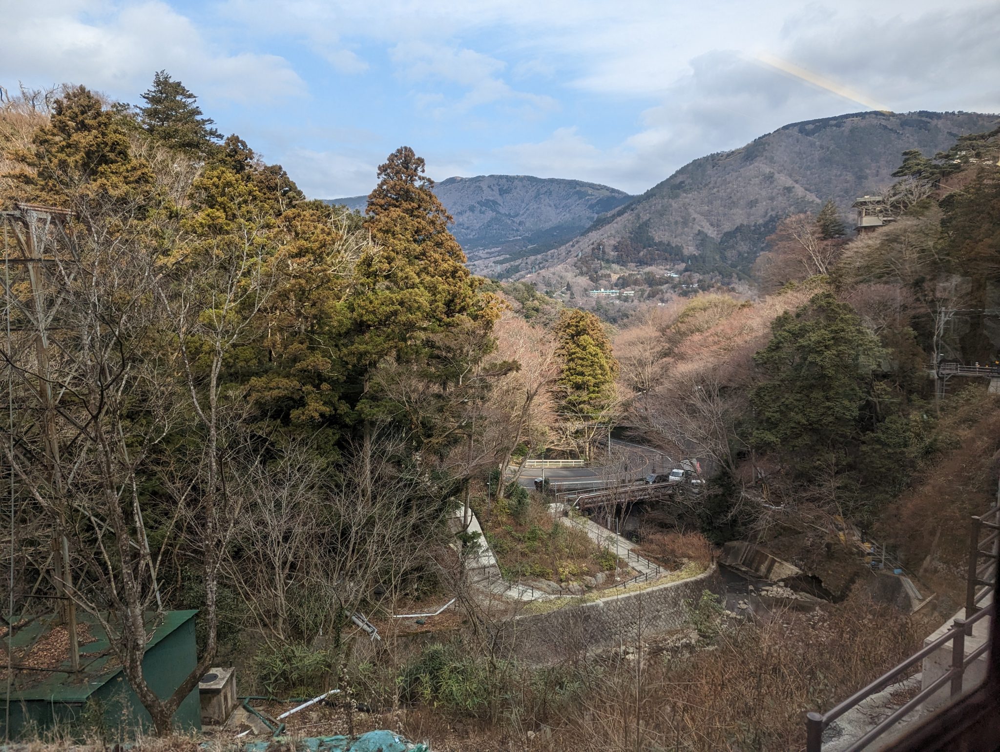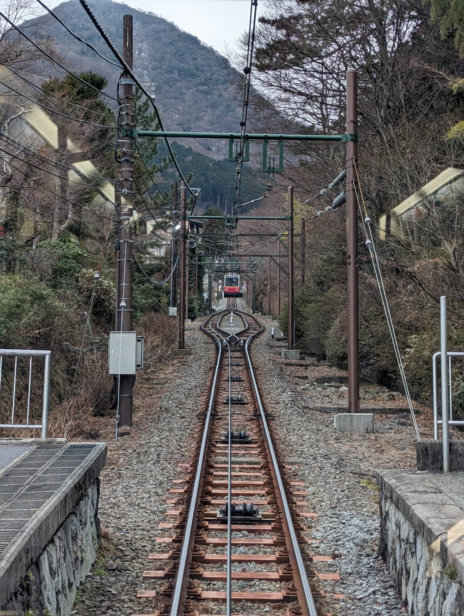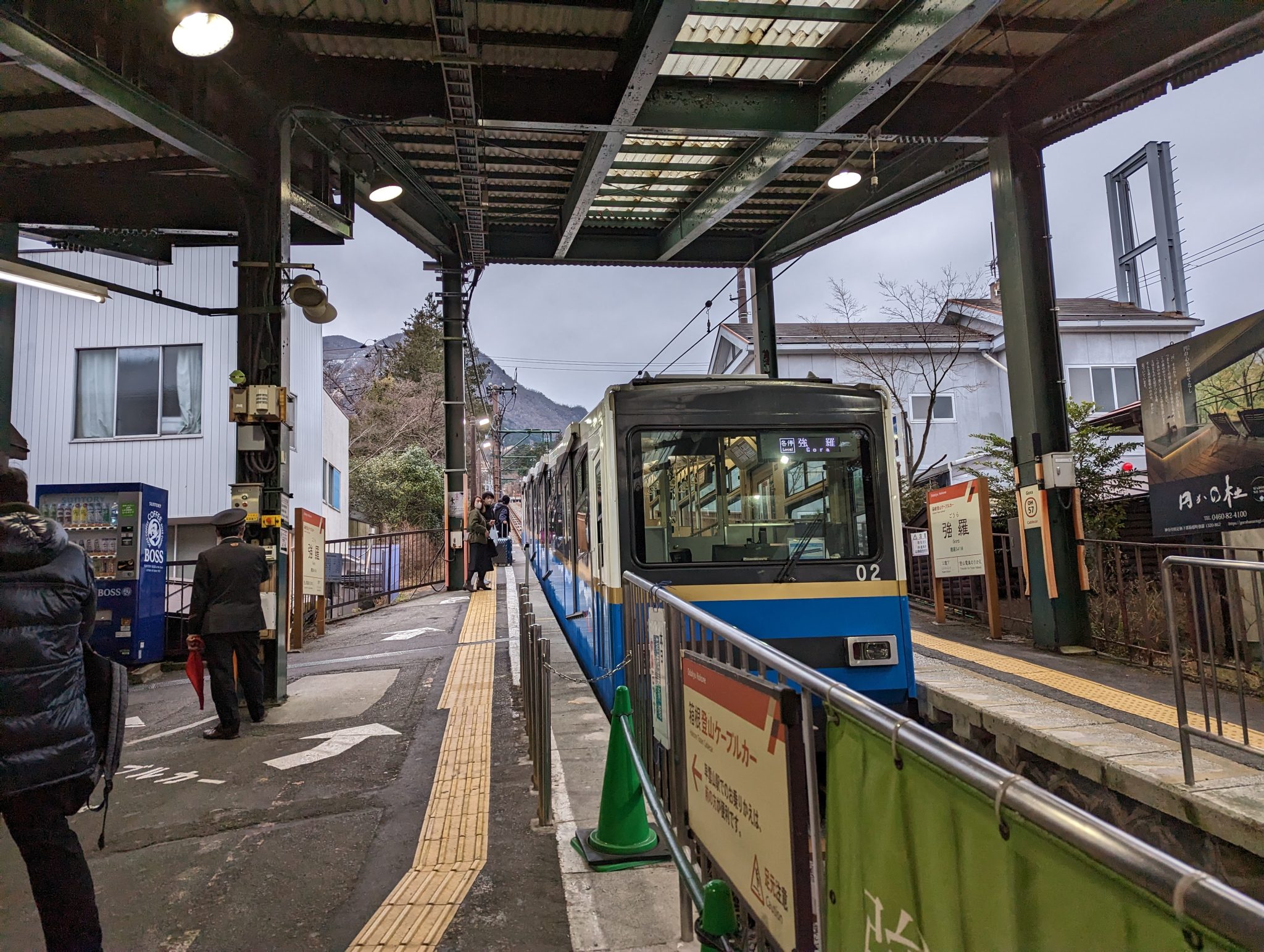 Sadly, I do need to make my way back to Tokyo to catch a flight. The last leg on the Hakone Round Course is the Hakone Tozen Railway. This railway gains or loses about 300 meters of elevation in a very short distance. In fact a unique element of this train is that as it descends it needs to zig its way down some track switchbacks. But instead of going in one direction, at each switch back the conductor will stop the train, get off, walk to the back and drive the train forward (backwards) from there. This happens about three times, so the train literally “see saws” its way down the mountain!