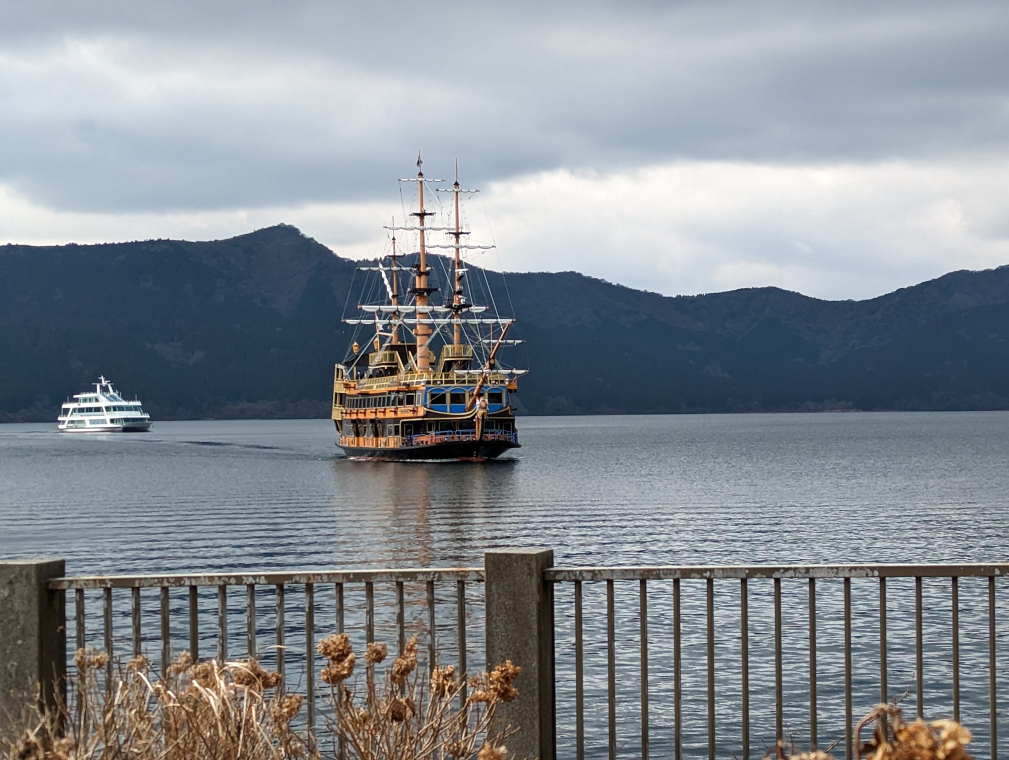 Soon its time to board the next leg of the Hakone Round Course. Odakyu operates “sightseeing cruises” across Lake Ashi in the form of pirate ships. To be honest, I’m not entirely sure why these ships are setup to look like pirate ships. There’s no other element of the cruise that perpetuates the pirate theme. The staff do not dress up like pirates. There’s nothing notable at either dock that would denote any pirate theme either. So I really don’t know why these ships are built the way they are, but it does add a bit of uniqueness to it! Nonetheless, I leave trying to make sense of the pirate scene behind and settle down on the top deck to take in the beautiful scenes of Lake Ashi around me.