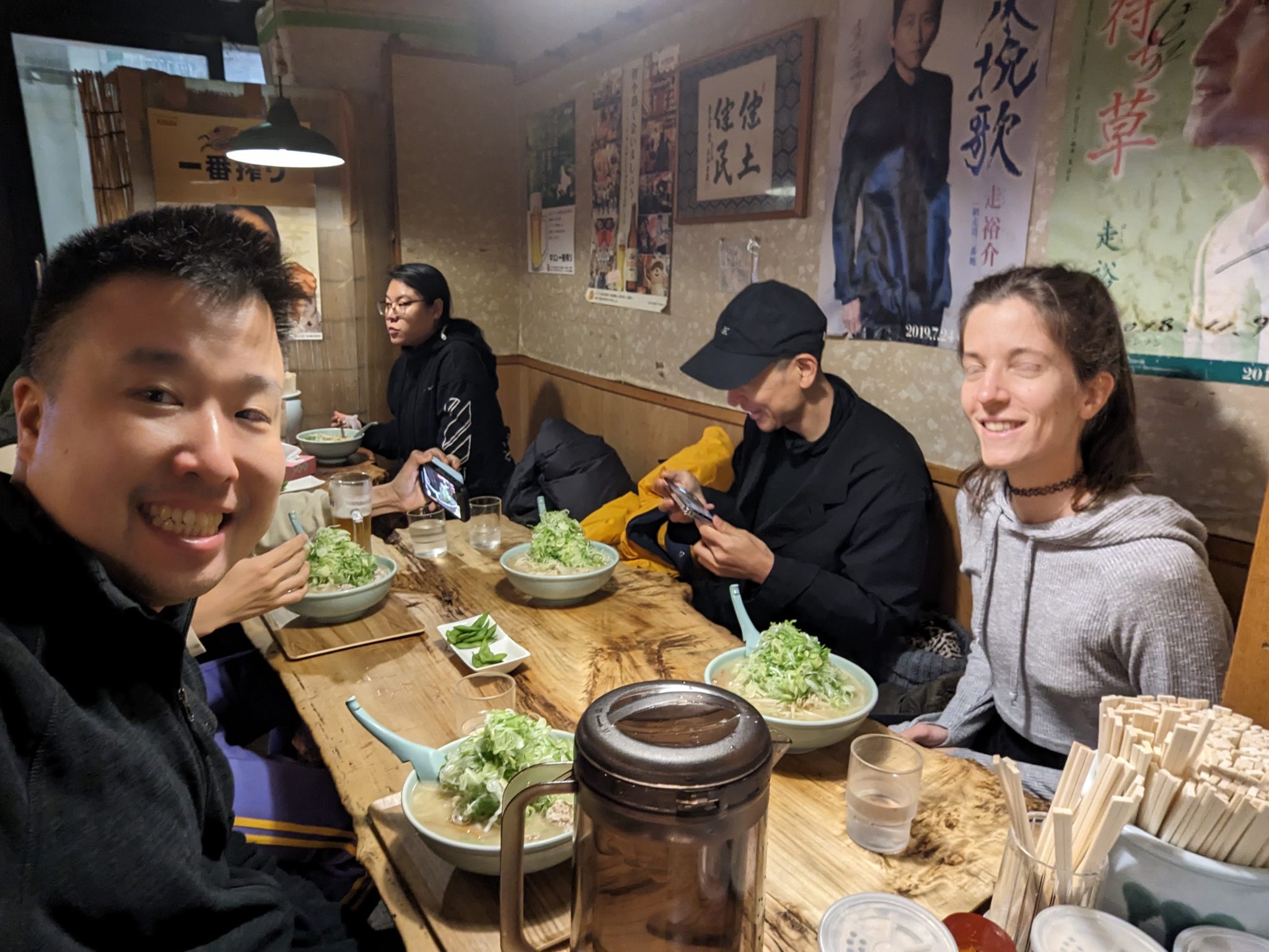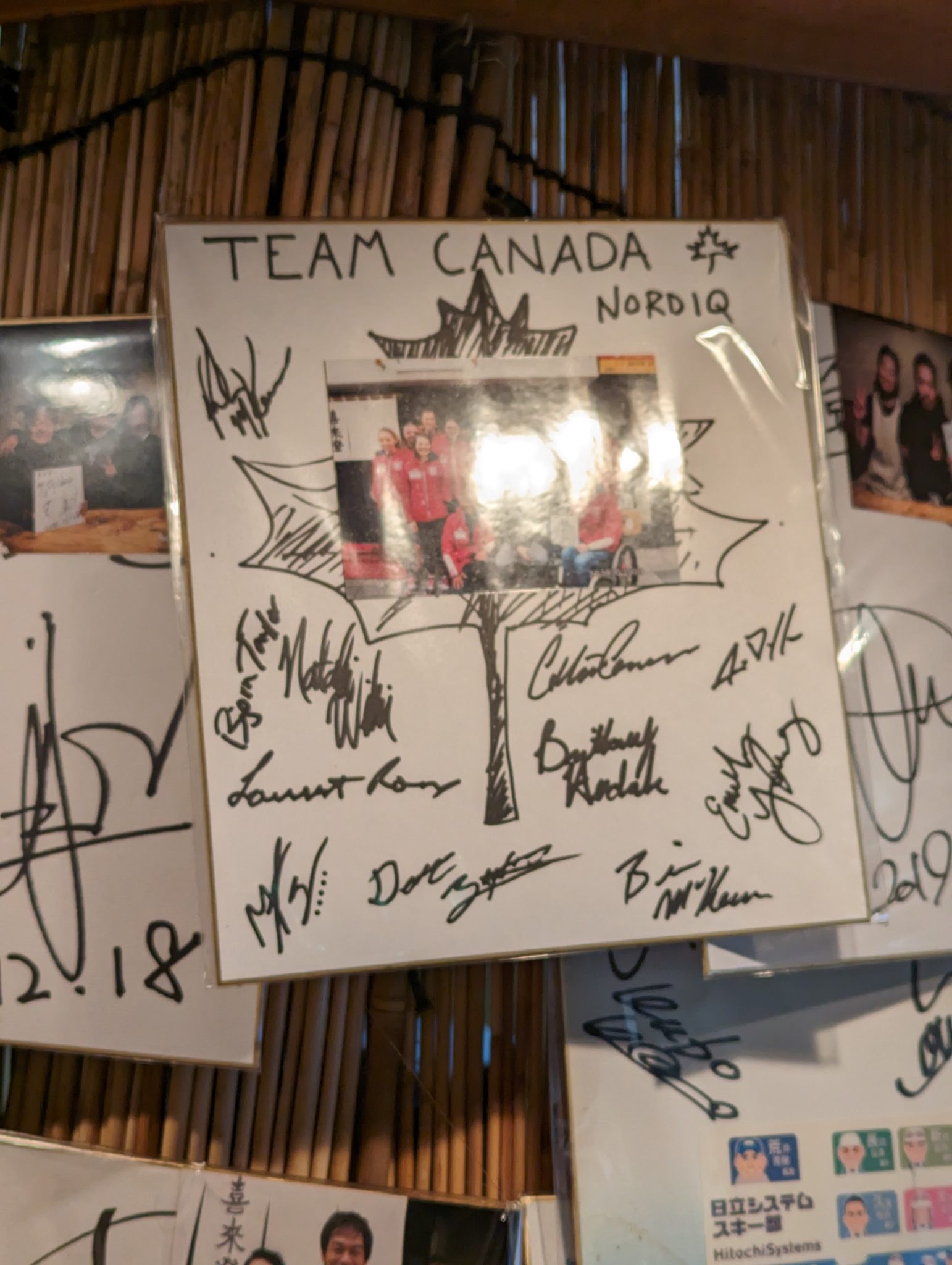 While in line, I end up meeting a few other travellers from Osaka up in Sapporo for some skiing. When we finally get in they invite me to sit with them and we get to share a meal together! I order the miso ramen and I can immediately tell its different than other Ramen dishes. The big distinguishing feature is the mountain of onions piled atop the dish. This isn’t a problem as I love onions so full marks for this spot and dish. I’m not the only one who likes this place either. On my way out I spot that “Team Canada” has also been a patron of this spot!