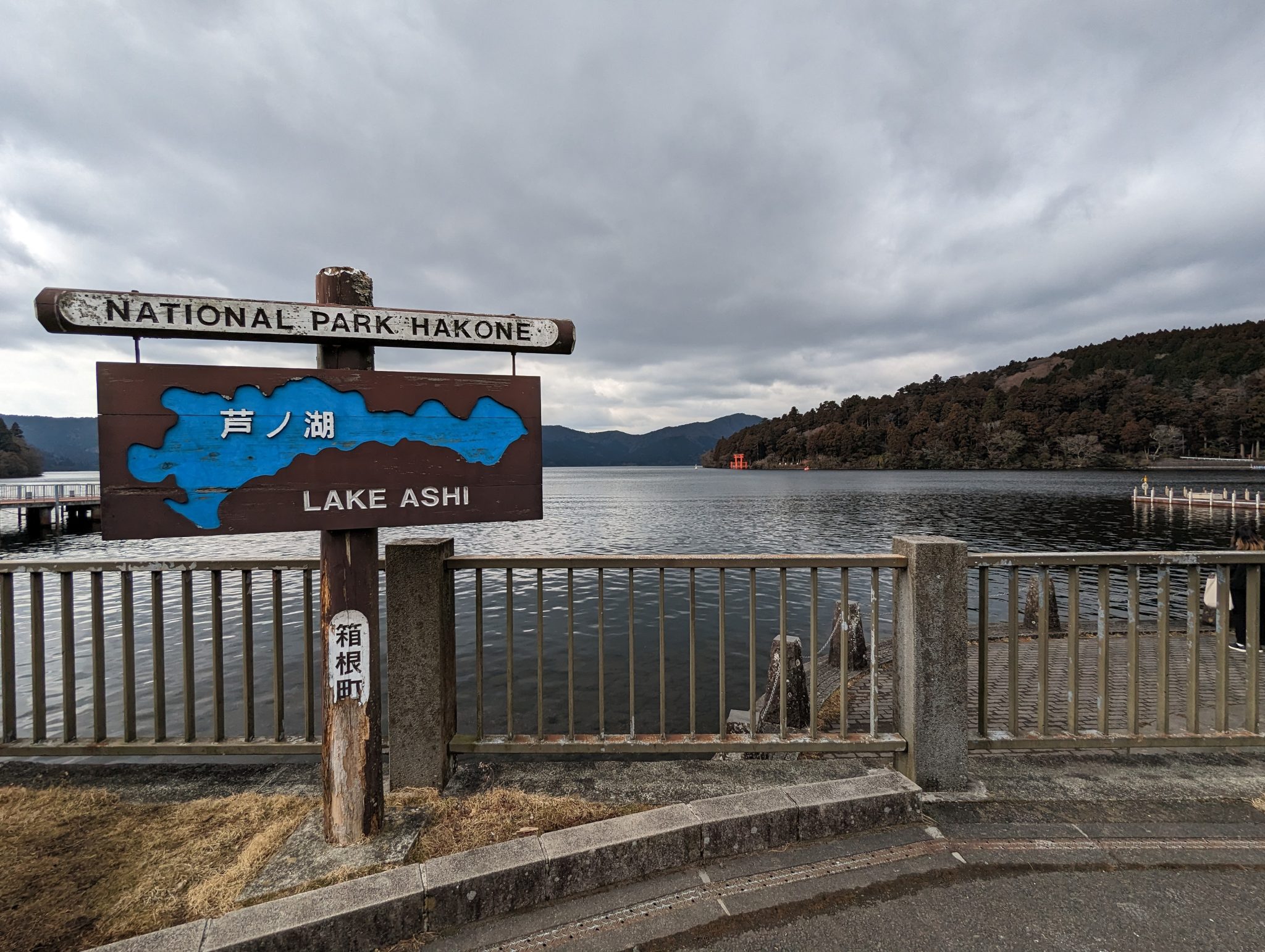 After arriving in Hakone via train from Tokyo, I quickly find and hop on the Hakone Tozan bus that will take me to MotoHakone. After a short wait, the bus starts to make its way up and over a mountain before coming back down again to drop me off at Lake Ashi. The bus ride itself is kind of neat. As it goes up through the mountains, you get views of the region. It’s nice to sit through this “tour” through the mountainous terrain.