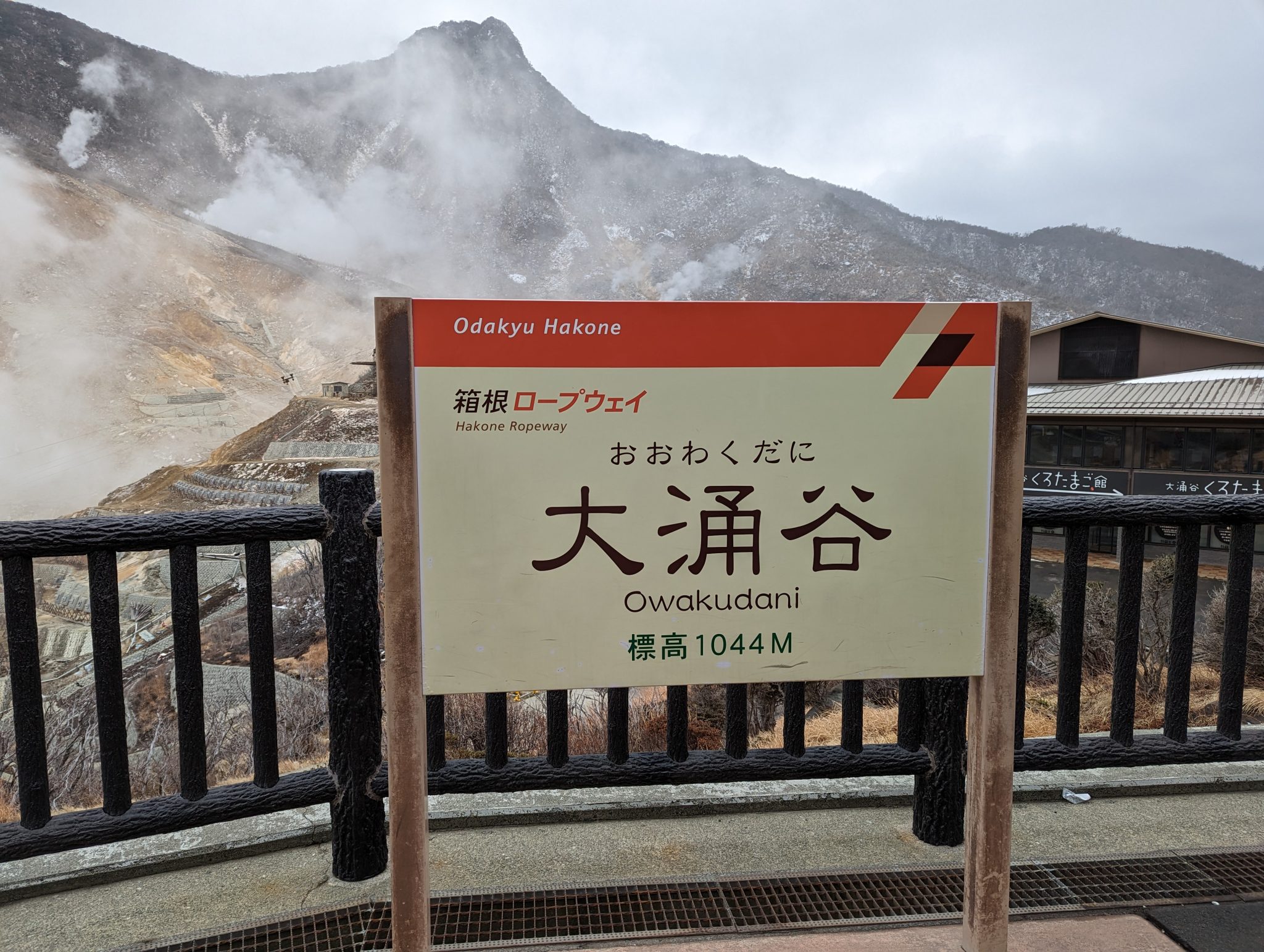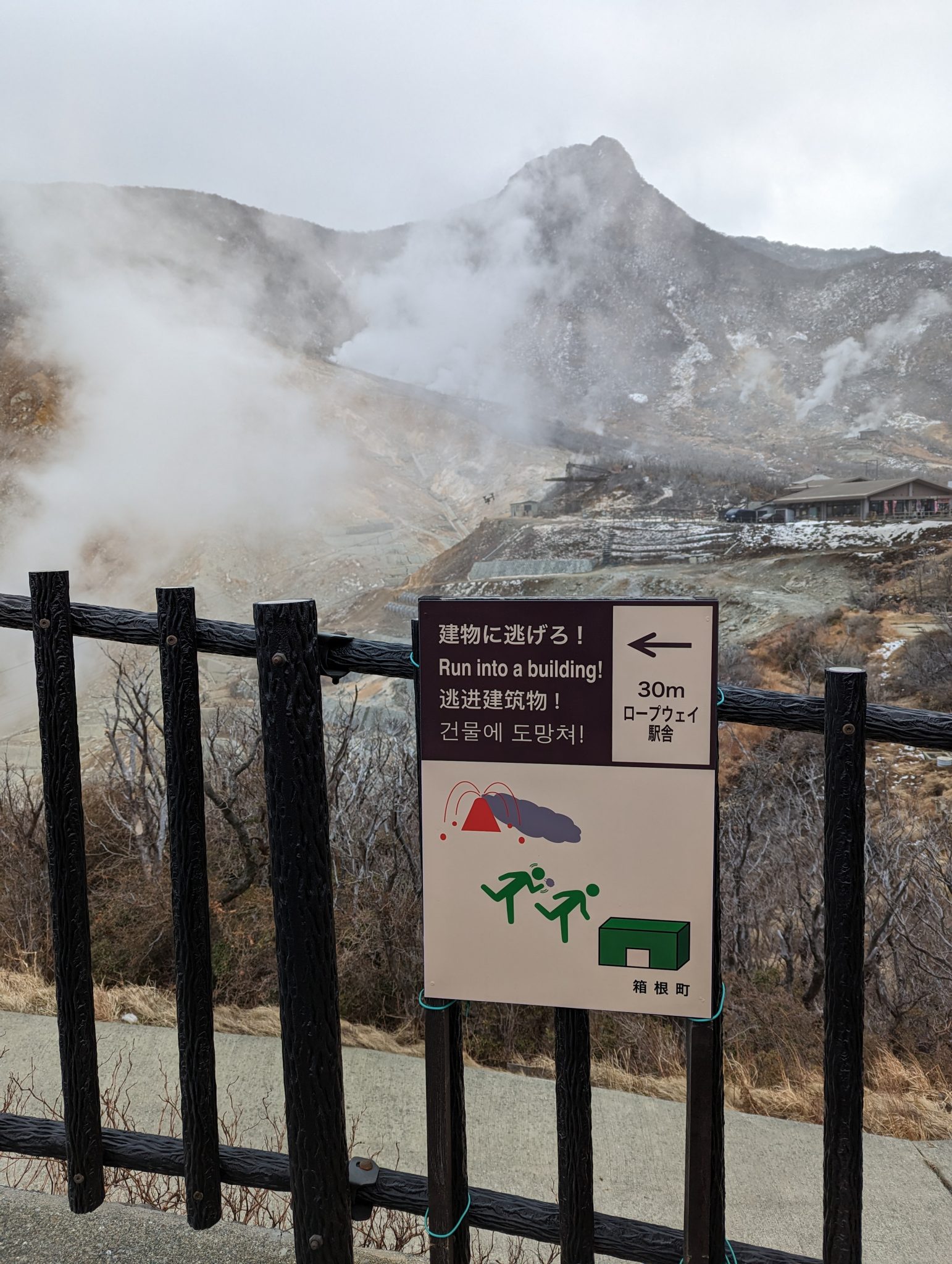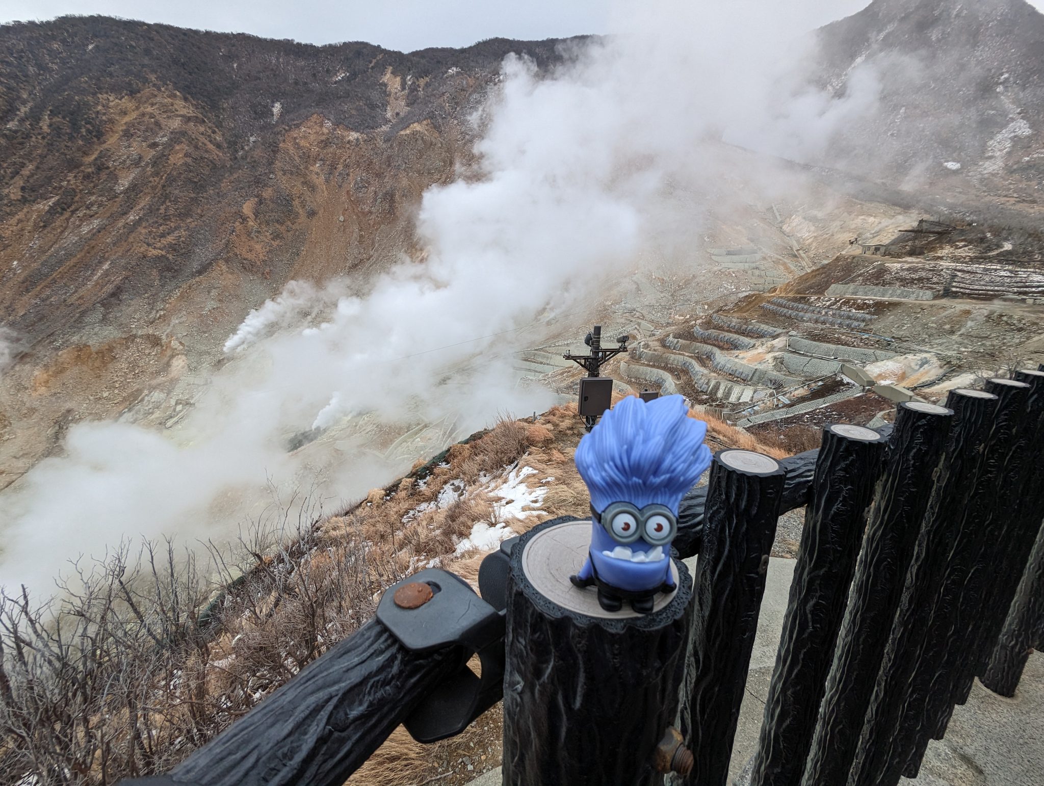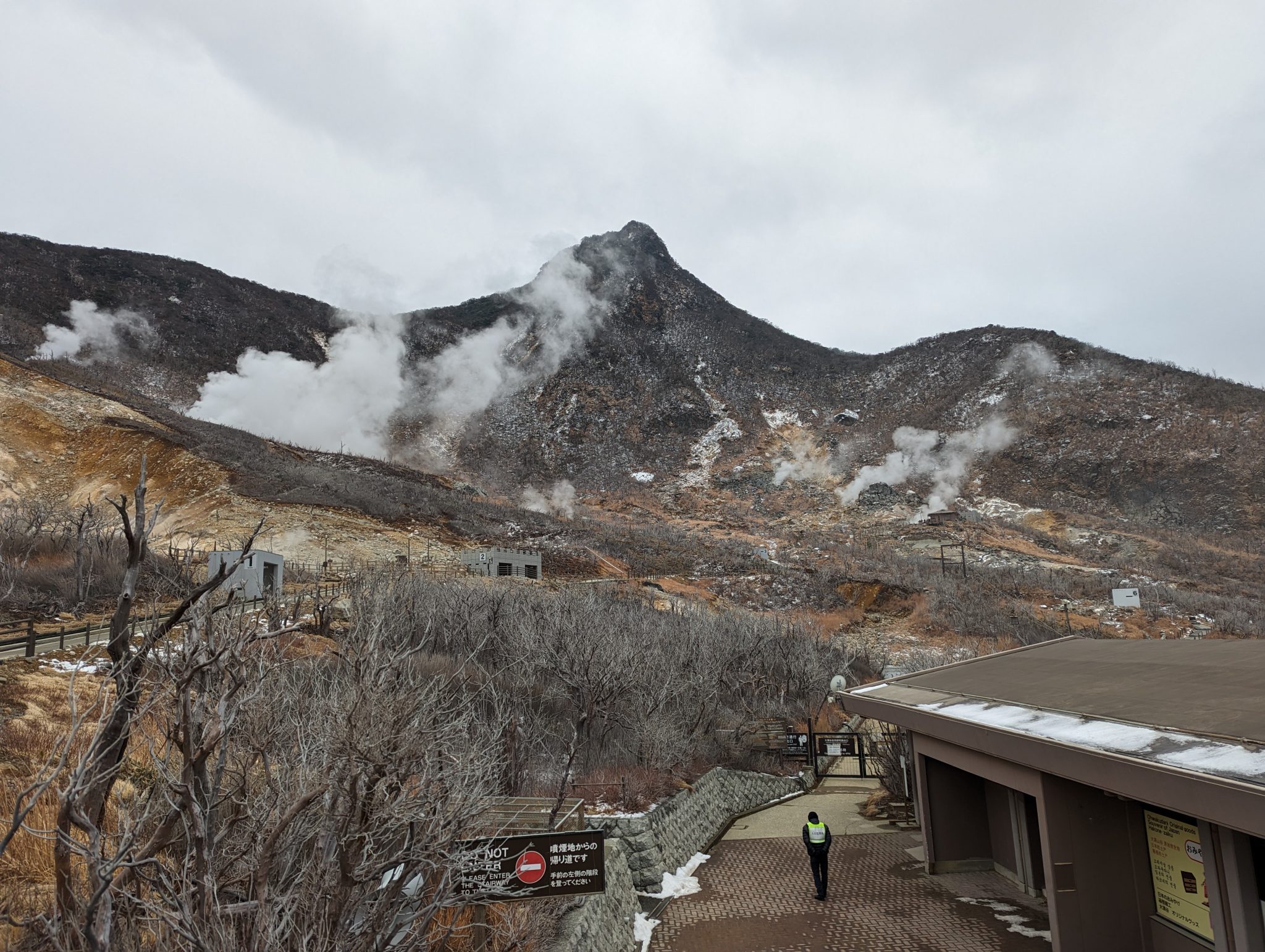 The buses drop us off at Owakundani which is this volcanic area where sulfuric gases escape from the ground below. Like other sulfuric areas, the smell of rotten eggs permeates the area. It’s for sure a very different landscape than what I’ve been treated to thus far so it offers a very stark contrast to the rest of the Hakone region.