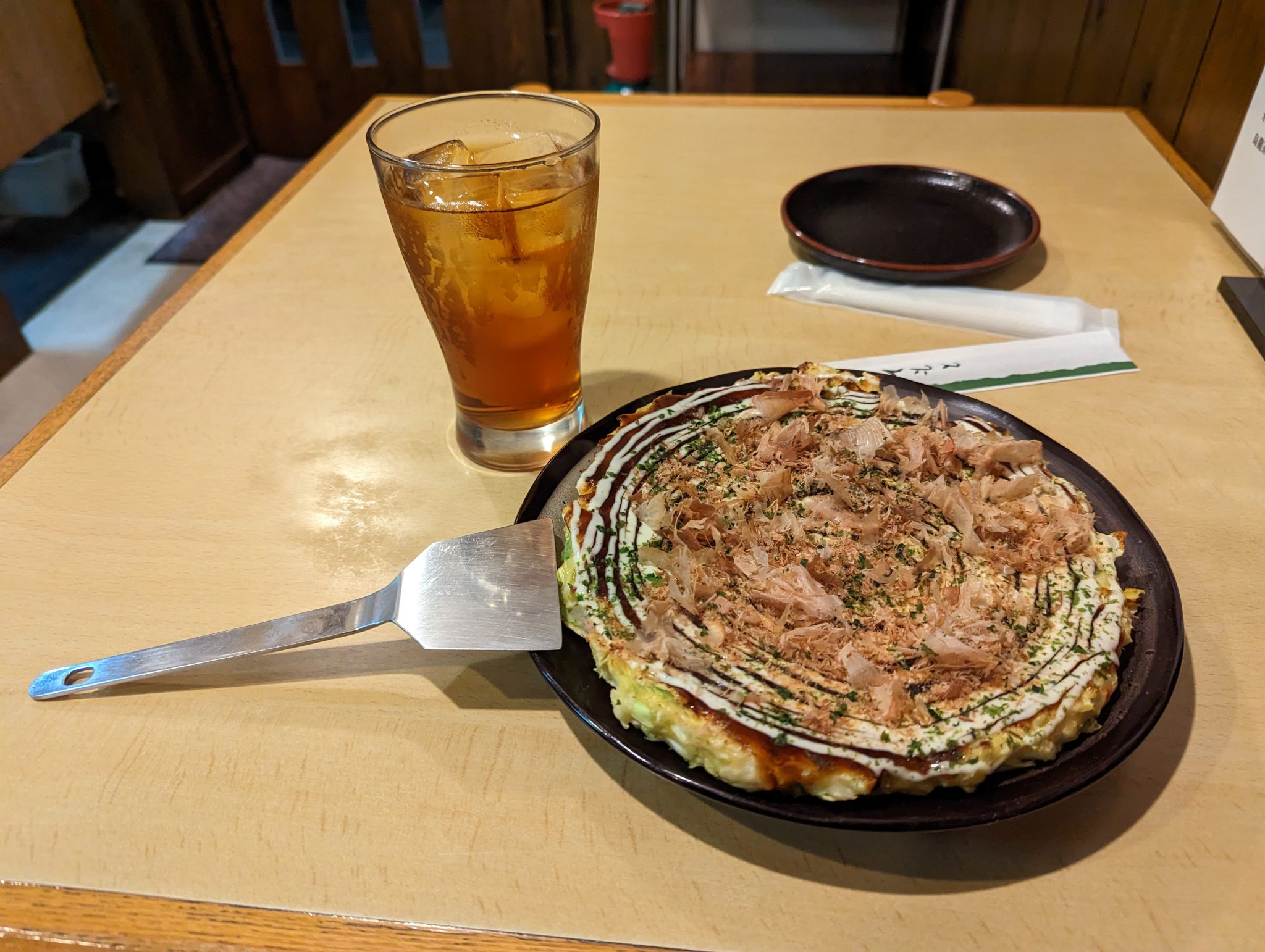 Gora itself isn’t very big and as such there aren’t too many spots to actually eat. Thankfully though, I did find this Okonomi-yaki spot nearby called Okonomiyaki Kaji. I order a scallop Okonomiyaki and an iced tea. It comes quickly and is very tasty. I quickly devour it and make my way back to my hotel to turn in for the night.