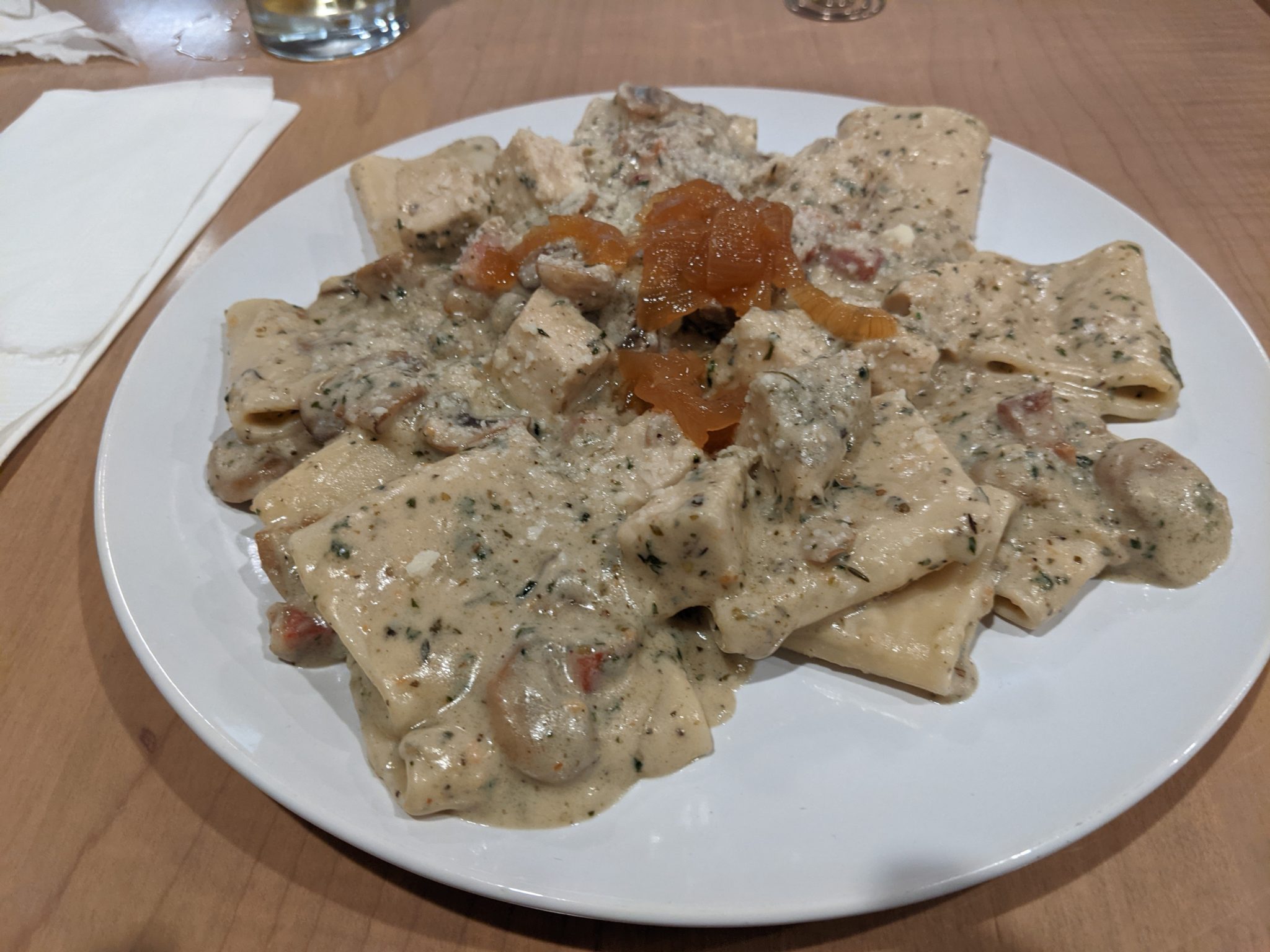Our original intention was to stop at an Italian restaurant before returning to our hotel. However, when we got there it was closed. So we had to scramble for an alternative eatery. After some quick research I found Sapori Italian Street Food. This is a small Italian restaurant that does pizza and pastas (which is our current craving). The three of us order our own pastas and sides. We devour it all pretty quickly (seeing as we skipped lunch!). The food is good and relatively affordable. While not the most gourmet of pastas, it is certainly a good middle of the road choice if you’re looking for Italian food!