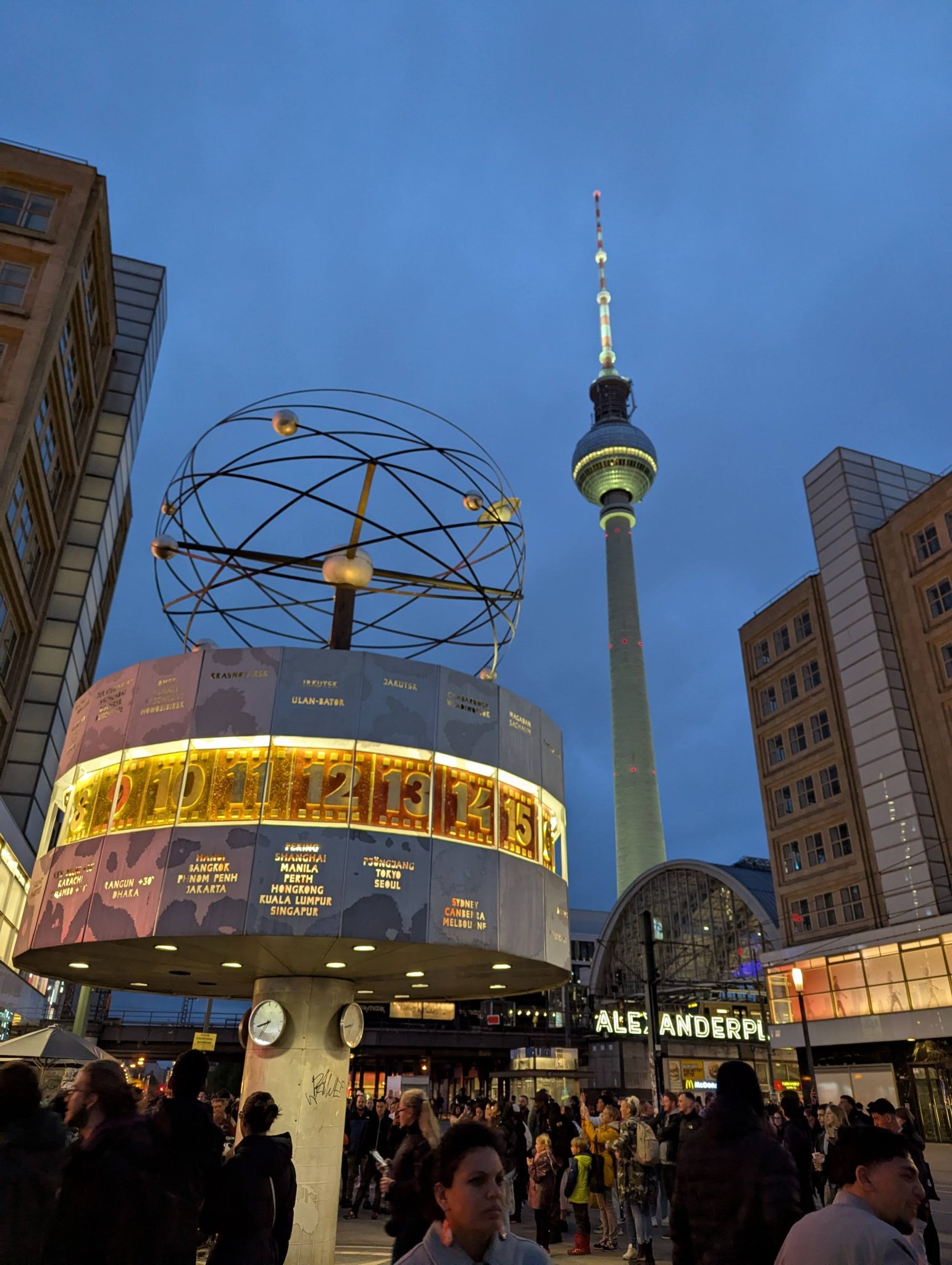 After dinner and on our way back to our hotel. We decide to stop off at Alexanderplatz to wander around a little. It’s a huge square that seems to always be busy. There are nearby attractions like the TV tower and the world clock. There are buskers adding to the jovial vibe of the area. Along the edges are numerous shopping options. We spend a little time “walking off” dinner before hopping back on the train to our hotel.