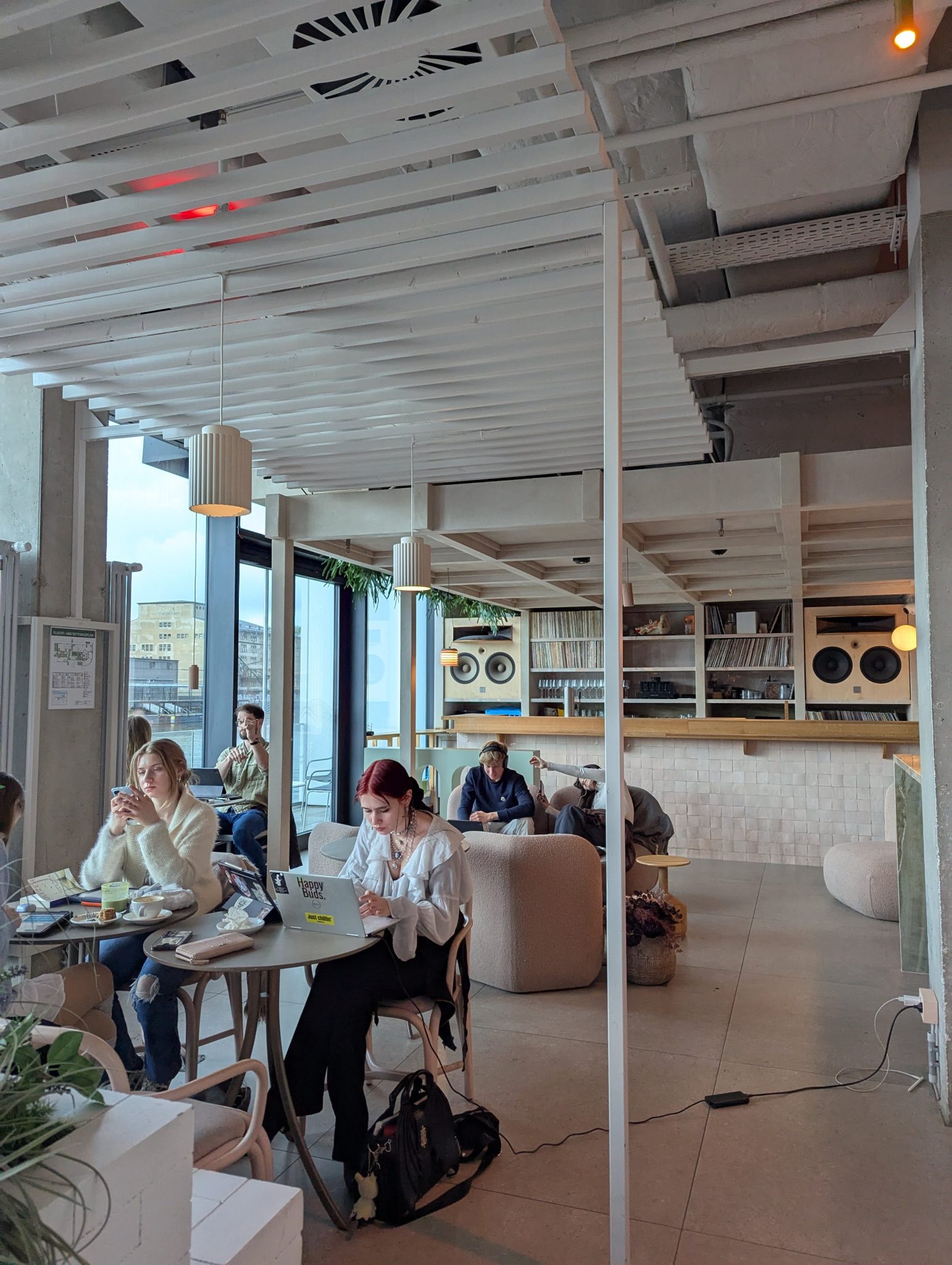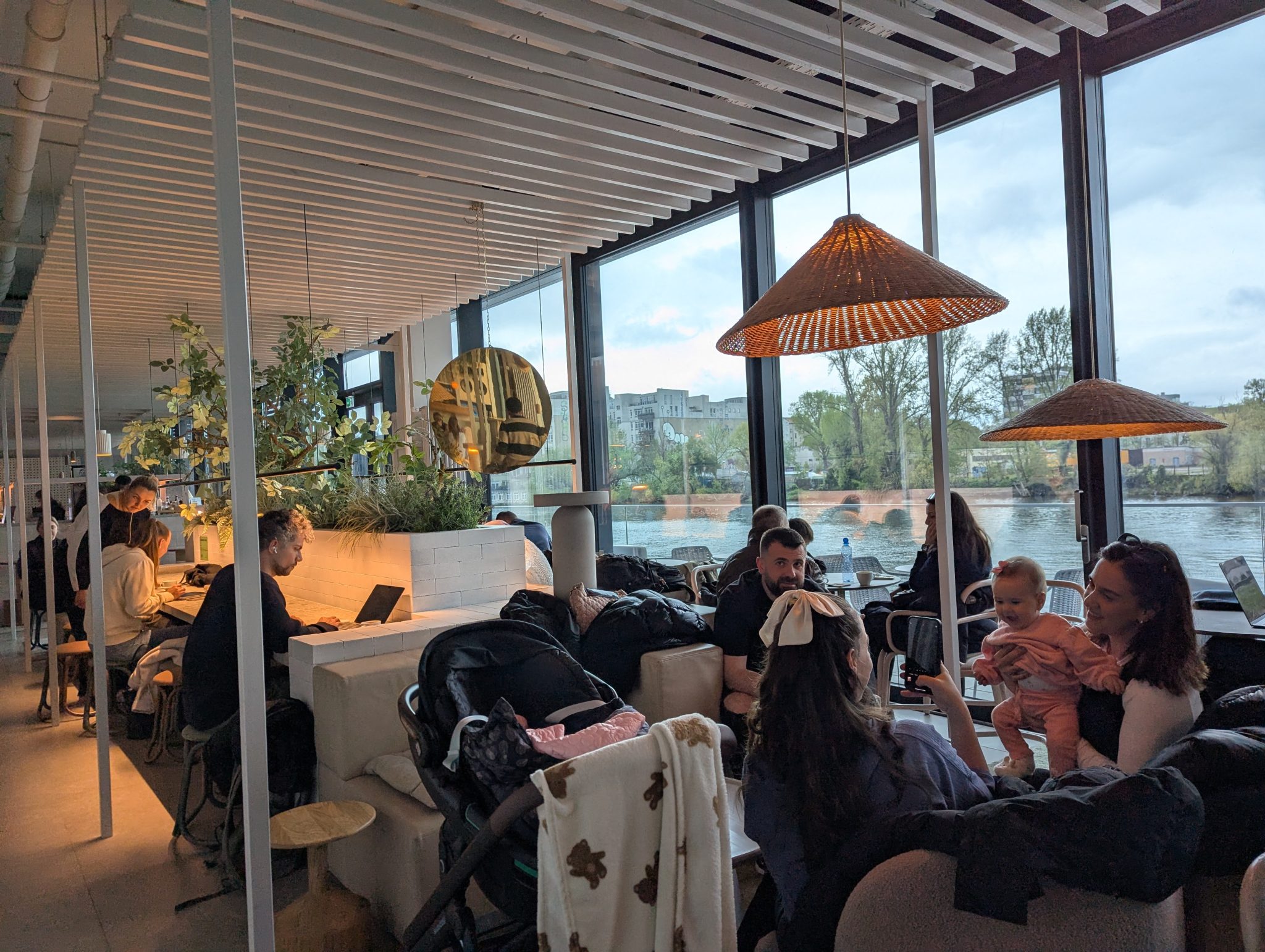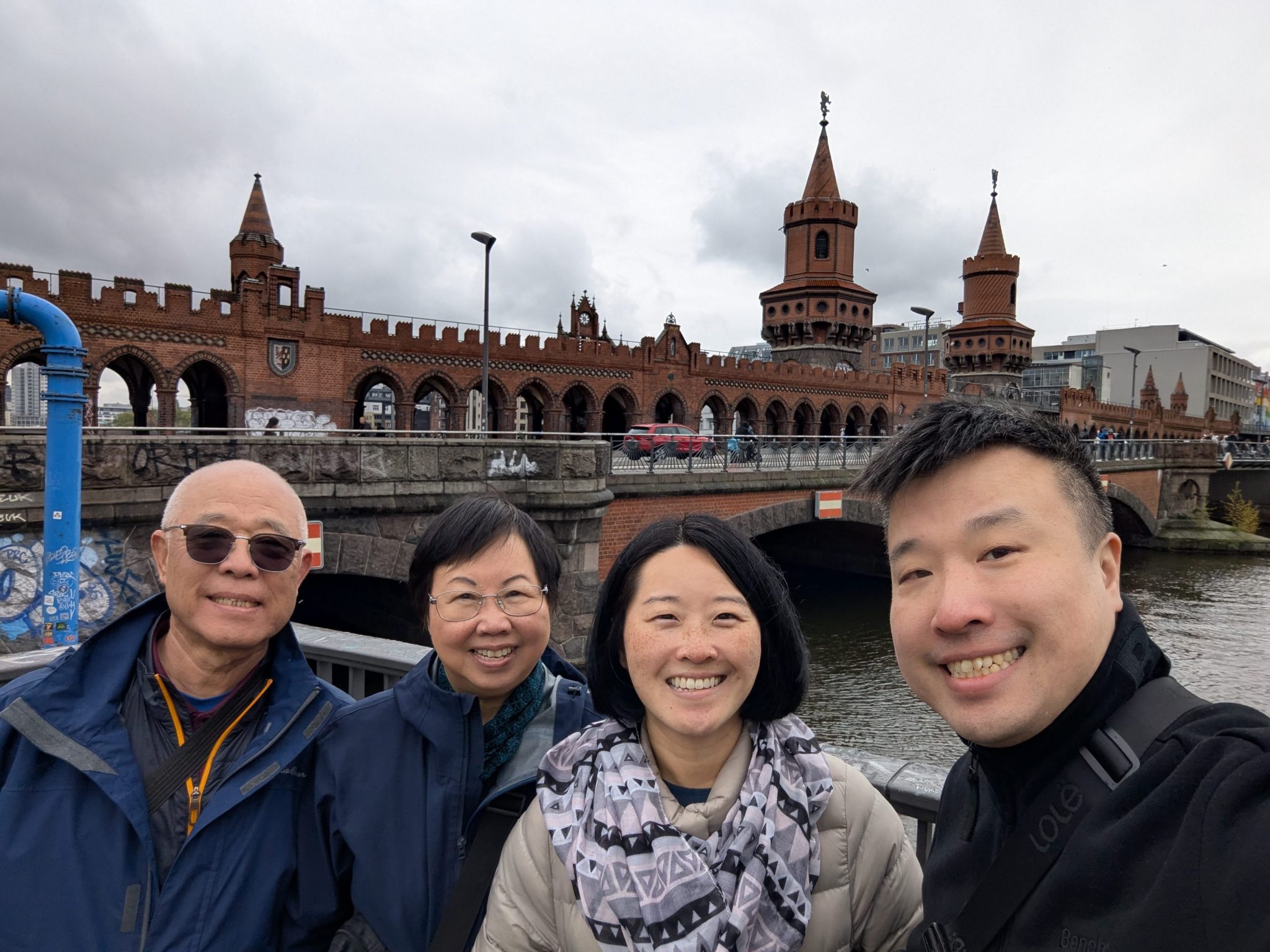 Partway through our walk along the East Side Gallery, the rain starts to pick up. So we duck into Anima Cafe along the water and situated between an open section in the wall. This is a very modern spot with wonderful river views and a very chill vibe to it. It seems to be a popular hangout and study spot. We order some coffees and spend some time enjoying each other’s company and the environment. One particular memory is trying to teach Mama Minion how to take a selfie. It’s a memorable moment simply because she struggled with holding the phone and angling it appropriately to capture everyone in the photo!