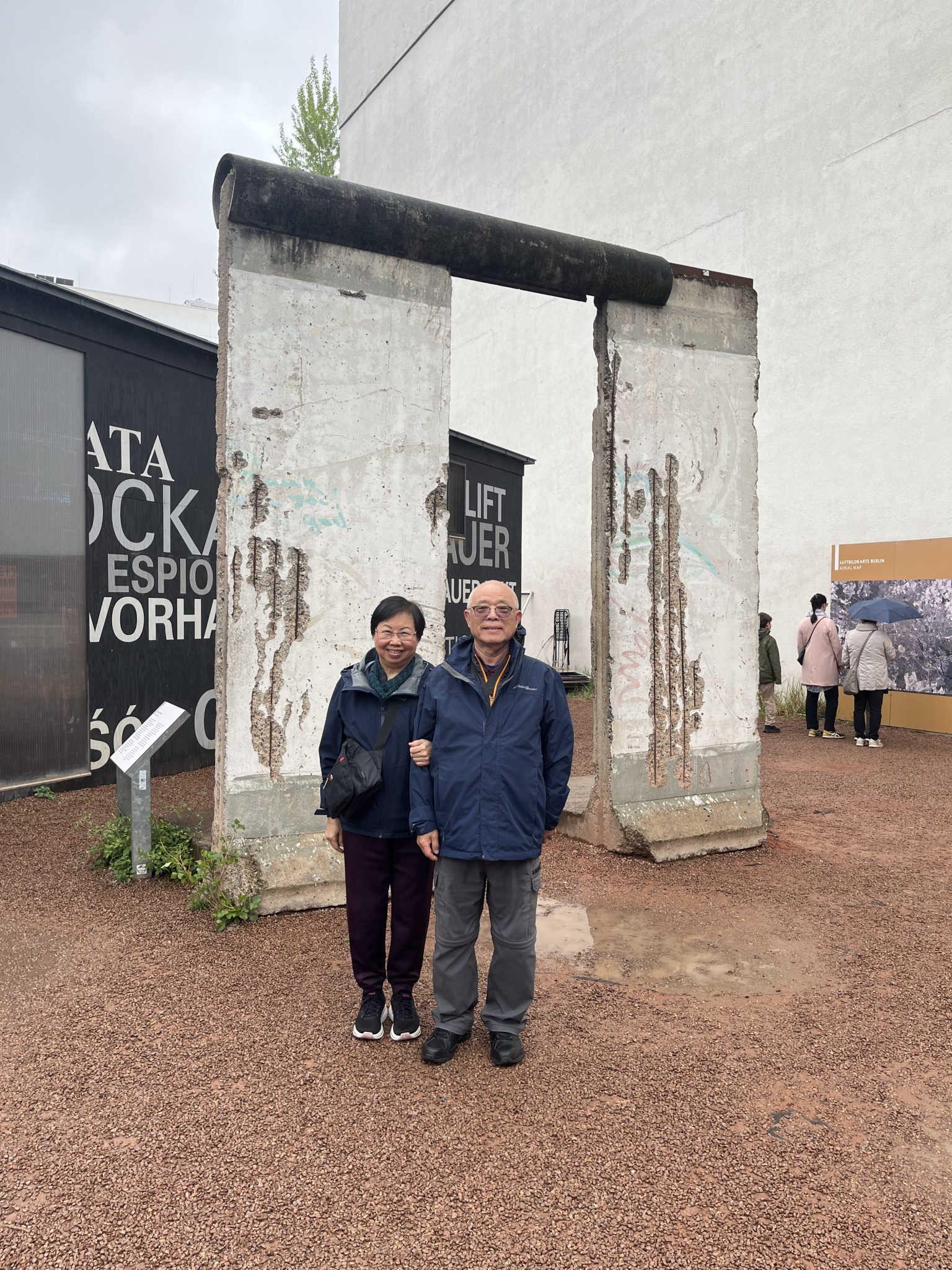 After lunch, we hop on a train and head over to Checkpoint Charlie. This is a former border crossing point between East and West Germany. It’s mainly a tourist attraction now and the buildings are actually just replicas of the originals. But it’s still a very popular attraction amongst tourists and one of the most visited things in Berlin. Even though the checkpoint buildings are replicas. If you walk around the area, you’ll still find small pieces of the wall around. It’s interesting Berliners have generally built around these historically significant pieces.