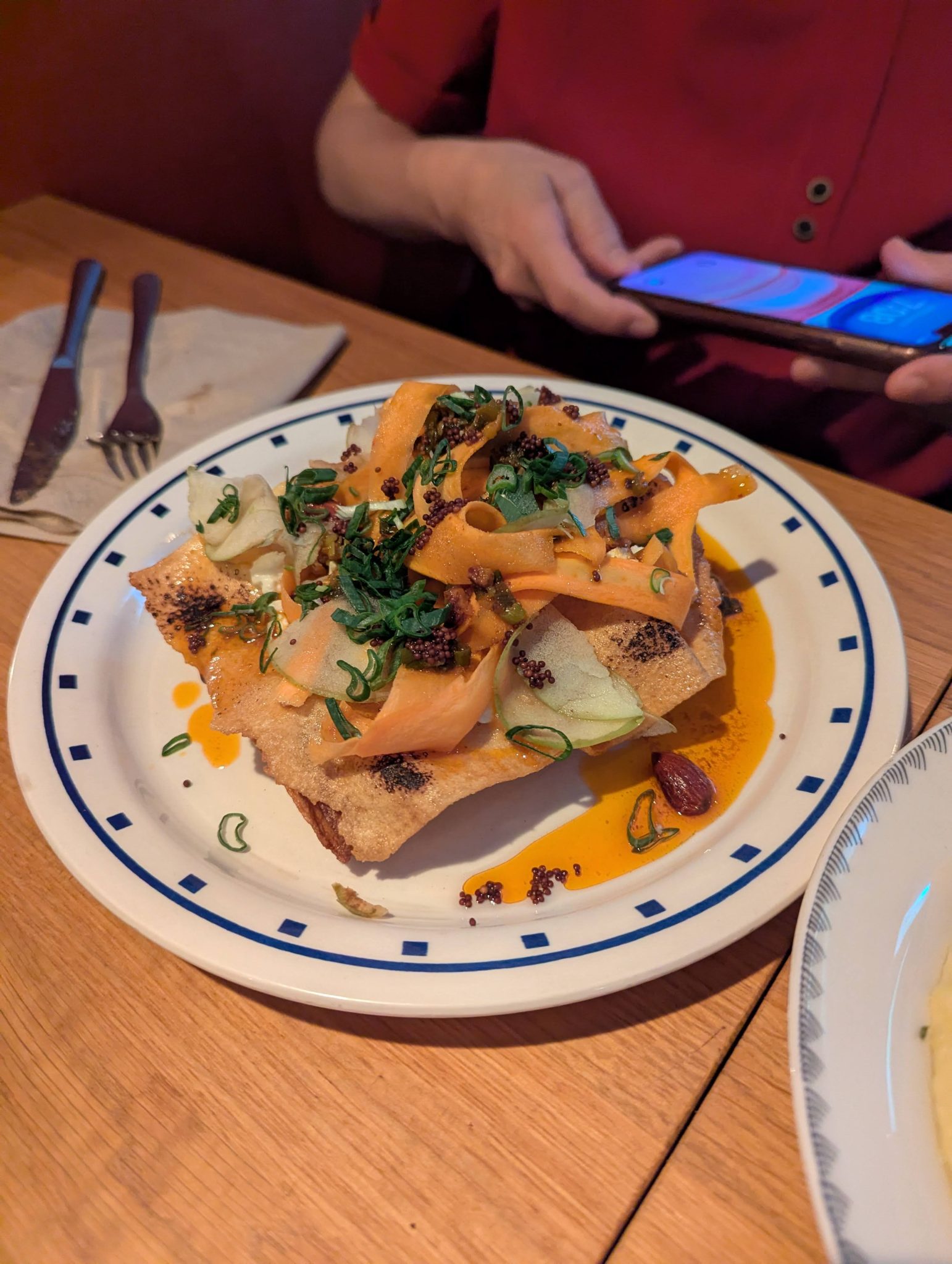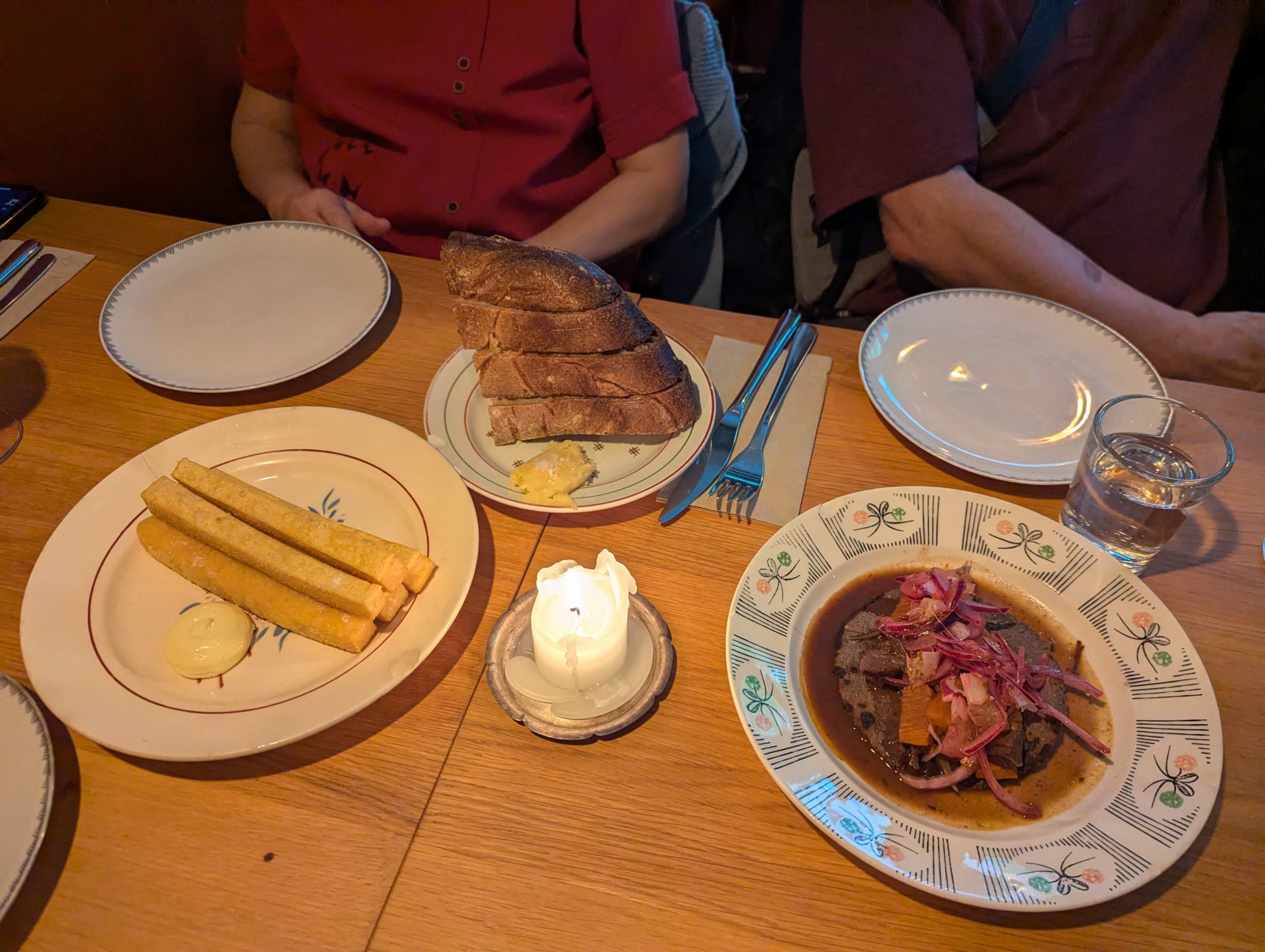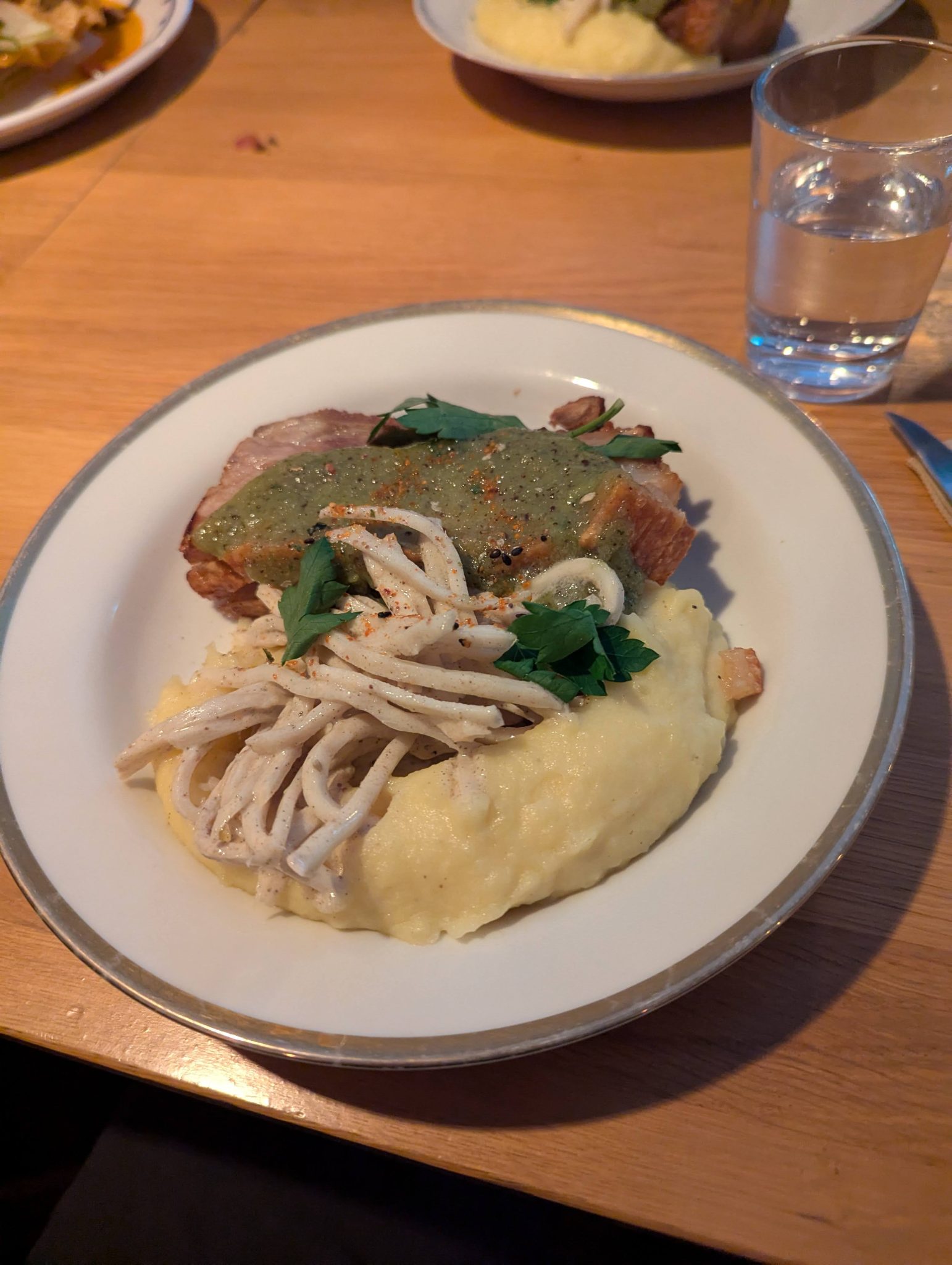 One thing I neglected to mention, is that today is the Parents wedding Anniversary. In fact that’s one of the main reasons this entire trip came to be in the first place. With that in mind, the Sister and I had booked a nice dinner with them for this evening at L’eustache. Ironically, this is a French restaurant, but seems to be very well regarded. To start we share a Beef Bourguignon Taco Salad and Panisses with lime mayonnaise. For our mains, Mama Minion had the Vegetarian Lasagna while the three of us all went with the Crispy Pork Belly. All the food is really nice and we enjoy the meal together!