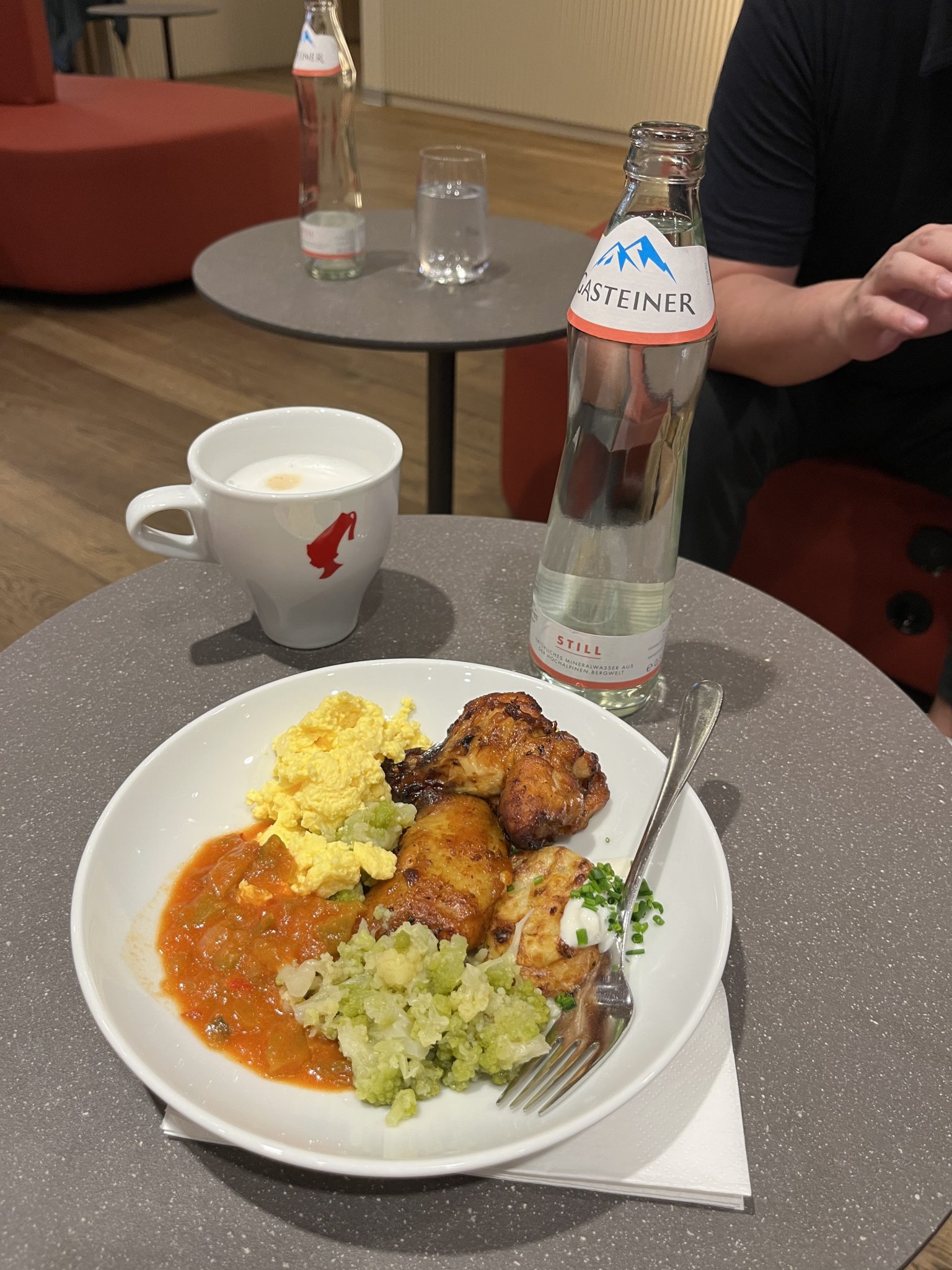 We are leaving Vienna today and heading to Berlin. Because we have some morning flights out of Vienna we need to head to the airport relatively early in order to catch our flights. Unfortunately, the Sister and I are unable to get onto the same flights as the parents. But even though we’re flying apart we all get to do it in business class which makes it easier to swallow. Upon arriving in the airport, we’re all able to get into the Austrian Airlines Lounge where we settle in and get some breakfast and much needed coffee. It’s nice to enjoy some of these comforts with the parents!