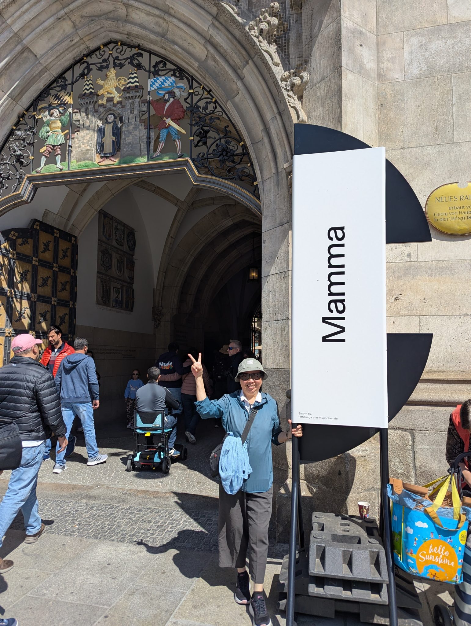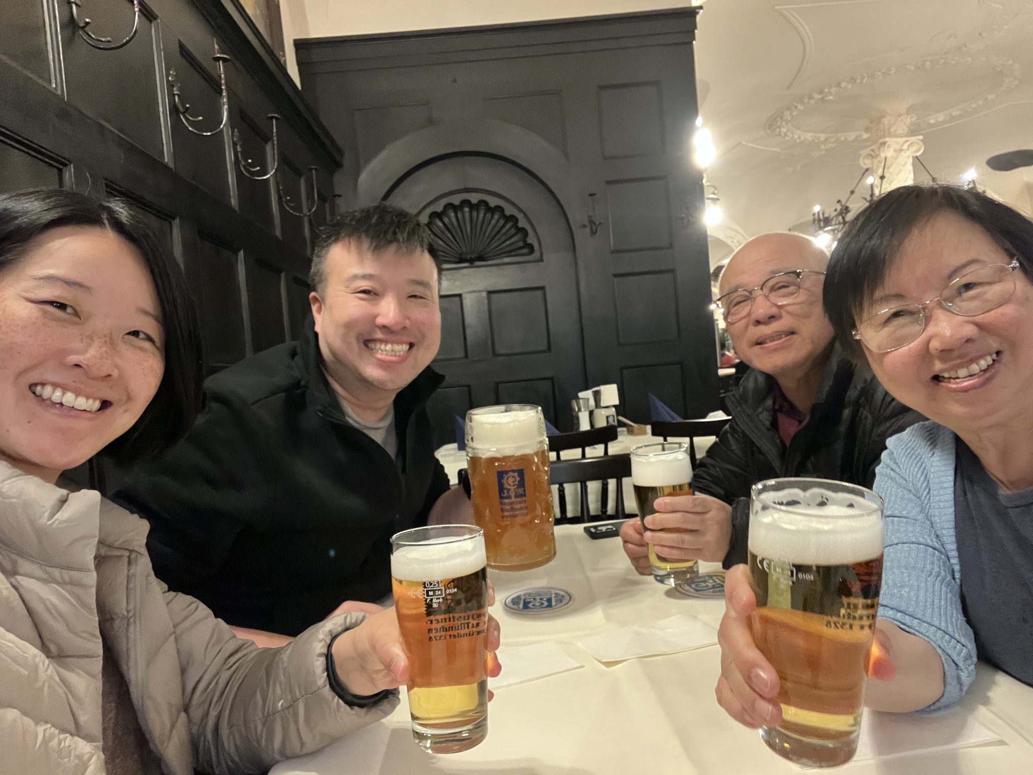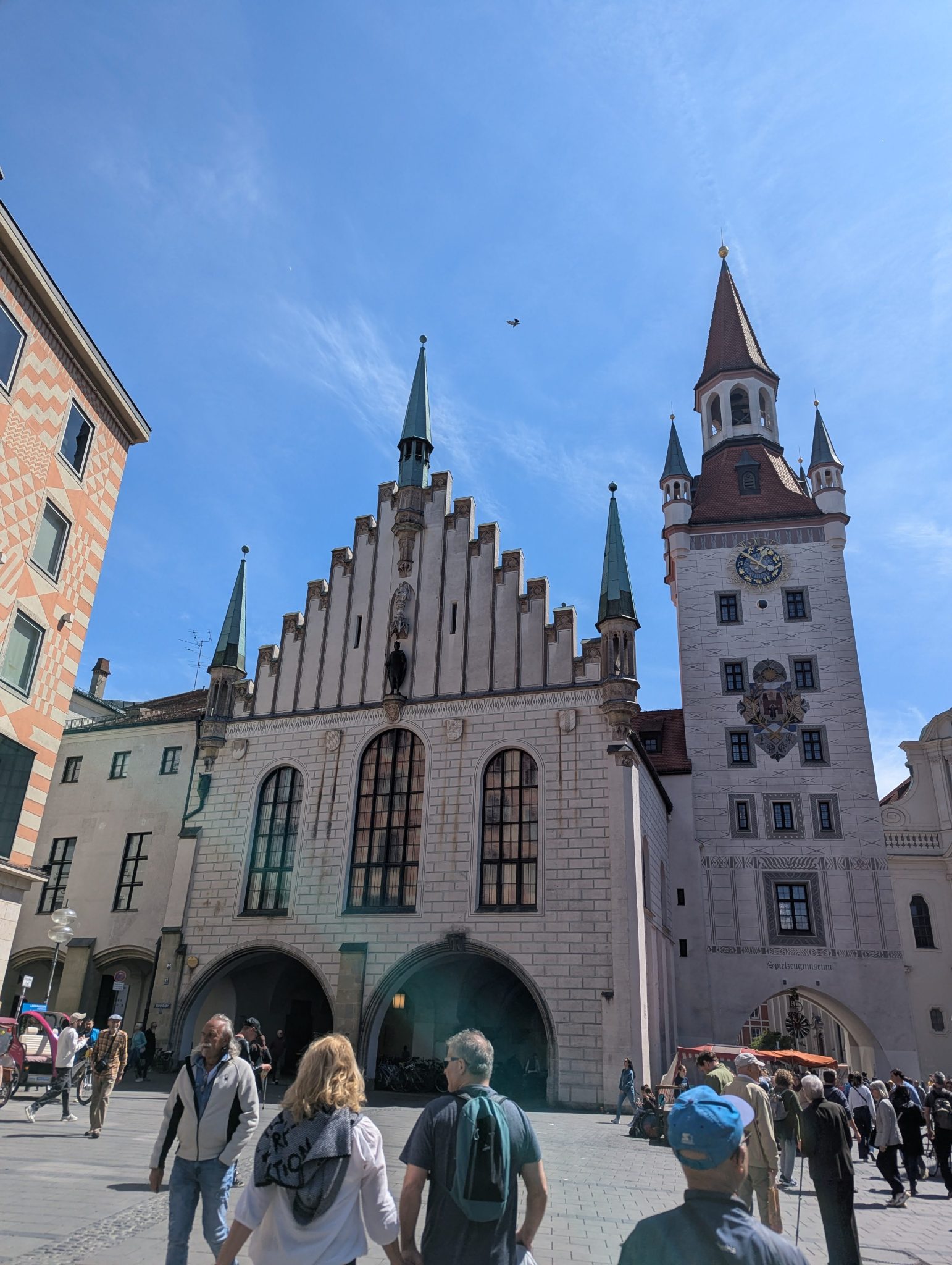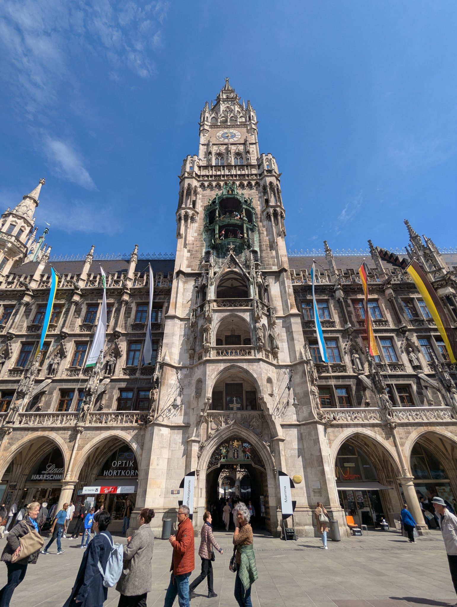 Our first stop is Marienplatz, which is home to the famous Glockenspiel. The Glockenspiel is a large mechanical clock that at certain times in the day will have moving figures that re-enact scenes from Munich’s history. We get there at around noon just in time to watch the show. Personally, I’d like to think that the show is spectacular. But after the first few minutes of watching the mechanical figures rotating through the scene, it starts to feel repetitive. Maybe I’m not able to appreciate it but with the parts of the crowd thinning I might not be alone. Soon our family enter into the City hall building and find that the architecture elements of the building are a bit more fascinating.