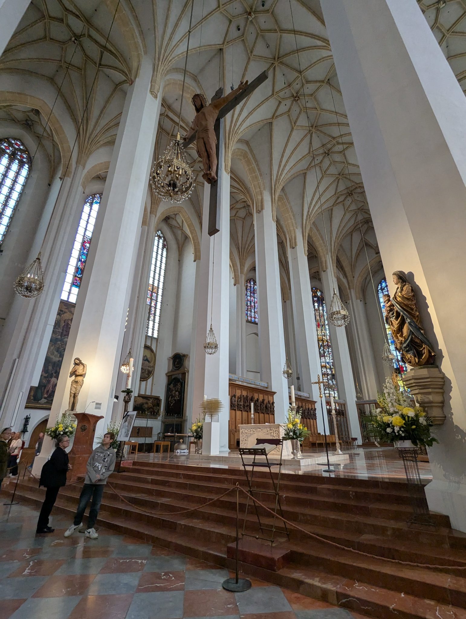The other major landmark within the Old Town of Munich is the Frauenkirche. This is a large gothic church with two large towers that are prominent in the skyline. It’s an expansive church and is fairly grand inside as well. What makes this visit a little more significant is that the current serving pope passed away while we are travelling. So there is a memorial to the pope at the pulpit which adds a bit of poignancy to the visit.