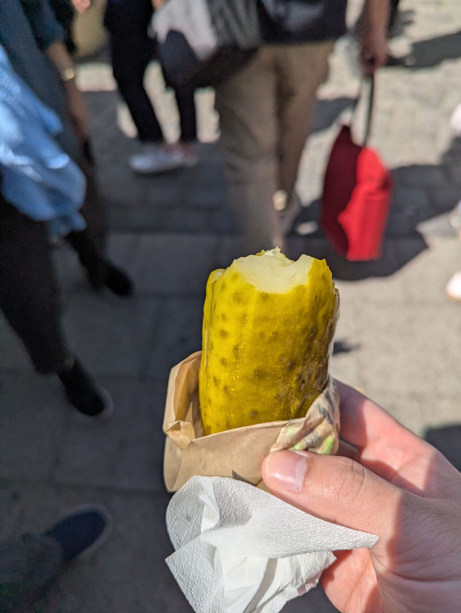 Speaking of food, Mama Minion and I are fascinated by the sight of people walking around with just a pickle in their hand. We find a vendor that is selling large pickles made for snacking and we get one to try! If you like pickles this is an awesome summer treat. It’s oddly refreshing in a savoury way and I’m sold on this pickle snack idea!