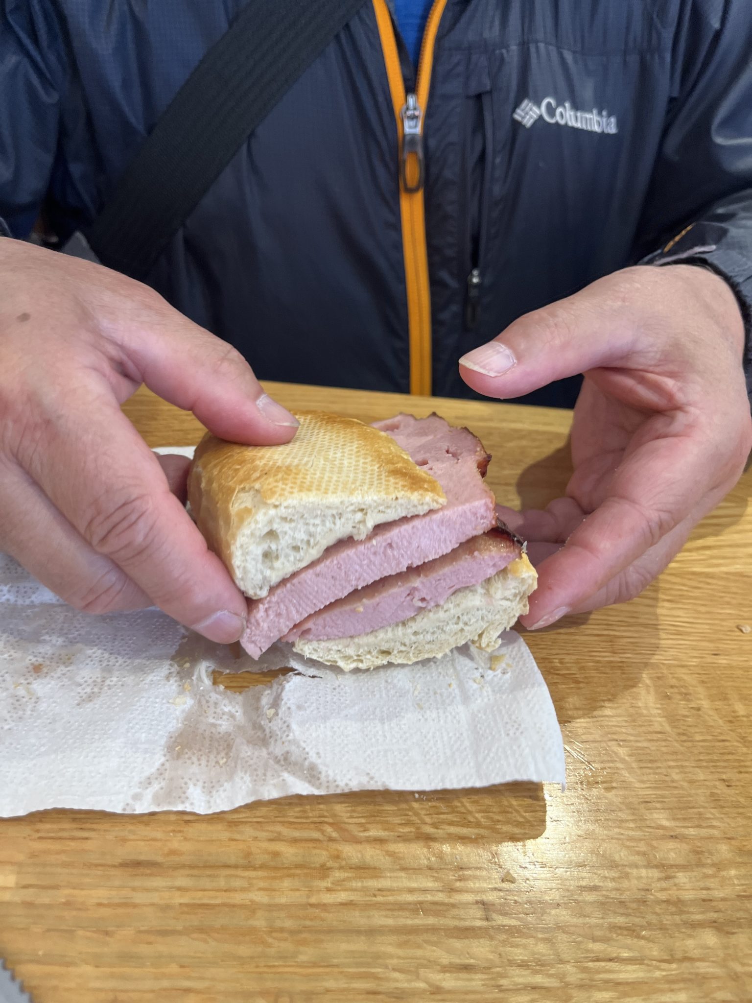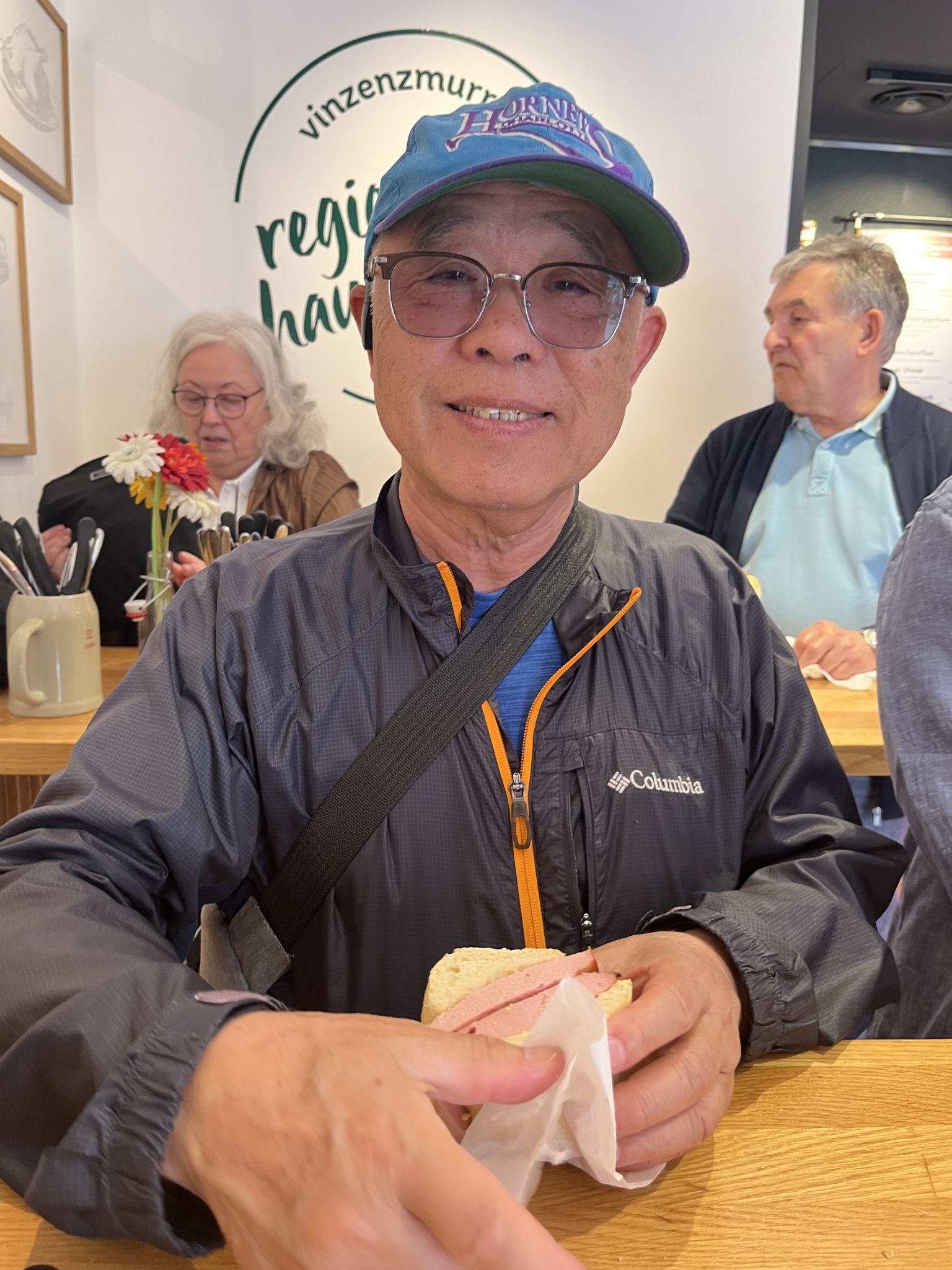 On our way out of the market we pass by several butchers that have these pork sandwiches on offer. Since they look very appealing and aren’t overly pricey we stop off at Vinzenzmurr and we order a variety of “meat in buns” to try! For an afternoon snack it really hits the spot! If only we had something like this at home!