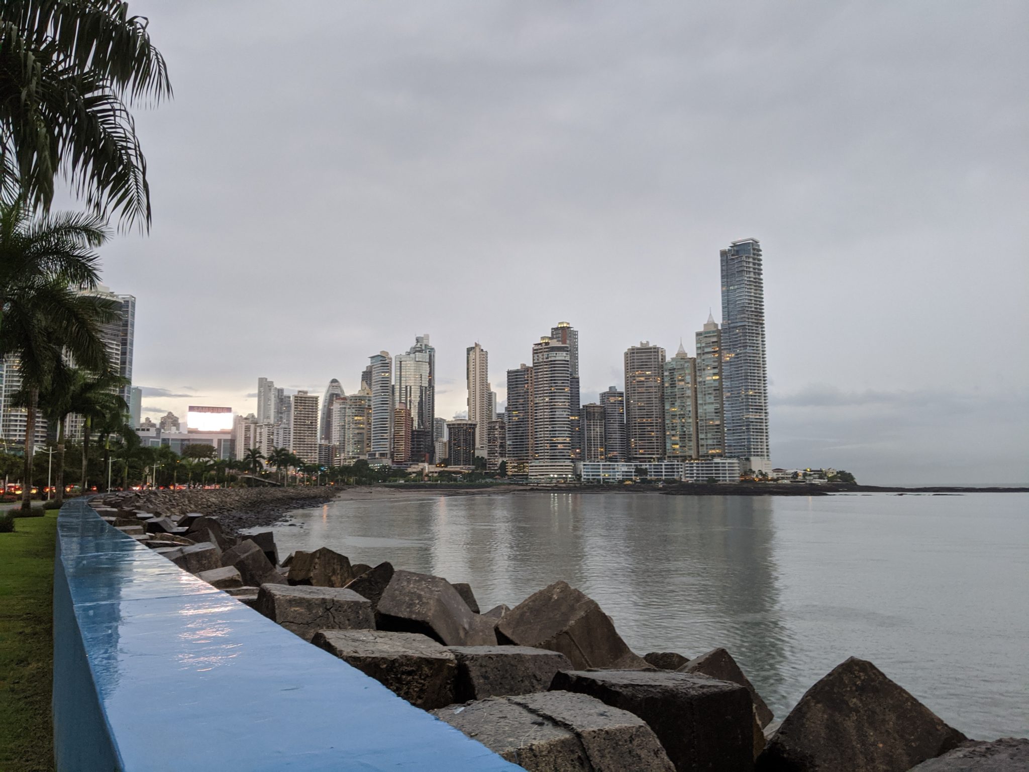 After stuffing our faces with McDonald’s, we started walking towards the water. Panama City has a very nice and we’ll developed coastal walk along the water. Unfortunately, by the time we made it near the water, it started to rain and pour on us. We did come prepared with umbrellas so, deciding to brave the weather, we did walk a portion of the boardwalk. On a nice day I can totally appreciate how lovely this part of the city can be. In fact even in the rain, it still gives a great glimpse into some of this cityscape.