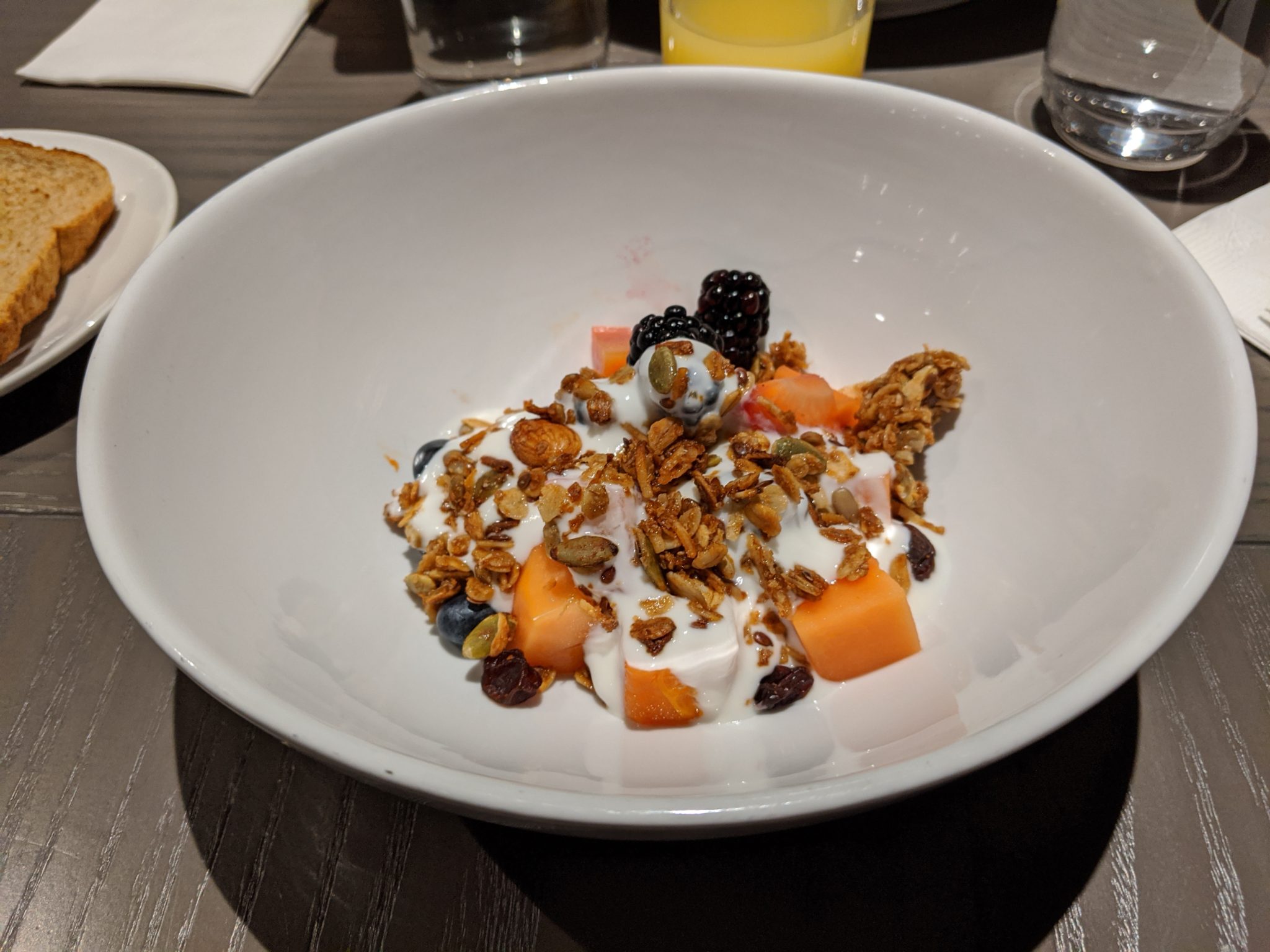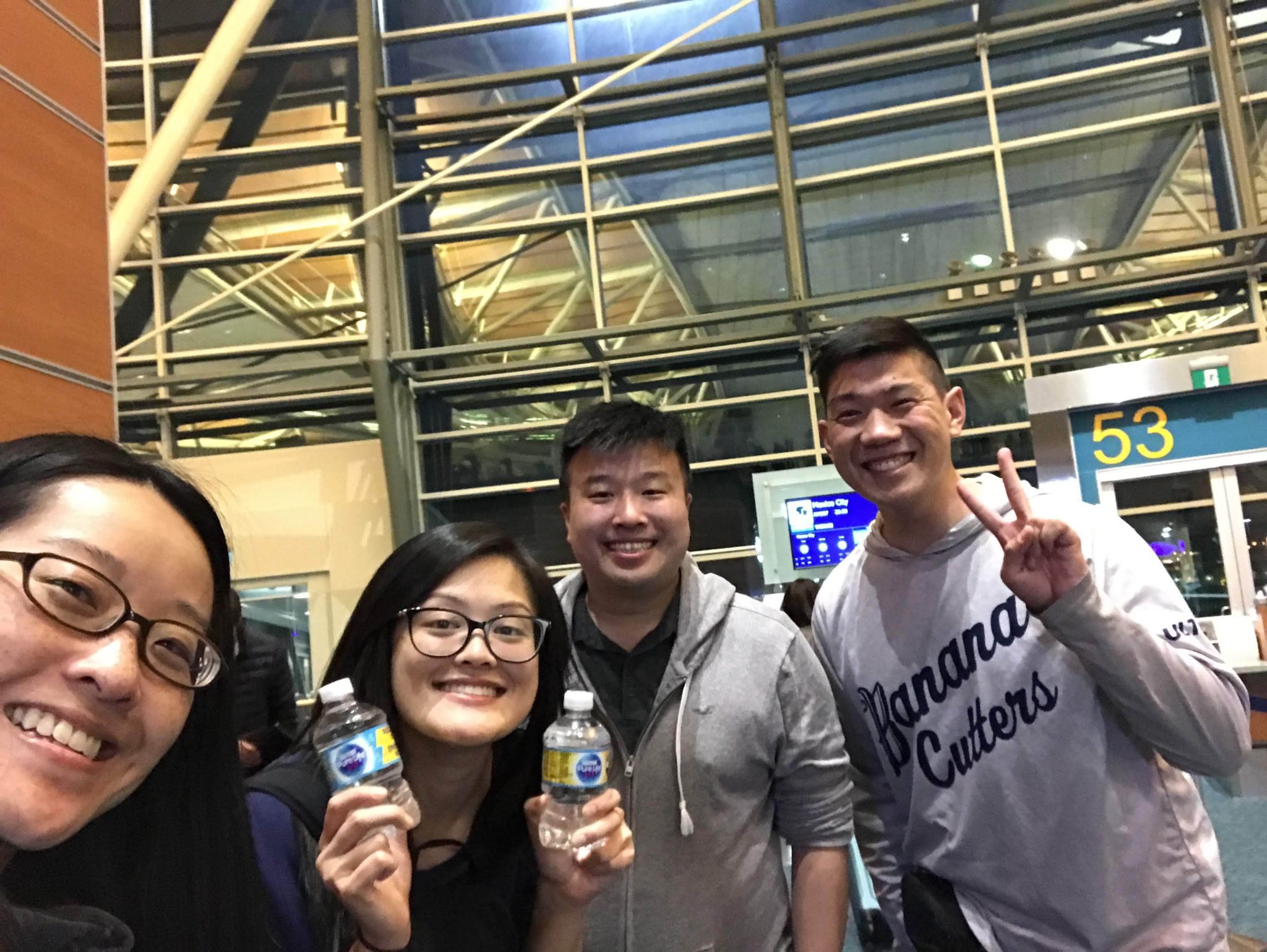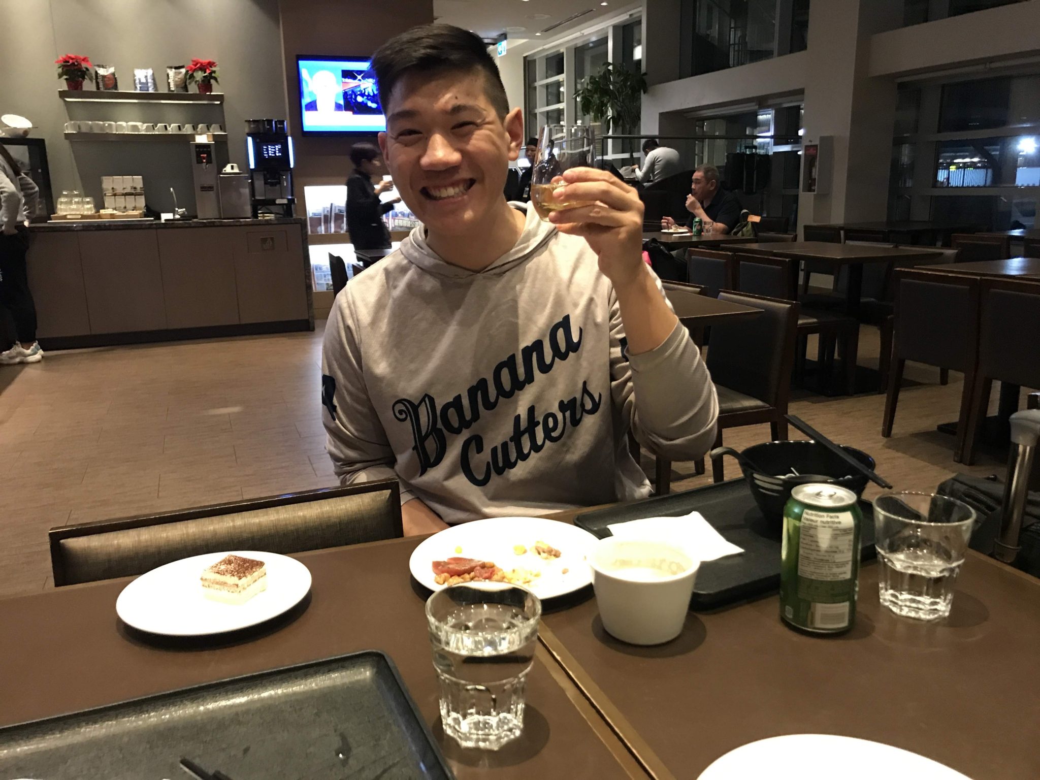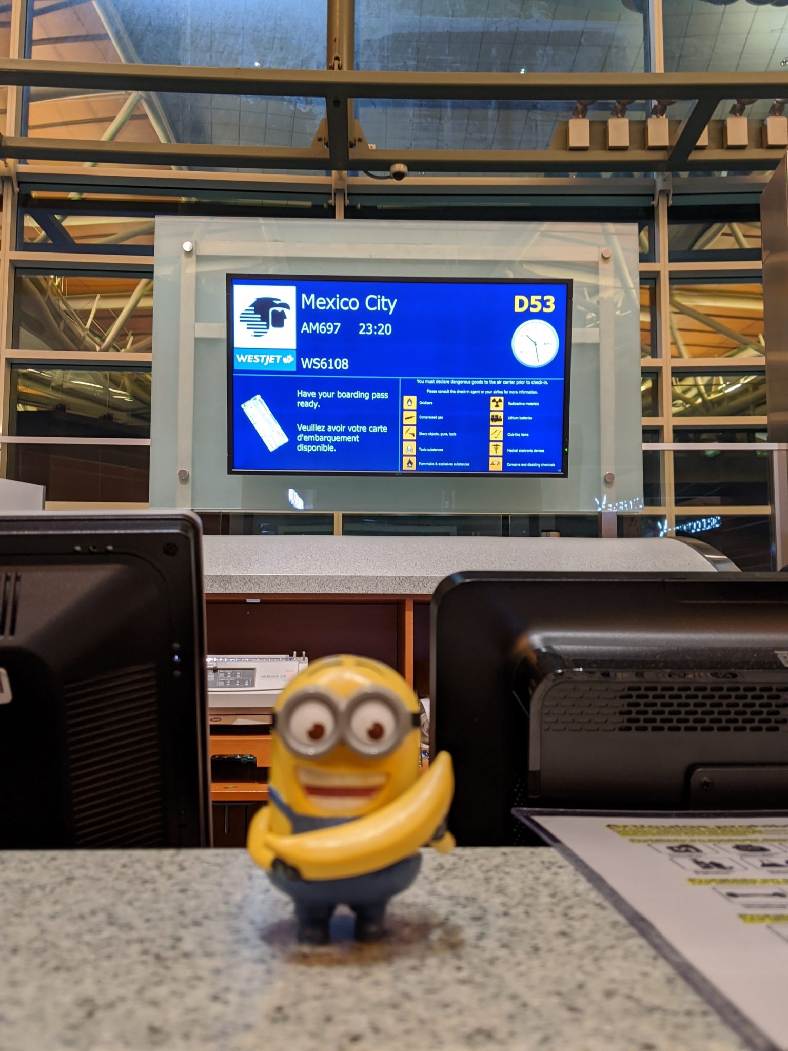 The Sister’s husband picked dropped us all off at the airport. Being December, YVR set up some interesting back drops in anticipation of Christmas so figured, why not partake! After passing through security we had a little time to kill. Because, I’m the only one that has access to the different lounges at the airport, I couldn’t get us all into one lounge. but managed to get Funkycat and Gimpy in the Plaza Premium lounge while the Sister and I spent the time in the Sky Team Lounge. Since this is a night flight, spending time in the lounge gives us a chance to get a little food and stretch our legs before the overnight flight to Mexico.