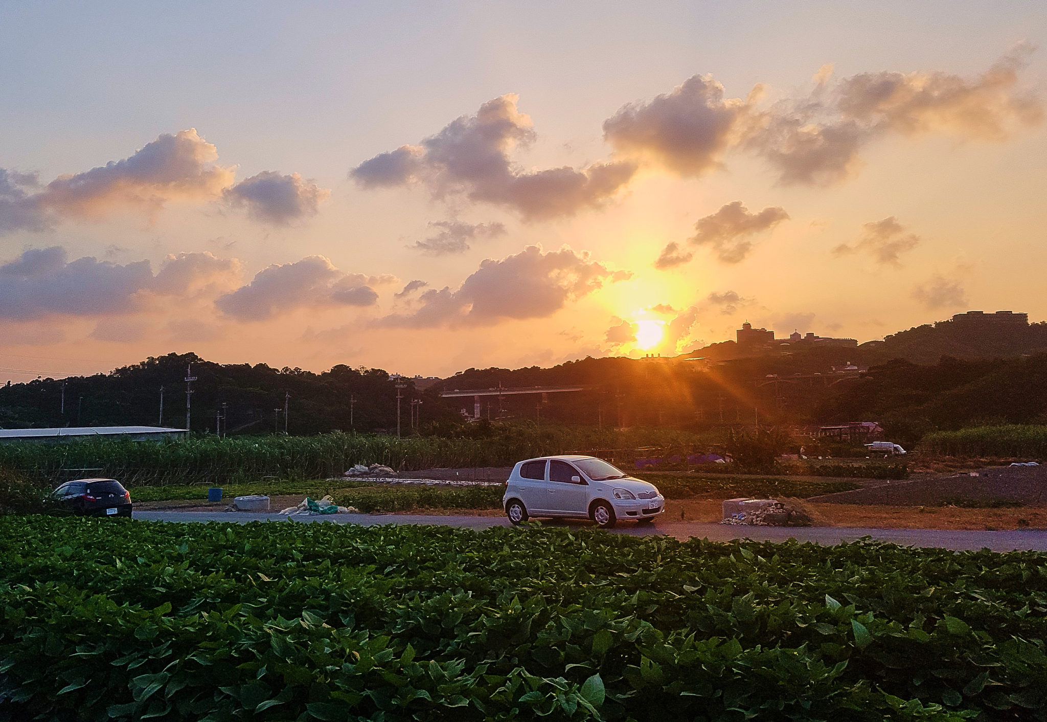 Nishihara Beach is about a half hours drive east of Naha, normally. However, we learned that google directions is not 100% intuitive when it comes to driving in Japan (or maybe it was just us). FunkyCat was navigating and what we thought would have been a short easy drive. Turned into a series of reroutes and paths along what seemed to be small farm lanes and sugar cane fields.