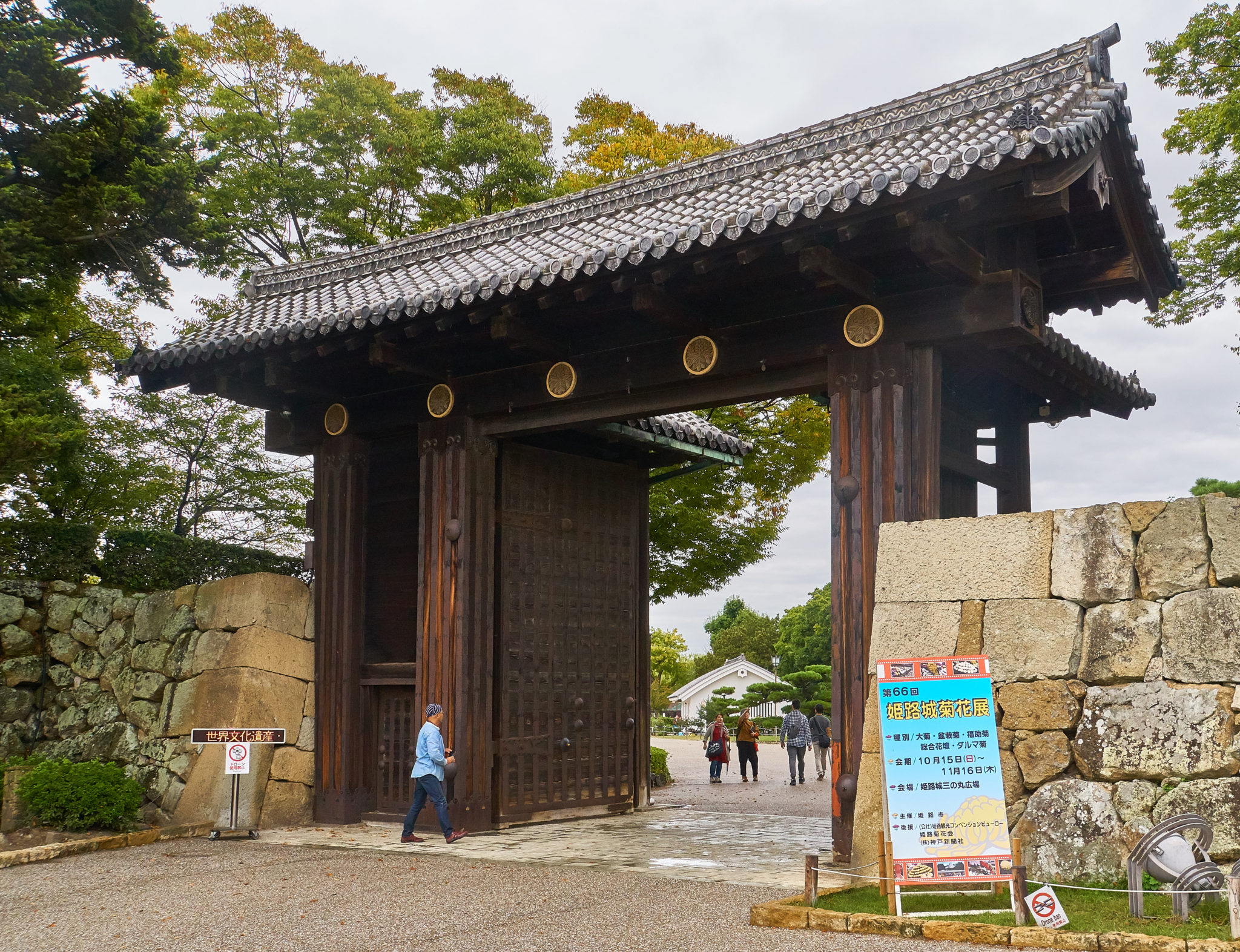 Because we weren’t able to get to Himeji yesterday we set out early to go today and arrived at Himeji Castle by mid morning. Himeji castle is considered one of the biggest and best representations of Japanese Castle building. When you get off the train, its a short walk towards the castle, but you can see it right when you leave the station. As you get closer you start to realize the size of the complex as well as how beautiful it is. From the outside, its this lovely white structure, but even then you can see that there is function in its design.