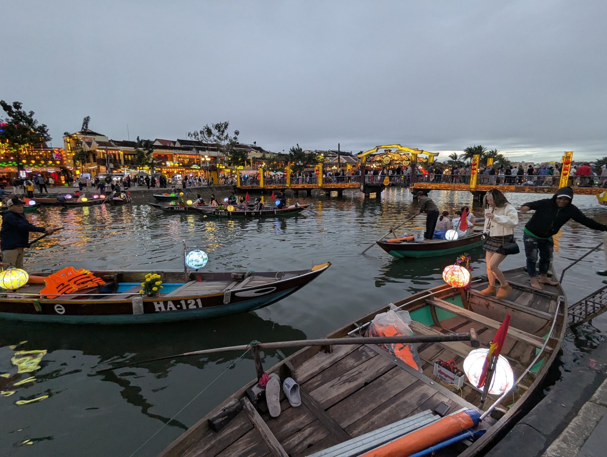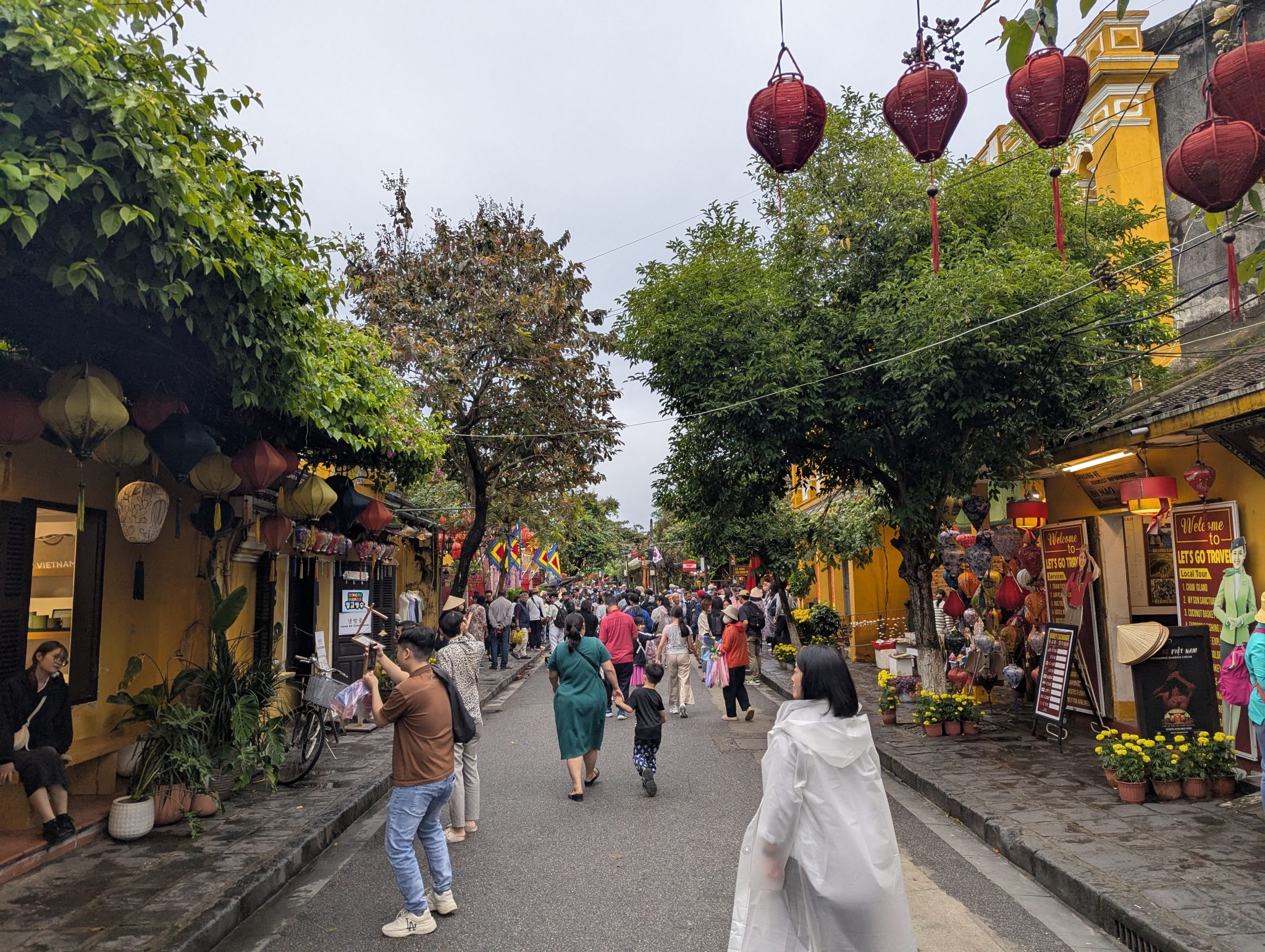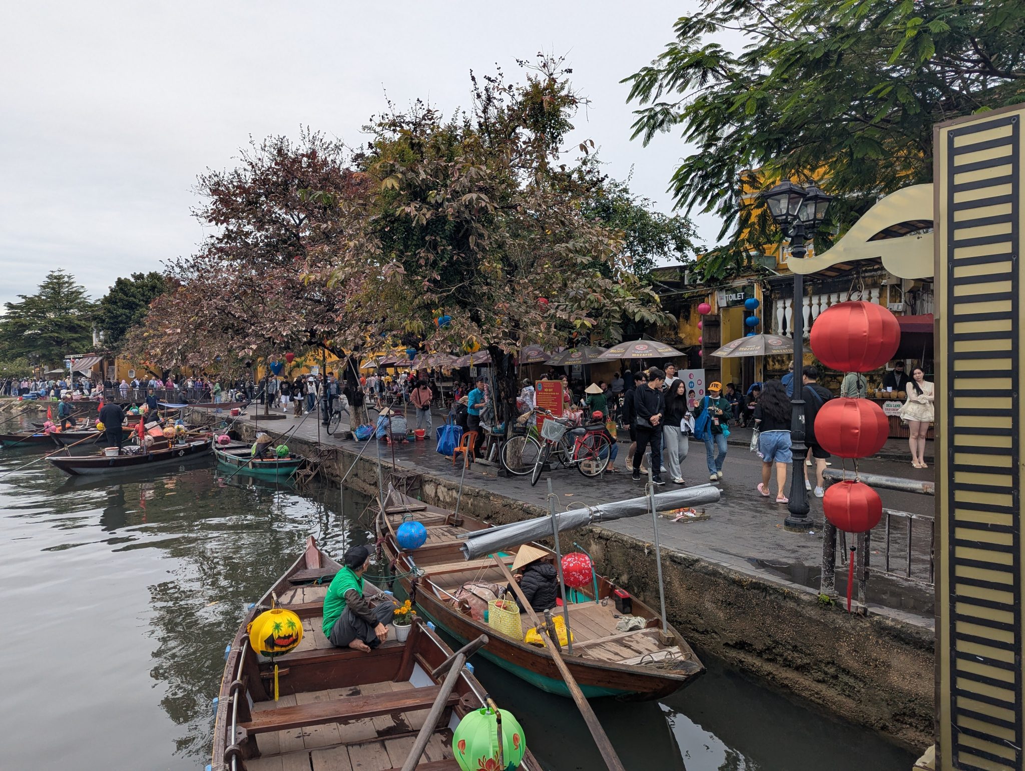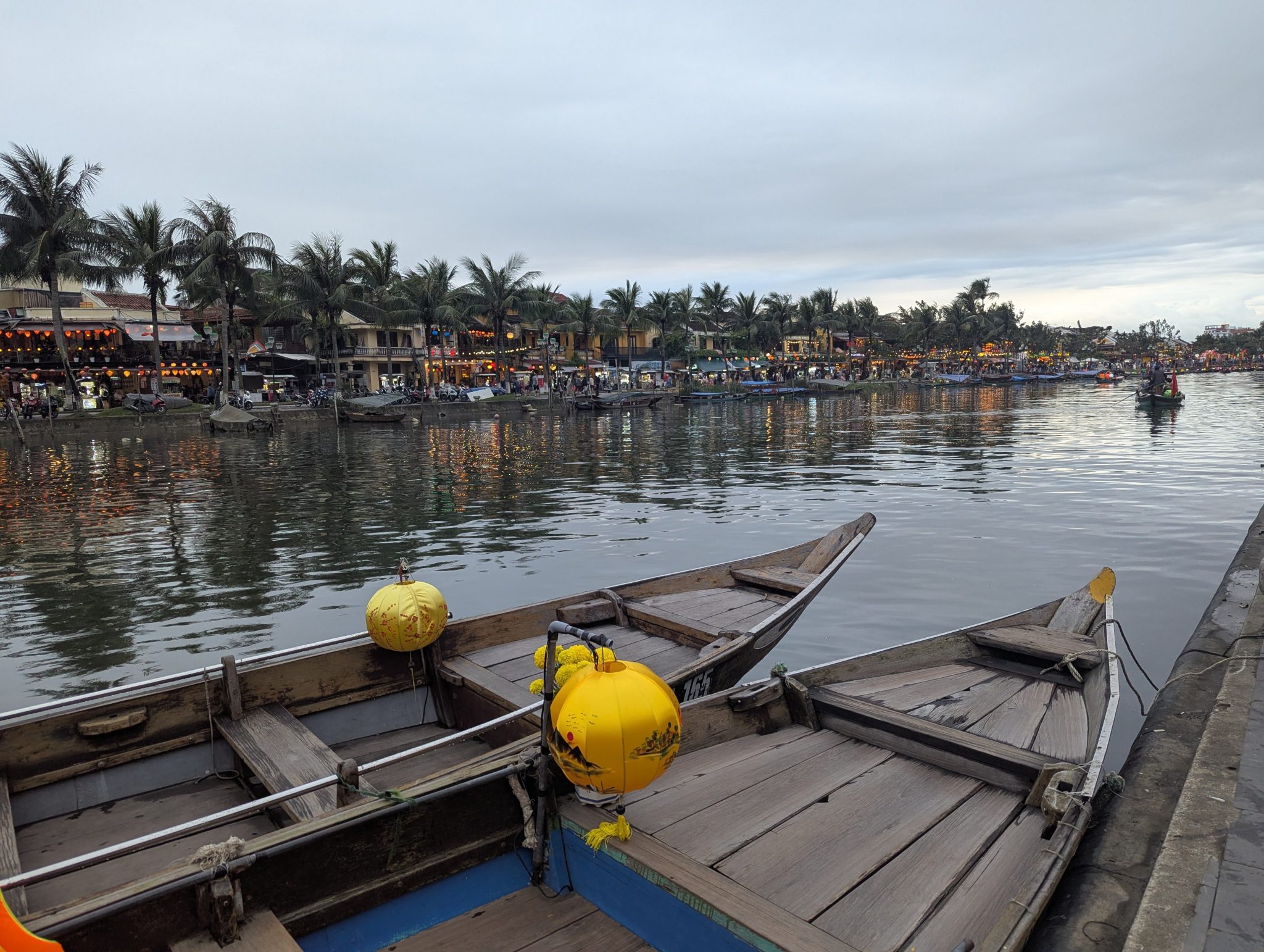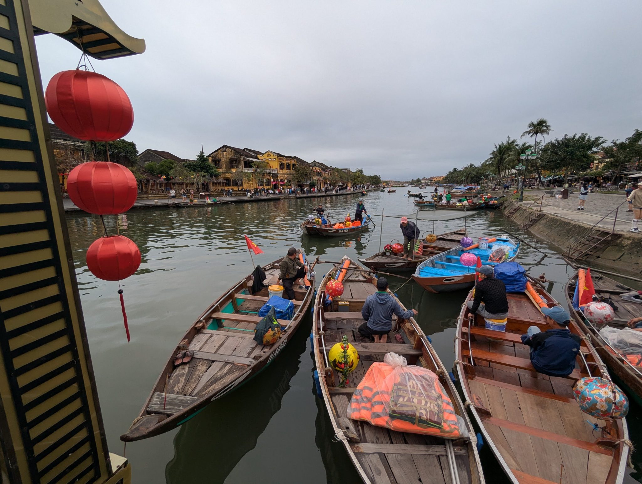 The first major stop on our sibling trip is Hoi An. Hoi An is a Unesco World Heritage site as an ancient South East Asian trading port. It retains a lot of its original architecture and layout. After landing in Danang we drive to our hotel in Hoi An, check in and get settled a little. Afterwards we set out to simply walk around and explore. Even with the rain clouds, Hoi An makes a lovely first impression. The waterway and beautifully decorated streets and buildings give it a lot of charm. I’m really looking forward to when its full with the hustle and bustle!