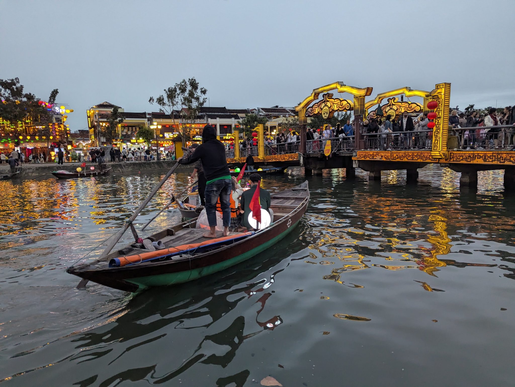 After lunch we continue our exploration of Hoi An. After a bit of walking we arrive at the Chua Cau, or the Japanese Bridge. It’s a bridge built by Japanese merchants in the 16th century and there is a temple at the centre. But these days, it looks to primarily be a popular Instagram spot for most tourists! On a calm water day like today though, the reflections do make for a very picturesque scene. Add the Hoi An architecture to the background and I can understand the appeal!