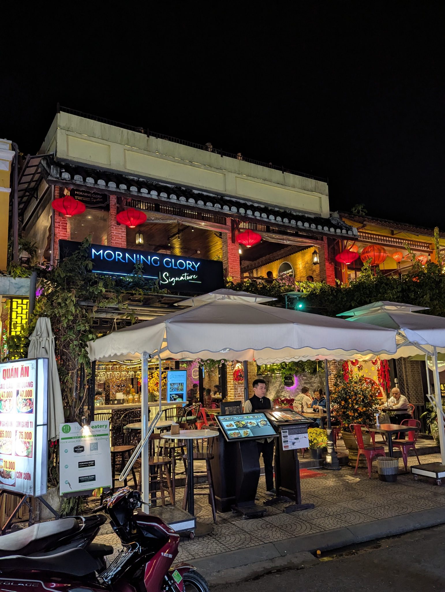 After getting our fill of the Lantern goodness, we head back to our hotel to rest before heading back out. For dinner we decide on a restaurant called Morning Glory and luck out with a great view overlooking the river and the night market below. We continue our sampling of some local dishes and are not disappointed. At this point, we both get to enjoy the environment we’re in, the food we have and simply the fact that our Sibling trip in Hoi An is starting out so well.