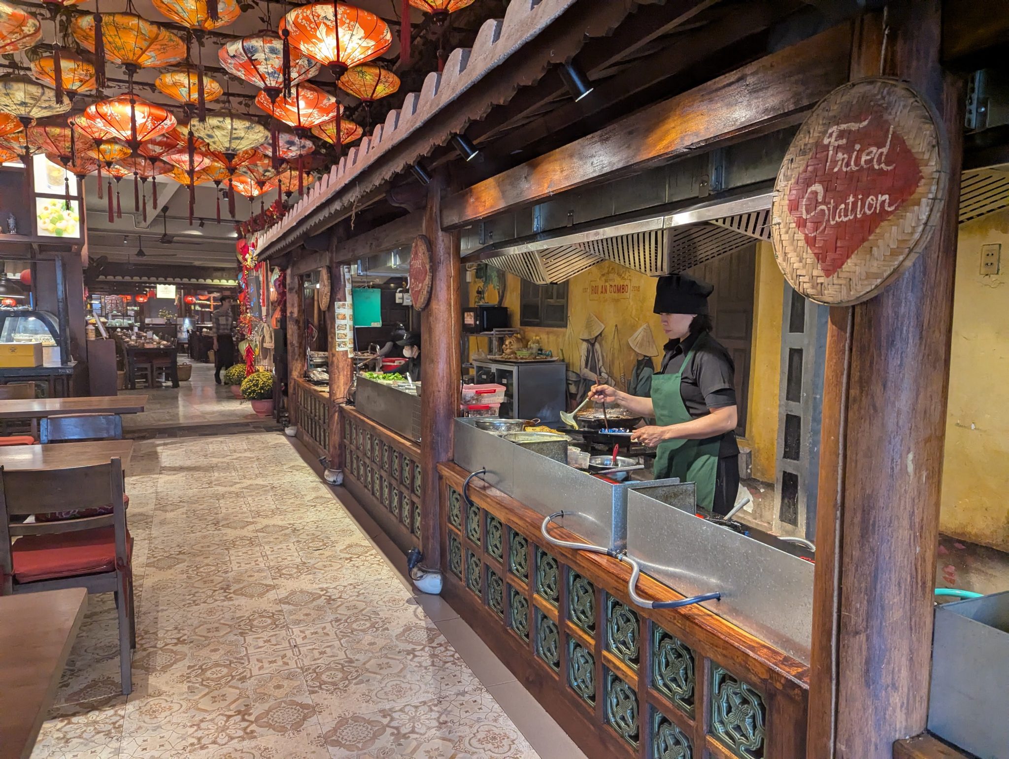 After a bit of exploration, our thoughts turn to lunch. With a few places on our list we decide on Vy’s Market Restaurant. The concept of the restaurant is kind of like multiple street food stands put into one food court area. You order with one of the staff and they go to the different stands to get the food for you. The eating area is in the centre and is surrounded by the various food stands. So if you are interested in a variety of different Vietnamese dishes but don’t want to wander to different areas to get them all, this might be an option.