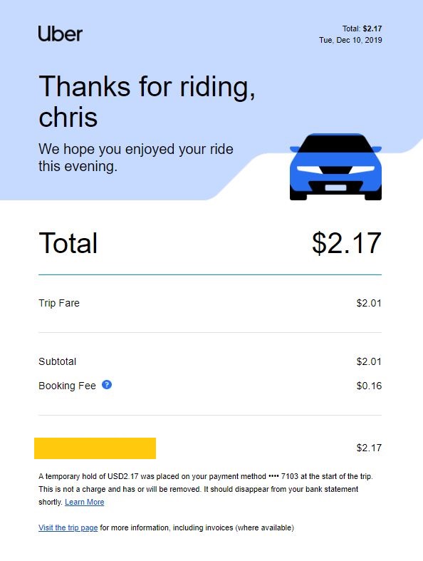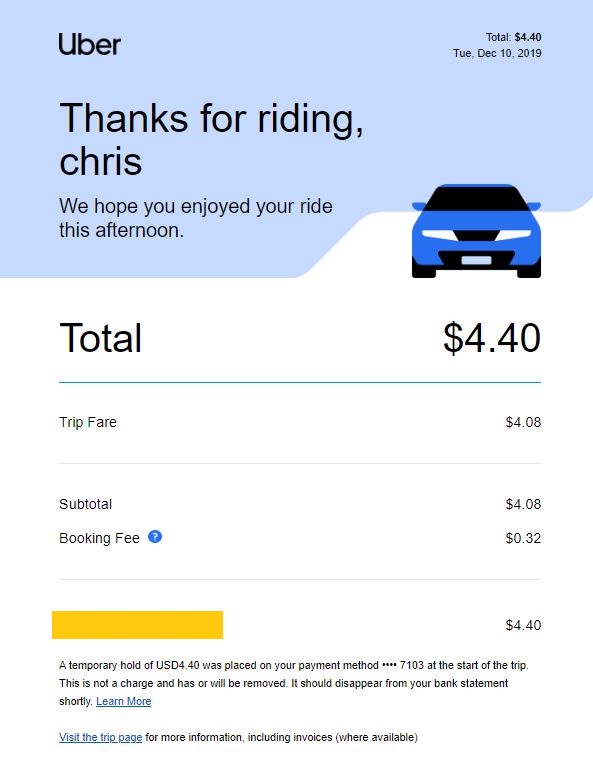 | Uber | + $18.75 ($75 Total) |