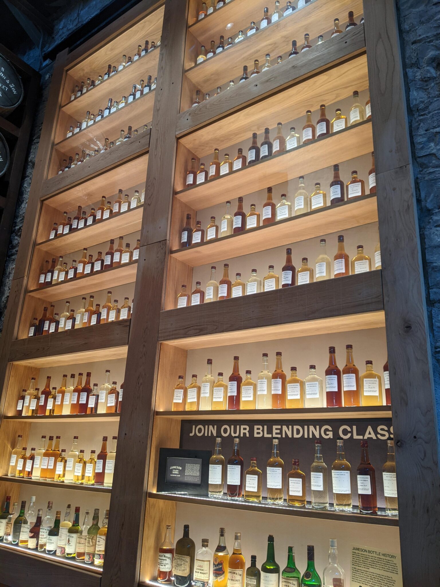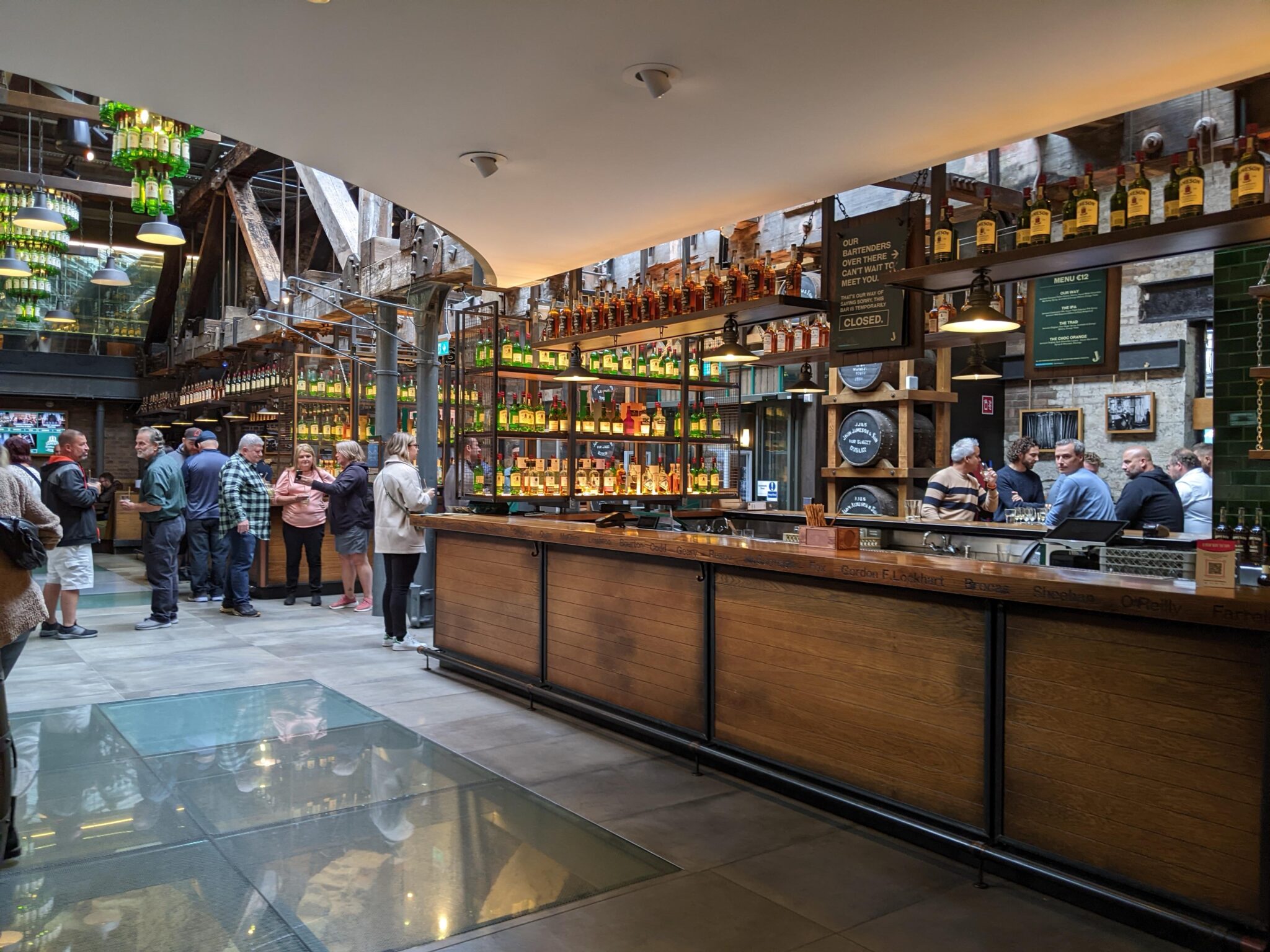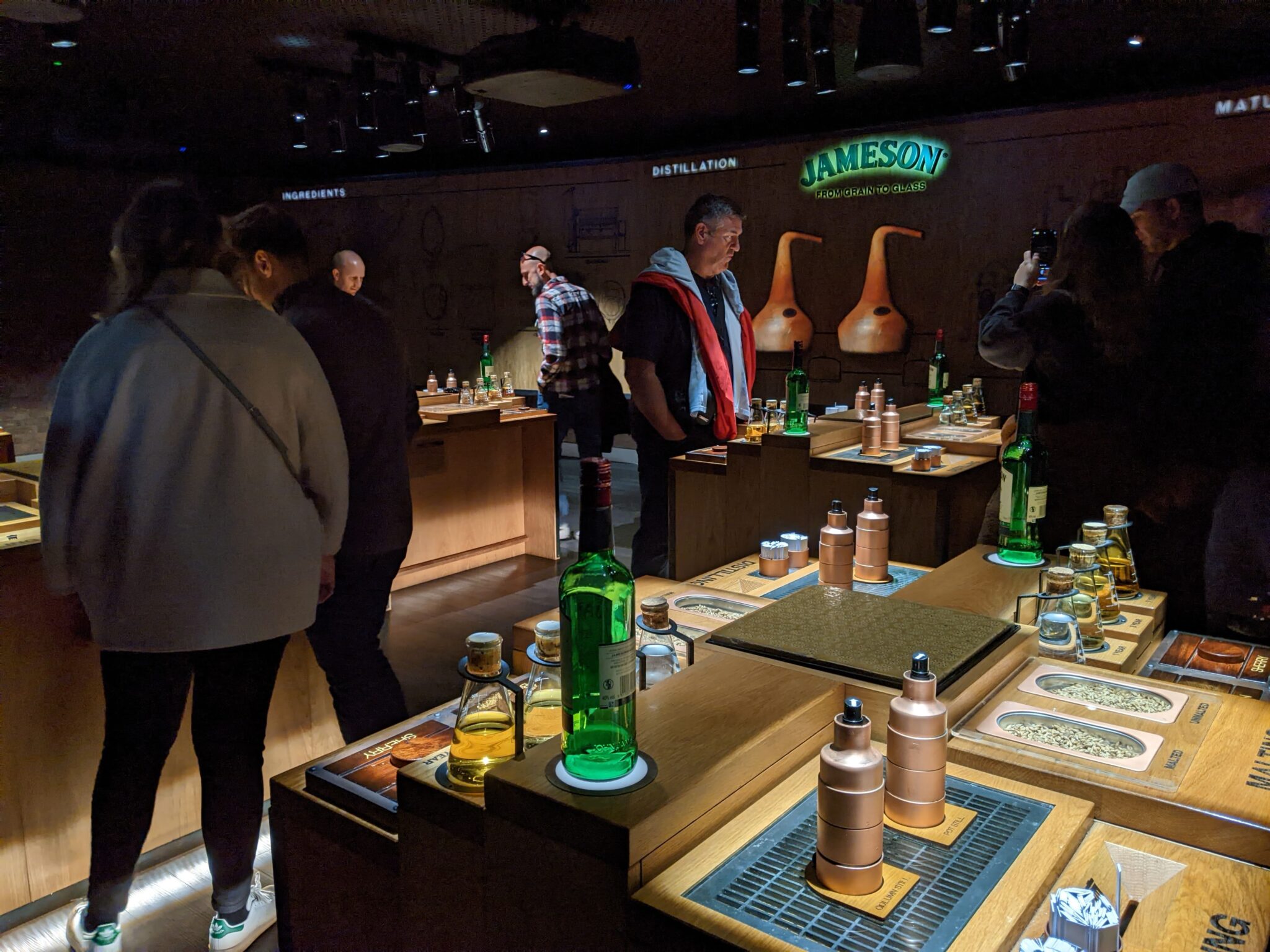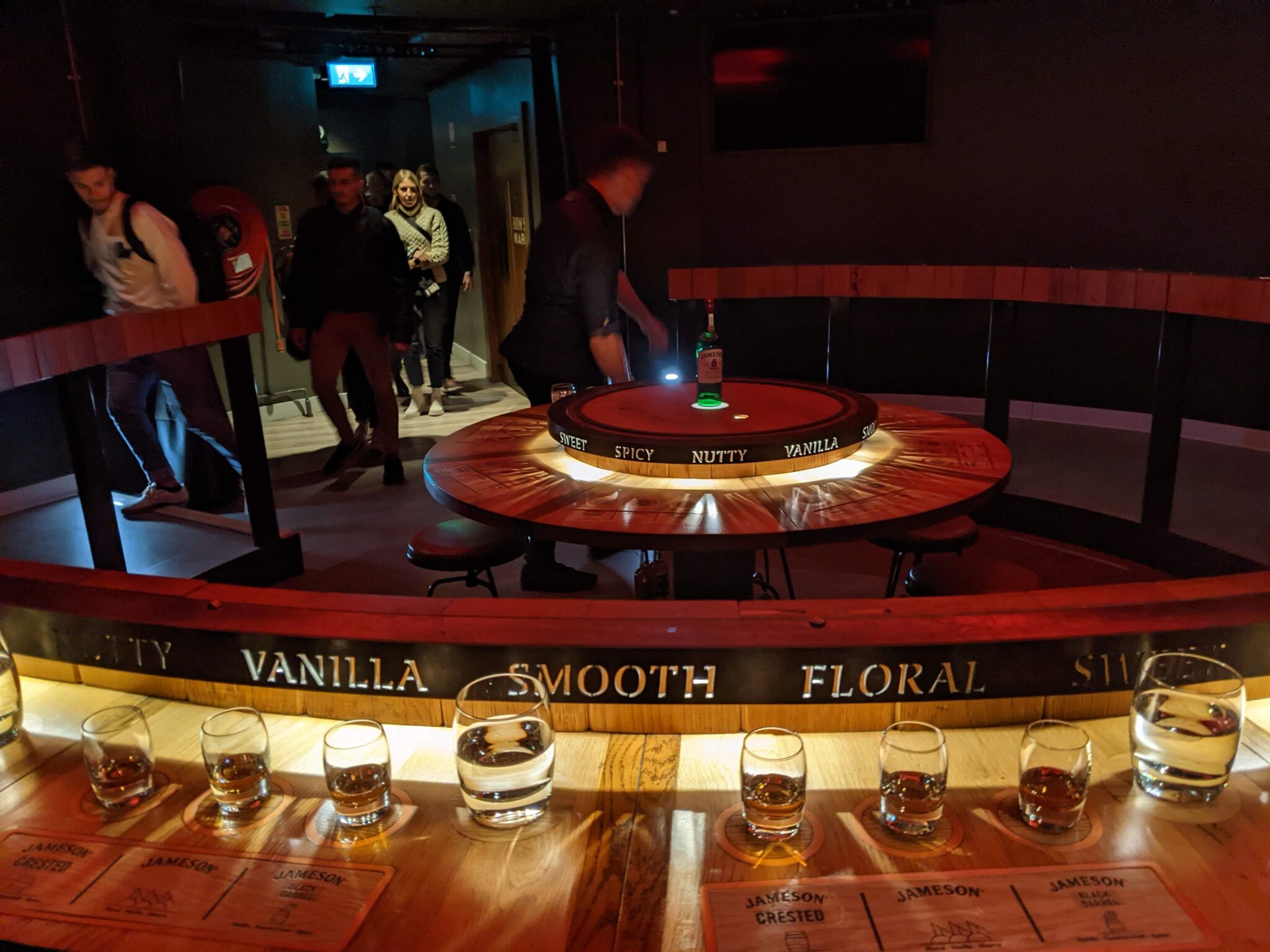 Next stop would be Jameson’s Bow Street Distillery. While most of Jameson’s Whiskey production no longer happens at the Bow Street location, there’s still a lot to explore here. I end up booking two “experiences”. The first of which is the Bow Street Experience and the second is the Secret Whiskey Tasting. Upon arriving, the doors had yet to open so a crowd began to form. However, after a few minutes things began to open and we were allowed in. The main area is literally a bar with “all things Jameson”, even the lighting! I suspect even if it’s not a destination for tourists and whiskey fans, this place can get going in the evenings!