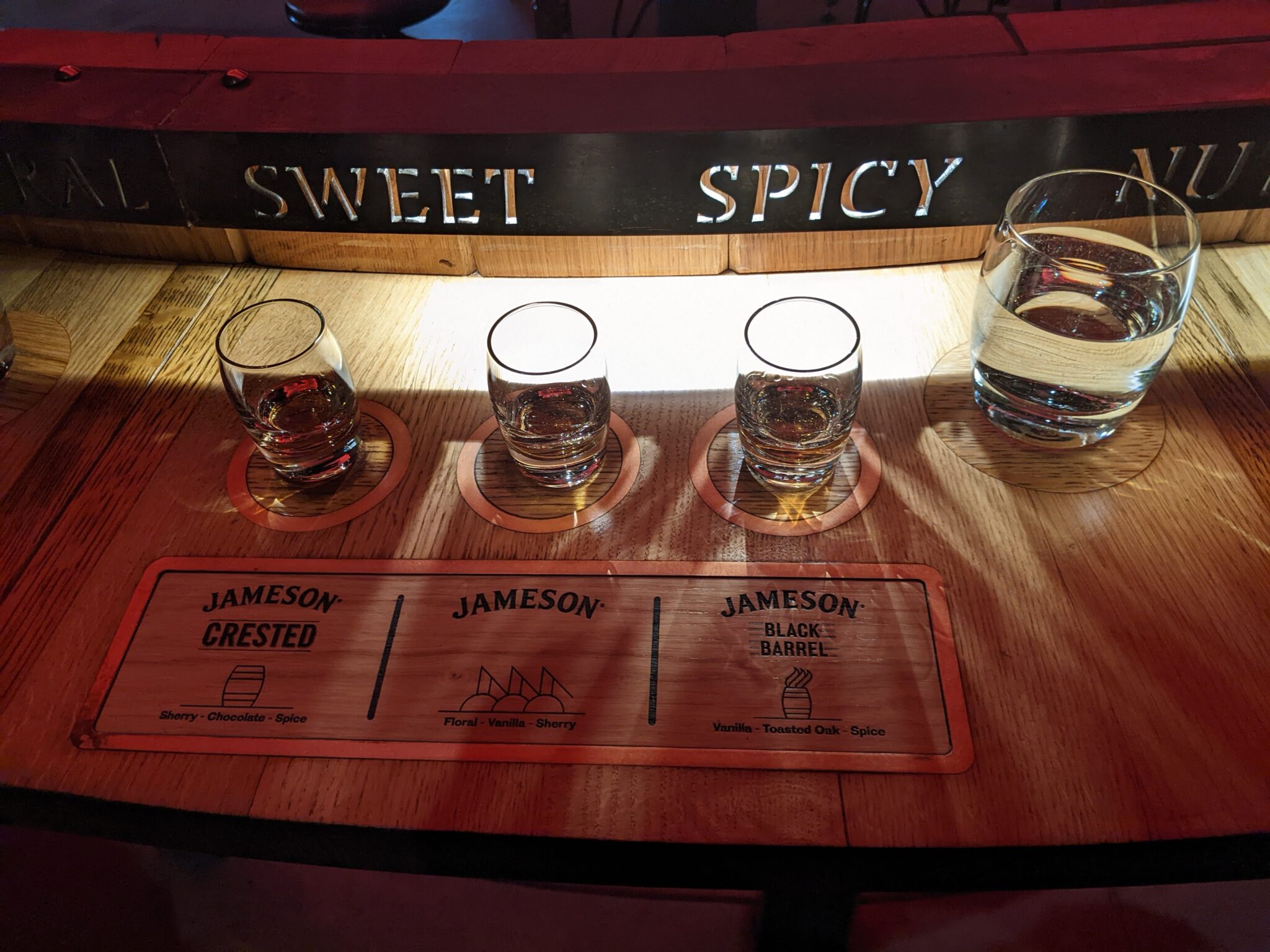 To be perfectly honest, I am slightly disappointed at the selections provided, especially the Black Barrel since it is offered on the main tour. However, I did discover a new distillery in the Knappogue and get to try something pretty special in the Jameson 18 years. You’ll notice the three glasses on the tasting board. This is because for trying the 18 years, they poured our glasses and then allowed us into the cellar room to consume it.