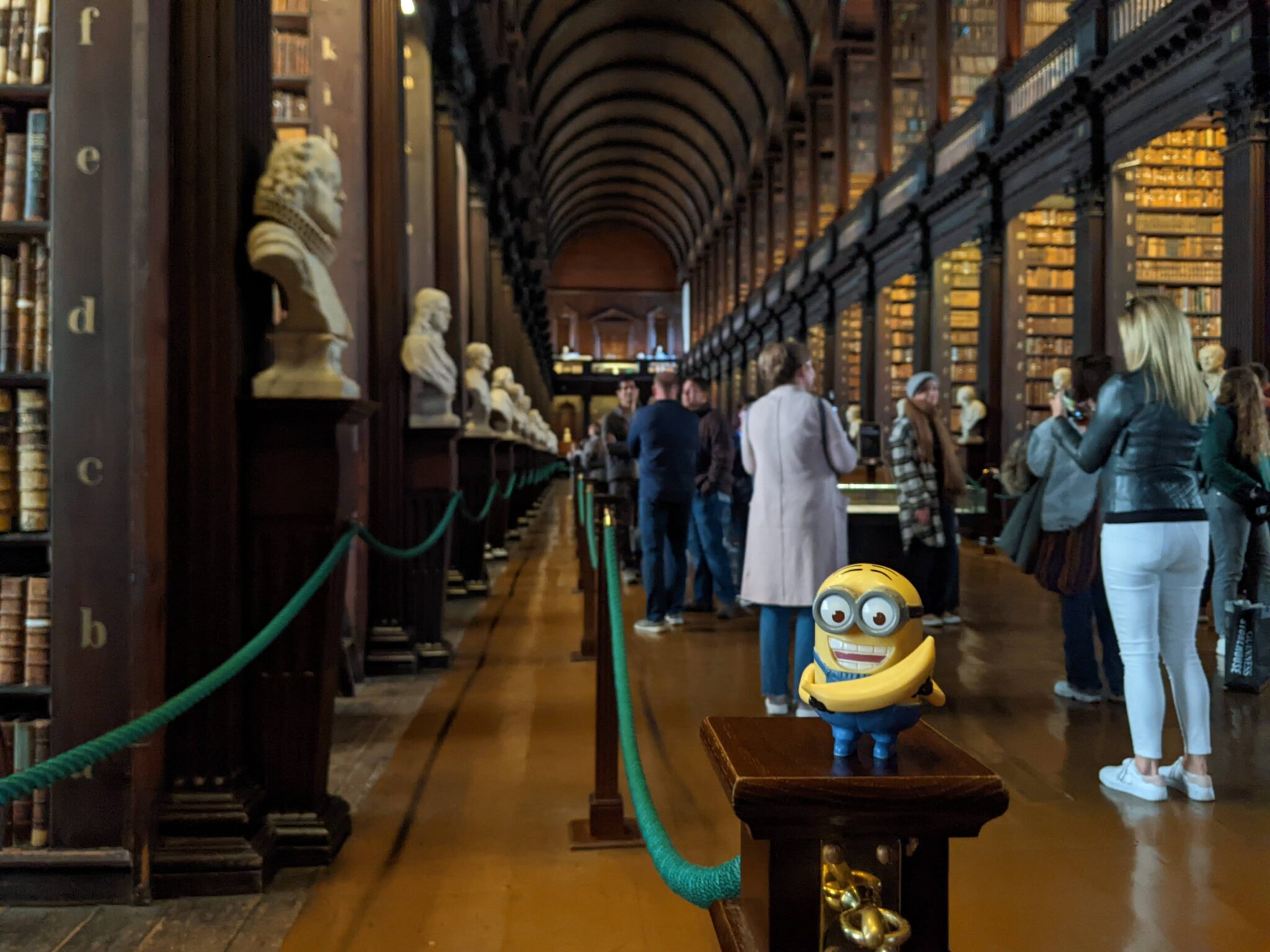 After leaving Jameson, I make my way back to the hotel to drop off my precious “Travelling Minions” Whiskey. I then proceed to Trinity College for my booking to see the Book of Kells. The Book of Kells is an illuminated manuscript of the four gospels. From reading the exhibits, illuminated manuscripts are intricately hand made books. Usuallywith gold or silver embossing along with a variety of colourful dyes. In some cases these books are more like art than it is a book! Unfortunately, due to the sensitive nature of the Book of Kells, no photos were permitted. Sadly, I don’t have any to post because of this.