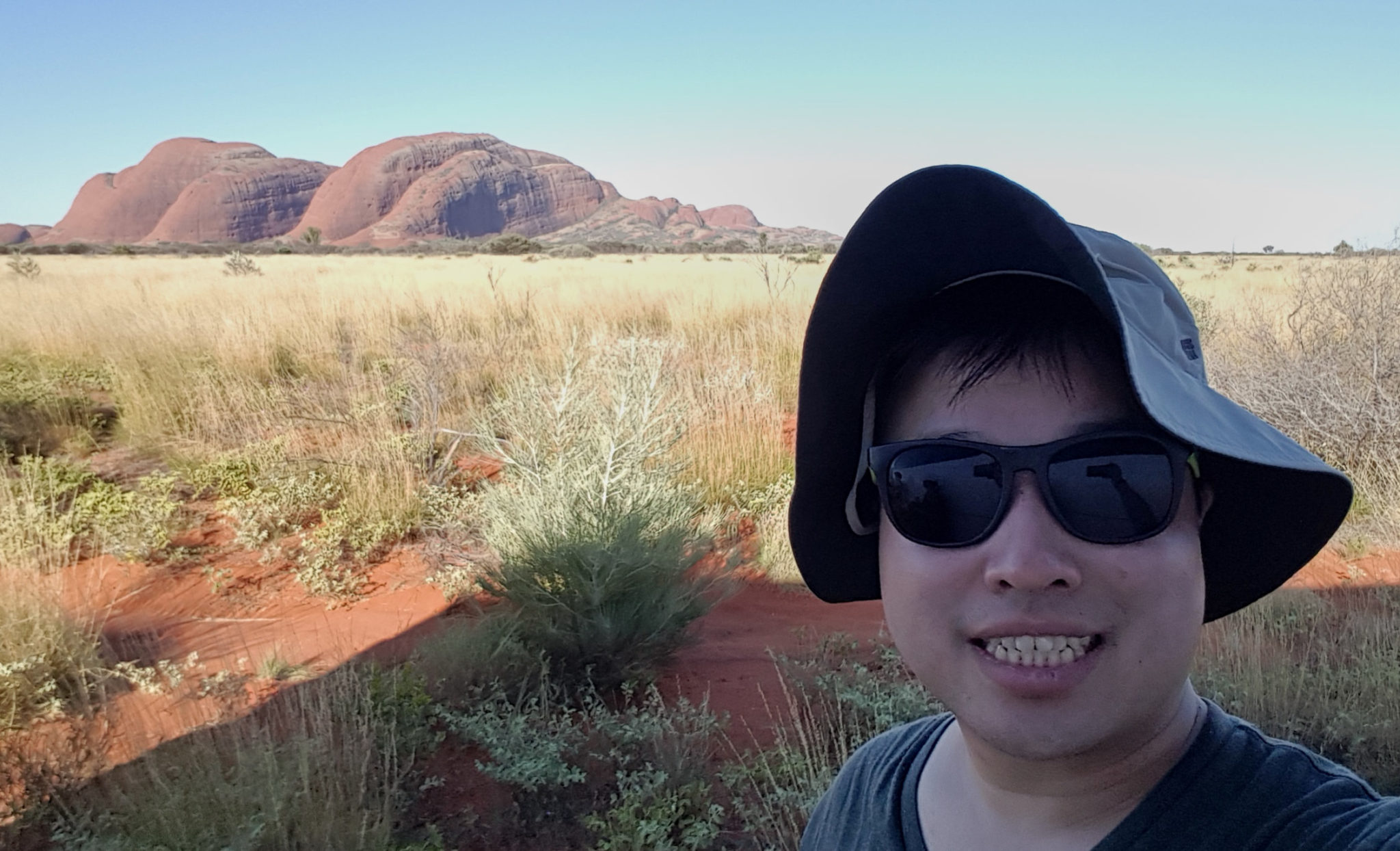 Our first stop was to Kata Tjuda, another rock formation near Ayers rock. Its not as uniform as Ayers, but in a way I liked it better. There was more variety to the formations and the curves and angles made for more interesting viewing. We would do a 1.5 hour hike here. I was slightly dreading this because the outside temperature was around 37 degrees Celsius. And if you know me, I tend to prefer the cold, over the heat, so to this day I still wonder why I booked the activities that I did!
