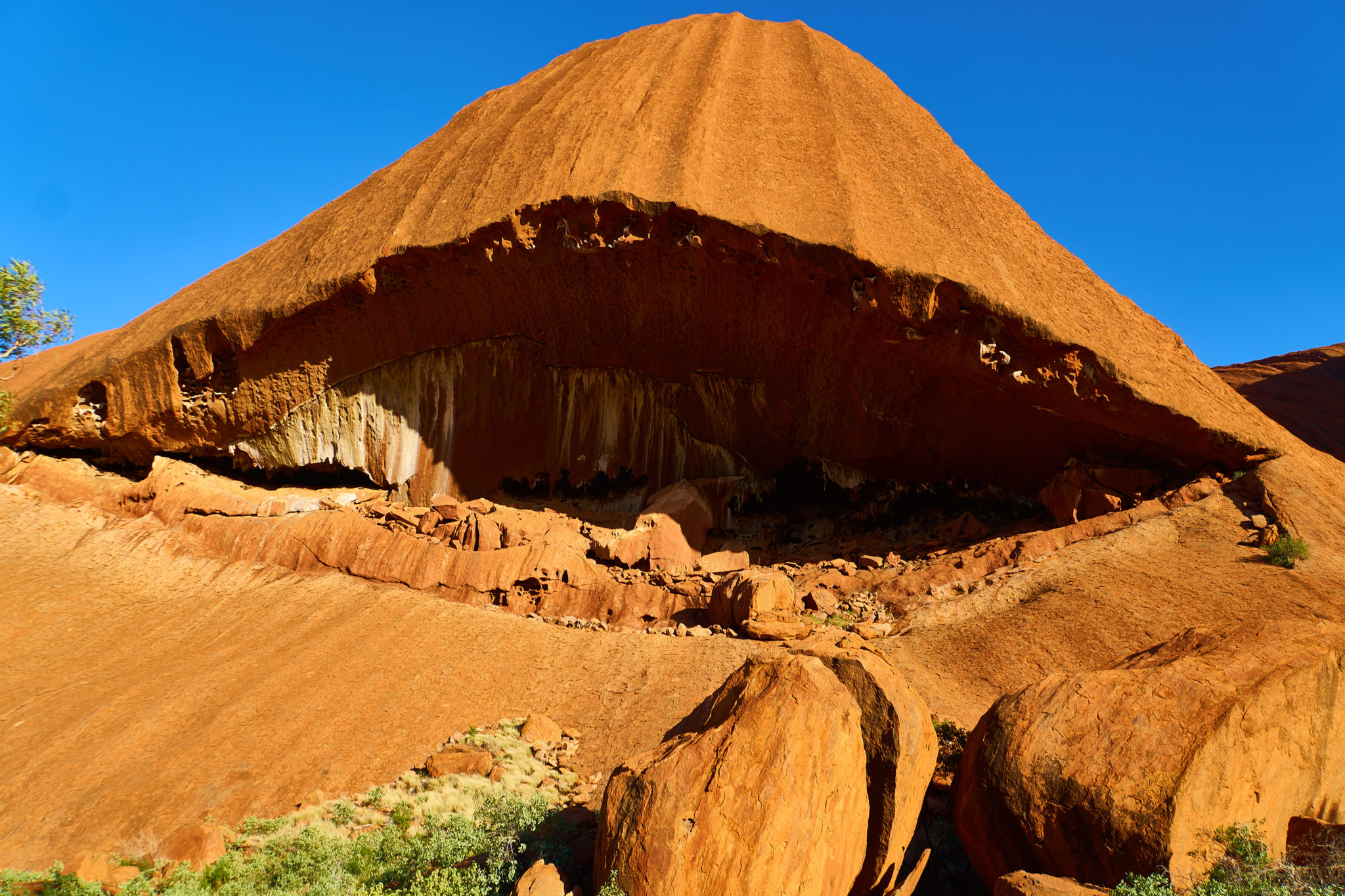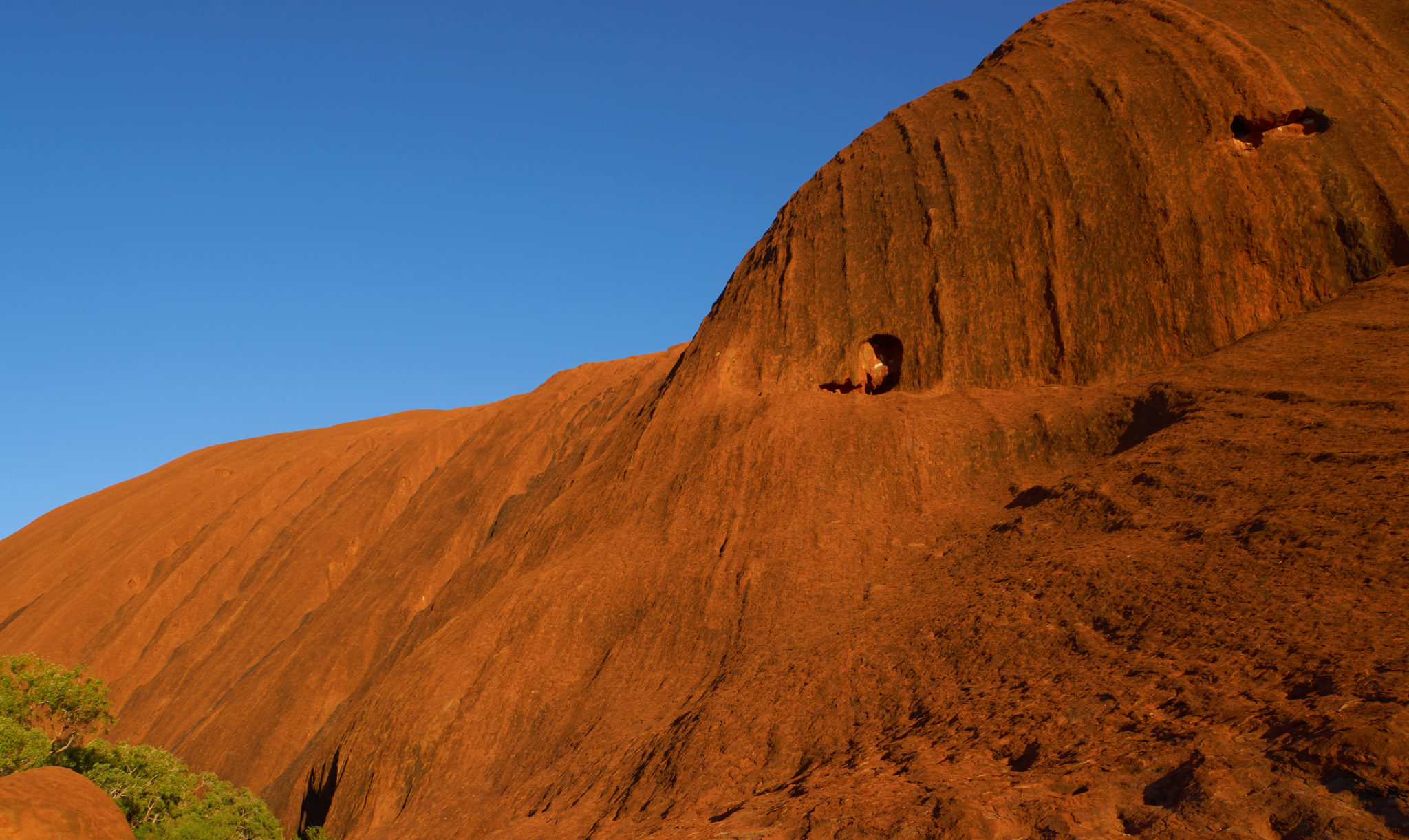 We got dropped off at the base of Uluru and had the opportunity to walk halfway around the big rock. It was about 6 kilometers and took us a little over an hour to do the walk. From afar the rock itself seems quite uniform, however up close you can really see the details. There were parts that had broken off, aboriginal meeting areas and even a few watering holes which would be refilled every time there was a rainfall. I found the walk around the base to be much more interesting then the sunset/sunrise viewings from afar.