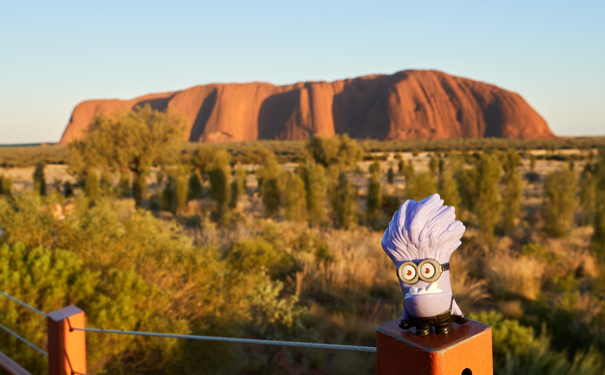 We woke up at the ungodly hour of 4:30 am in order to pack up camp and get to the sunrise viewing platform. It was kind of funny because it was exactly the same setup as the sunset (without the champagne though). There were a number of tour buses already there, there were viewing platforms and we had the sun at our backs. So all my comments about the sunset, apply here as well. Nonetheless I took a few pictures but we piled back into the bus soon after sunrise to drive to the rock itself