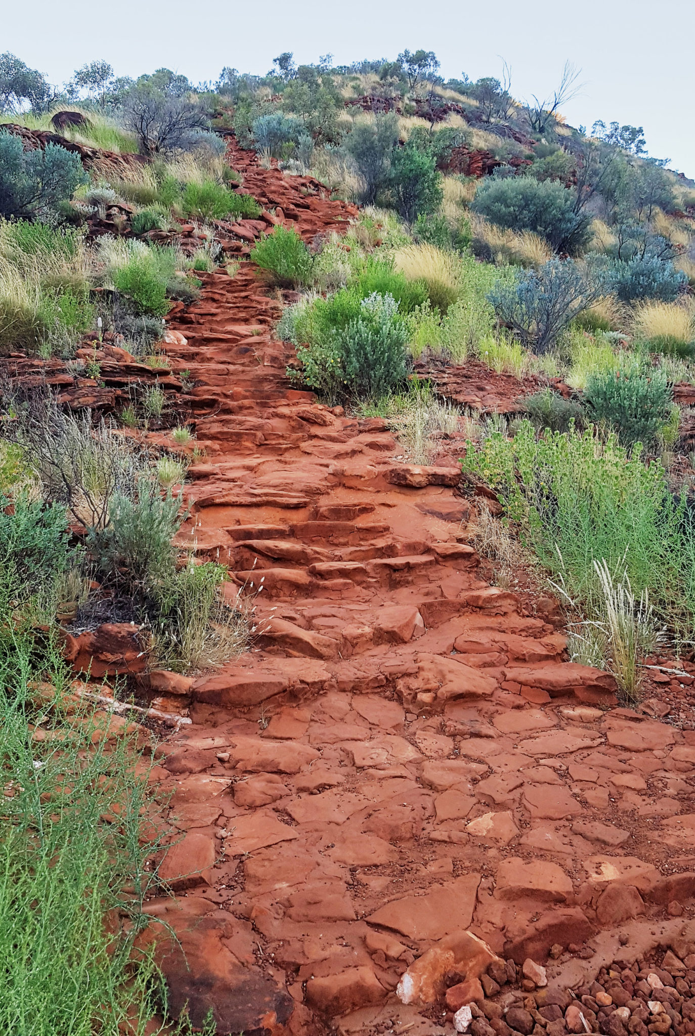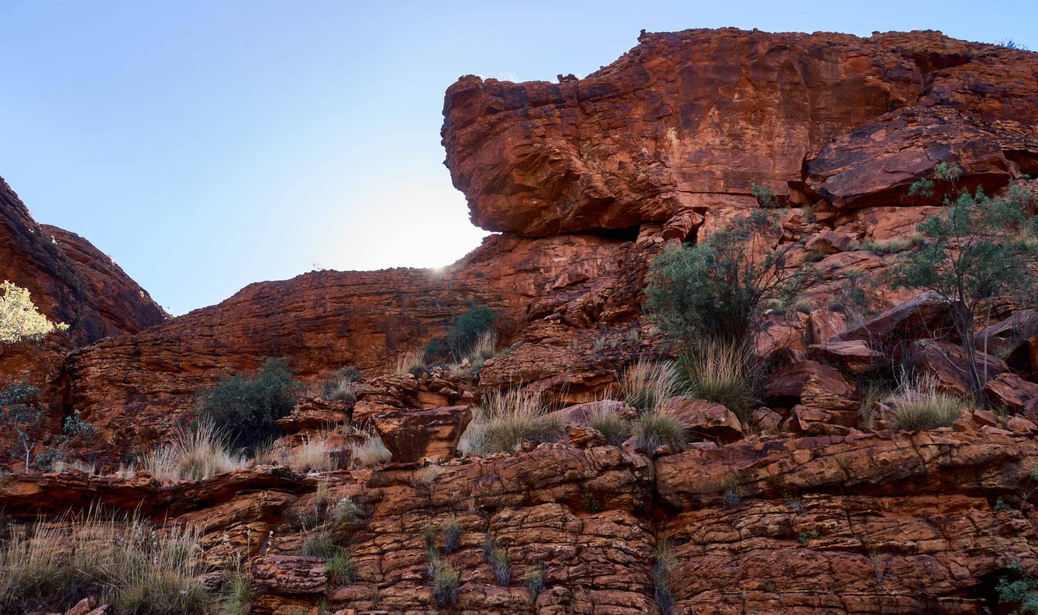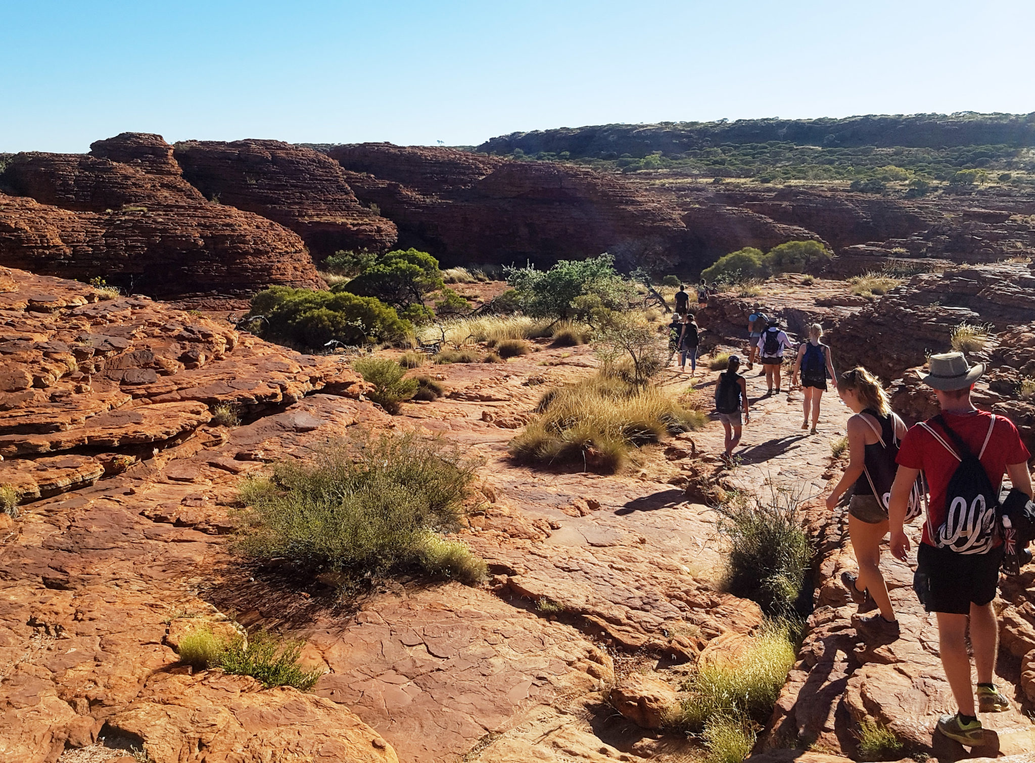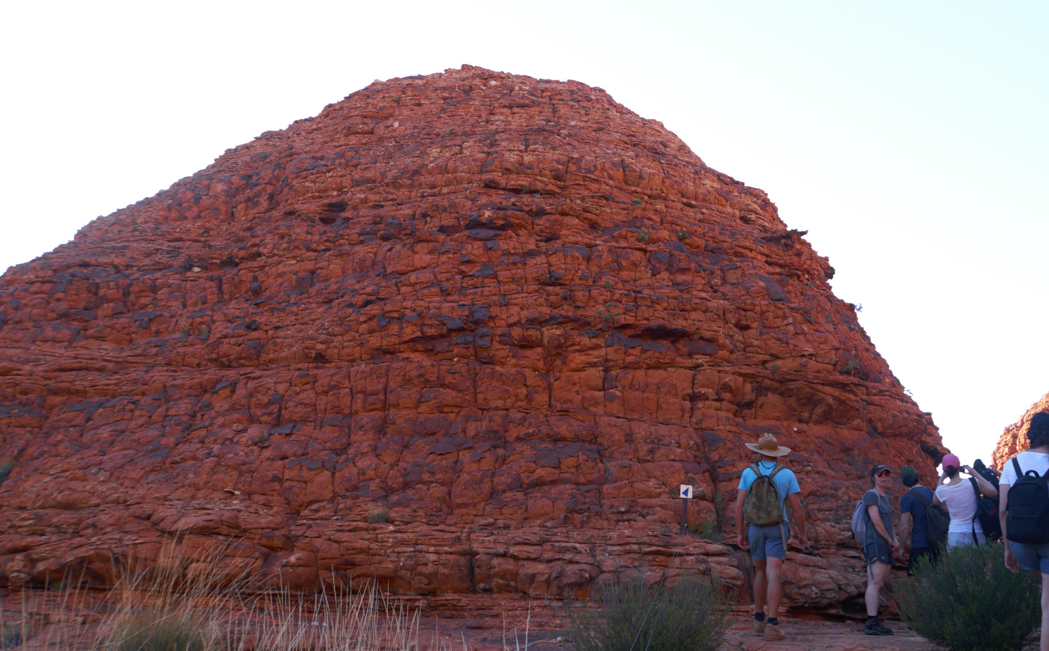 We had one activity planned for our last day on tour. It was a Kings Canyon Rim Walk. To avoid the heat (which would be a horrendous 37 degrees again) we were again up at 4:45 am, to pack up camp and get to the canyon. The first part of the walk was about half an hour up a vertical incline to get to the top of the canyon. It was nicknamed “heart attack hill” because some people have had heart attacks attempting the hike in the heat. Luckily for us, it was still cool in the morning, we were warned to have enough water for the hike and we took a few breaks during the ascent.