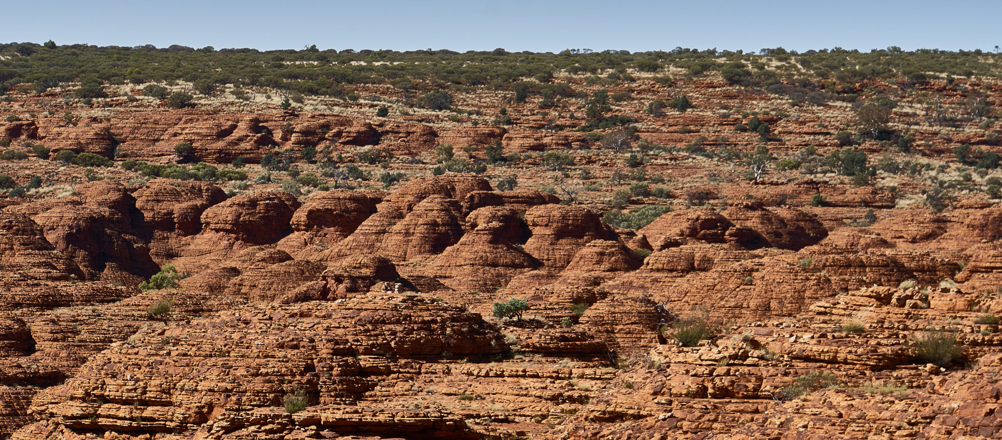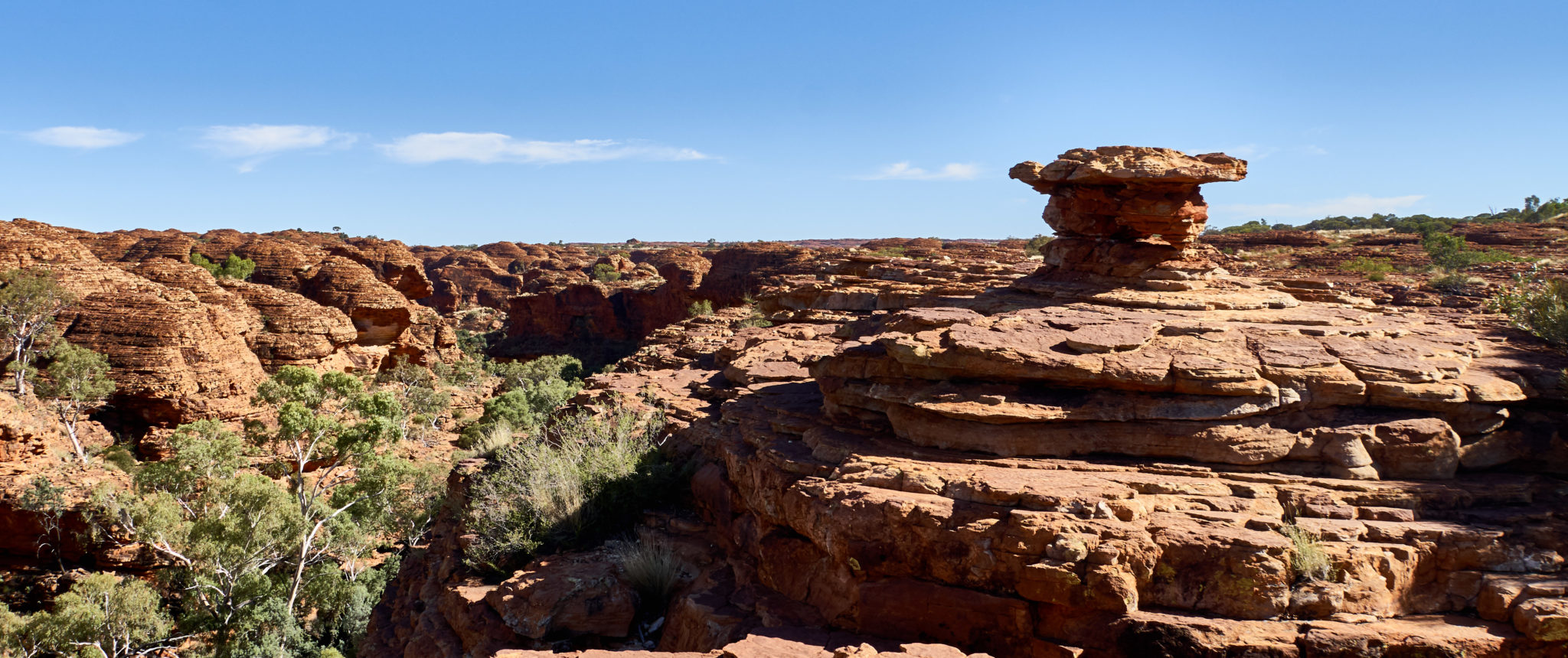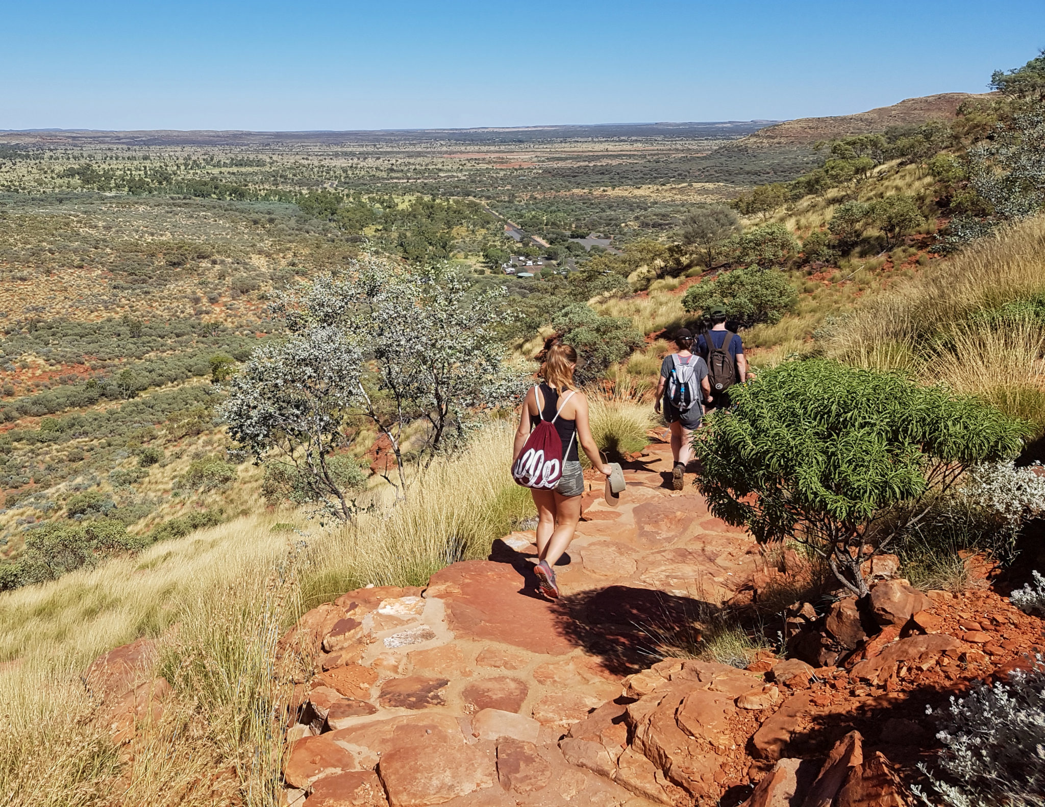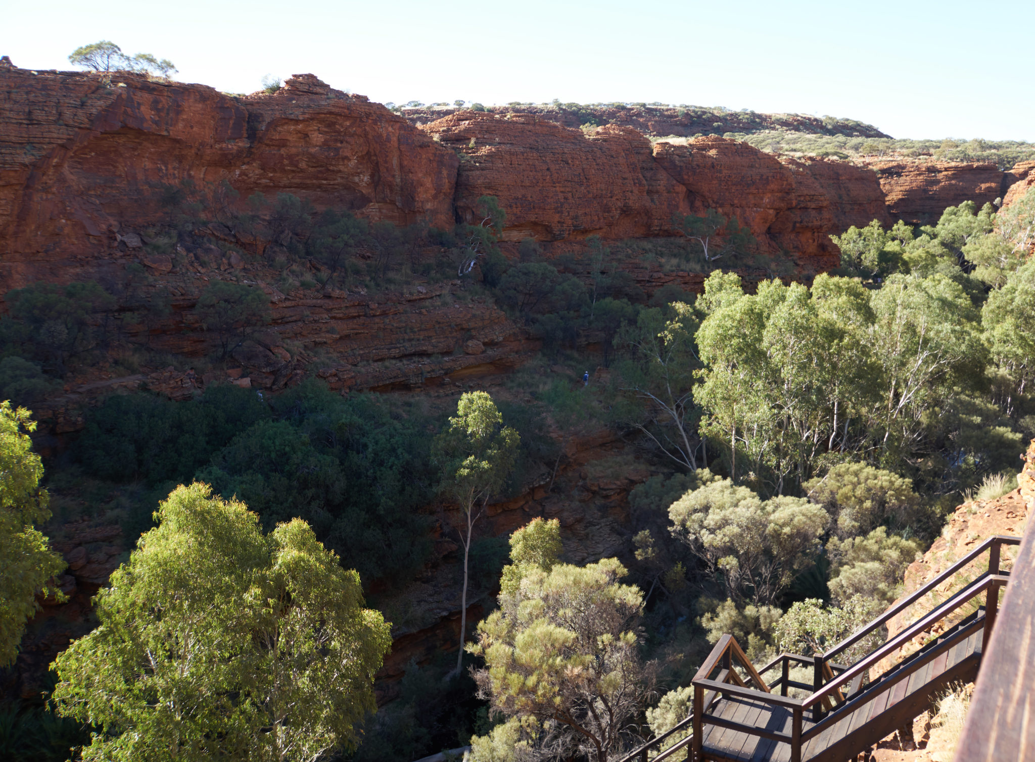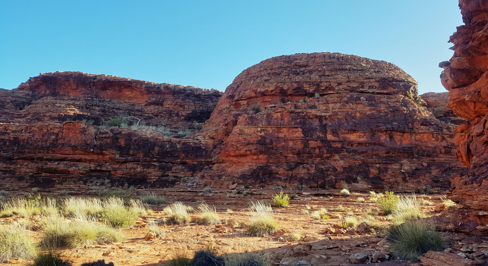 We had one activity planned for our last day on tour. It was a Kings Canyon Rim Walk. To avoid the heat (which would be a horrendous 37 degrees again) we were again up at 4:45 am, to pack up camp and get to the canyon. The first part of the walk was about half an hour up a vertical incline to get to the top of the canyon. It was nicknamed “heart attack hill” because some people have had heart attacks attempting the hike in the heat. Luckily for us, it was still cool in the morning, we were warned to have enough water for the hike and we took a few breaks during the ascent.