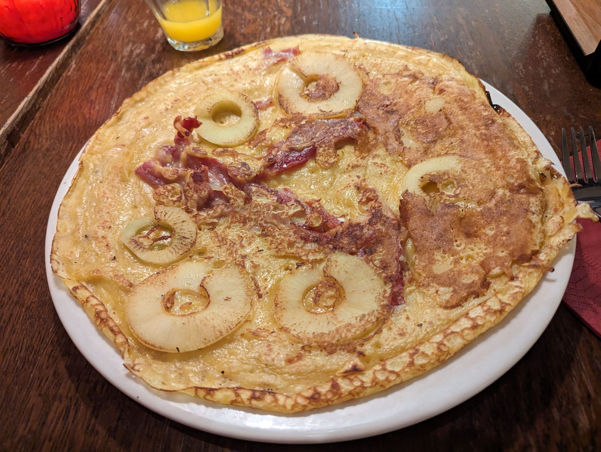 After my small detour to Rudi’s, the next thing on my to eat list is Pannenkoeken. This is the Dutch version of a pancake. Instead of the fluffy bready North American version, this one is flat and can have savoury elements to it. To try this I visit the Pancake Bakery. I order a bacon and pineapple pancake. I have never seen this combination of ingredients before but it seems pretty normal here so why not? The mix of savoury and sweet is certainly interesting! It’s less like a pancake and more like a crepe/pizza. It’s certainly a surprise but a tasty one at that. I will say that they are quite large and quite filling so the only downside is there’s no way someone could sample multiple variations alone. I think going with friends and trying different versions is probably the best way to enjoy this tasty Dutch treat.