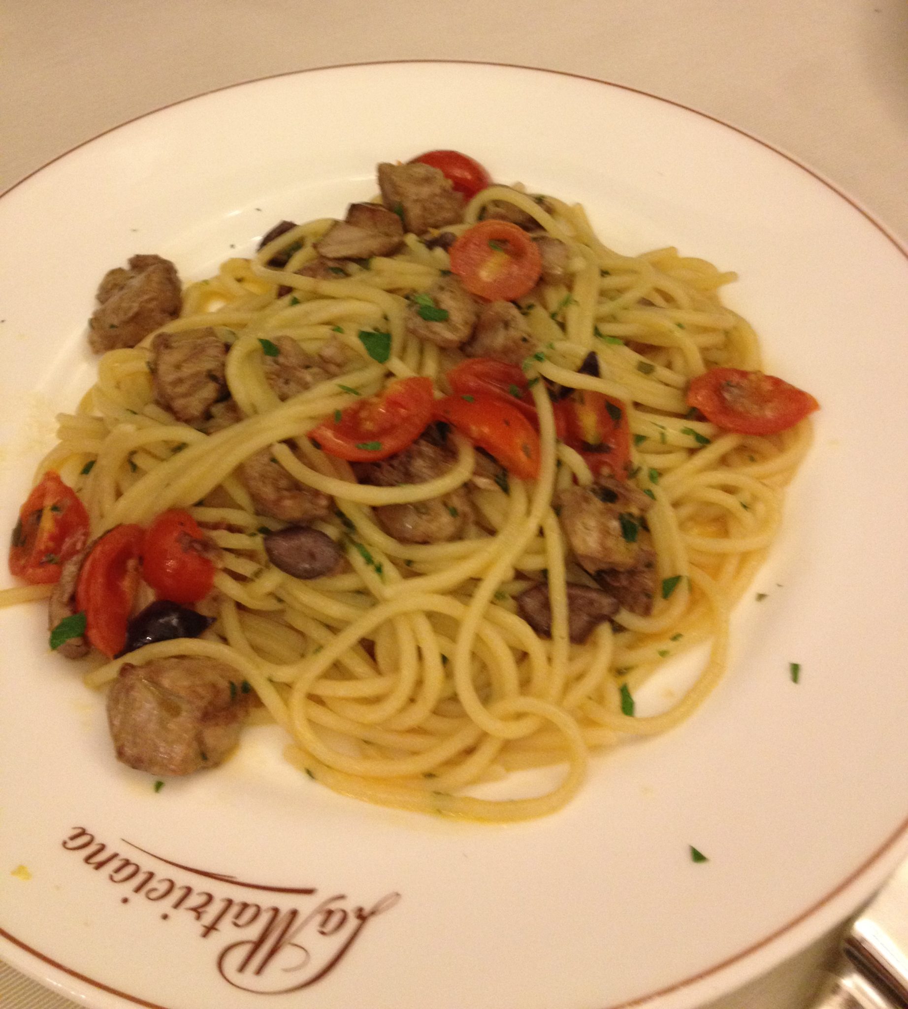 For our last dinner in Rome, we had walked by La Matriciana a few times during our stay in Rome and we had wanted to try it. Its right across the street from the opera house and had a somewhat “classic” feel to it. We ordered a few pasta dishes, some wine, a steak and some fruit for dessert. Its really hard to keep saying how tasty all the food we had was. You run out of words to describe it and so I’ll just say that we weren’t disappointed with our last meal in Rome!
