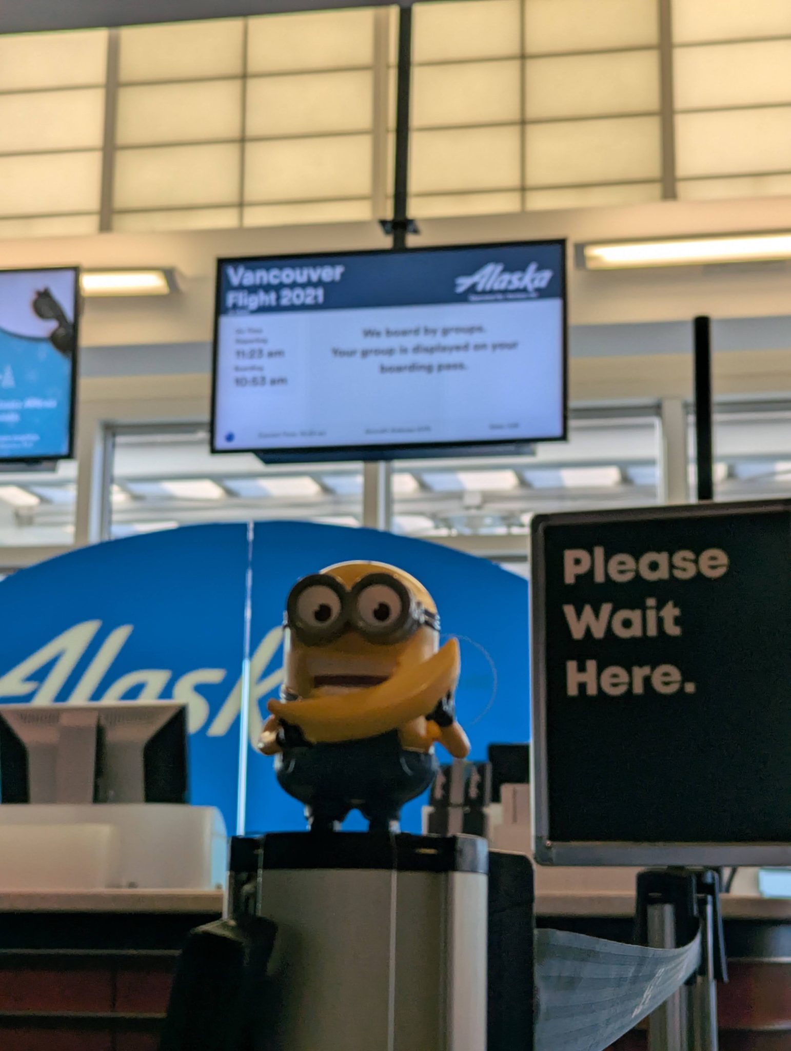 After landing and clearing US immigration and customs, I have a short layover before catching a short 45 minute flight to Vancouver. I quickly pop into the Alaska lounge for a morning beverage before heading to my gate. There’s a brief delay but soon we are boarding and on our way. The flight between the two cities is super short and right when you reach cruising altitude you’re already preparing to descend! And soon enough the familiar two totem poles of my home airport of Vancouver International are welcoming me home!