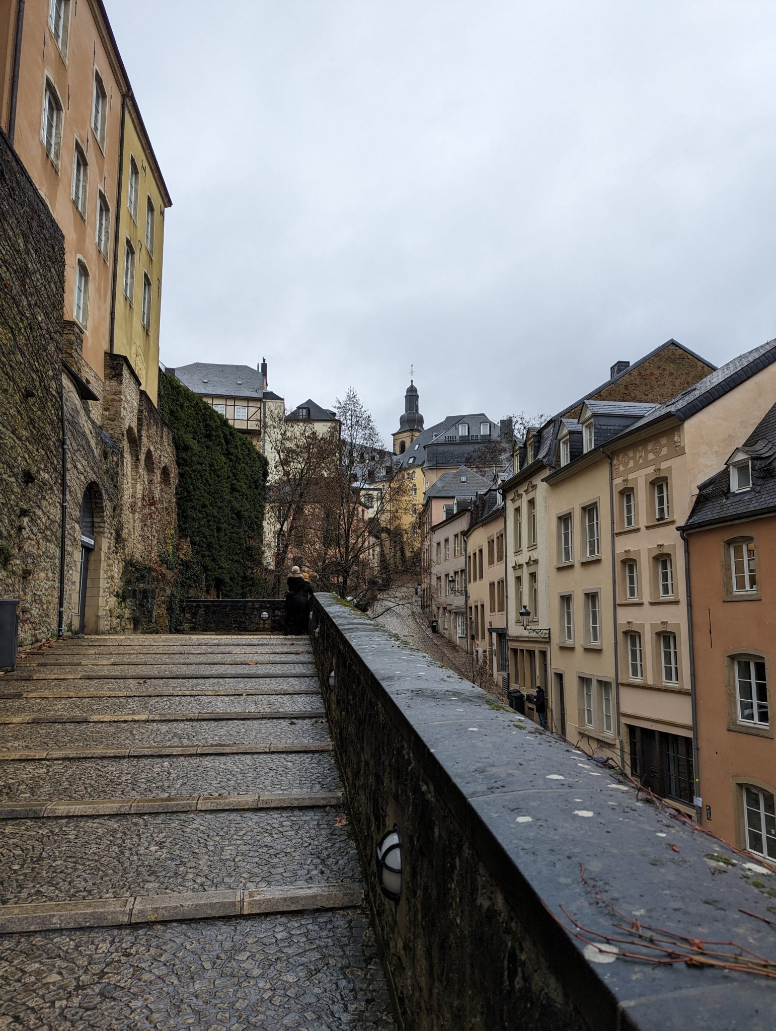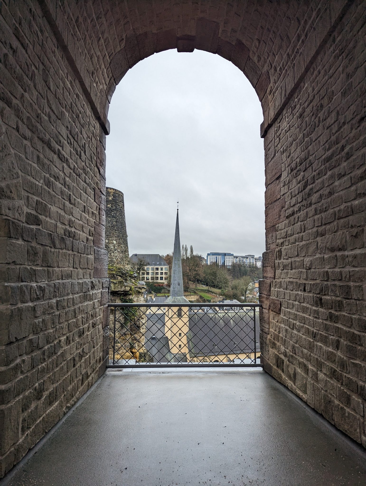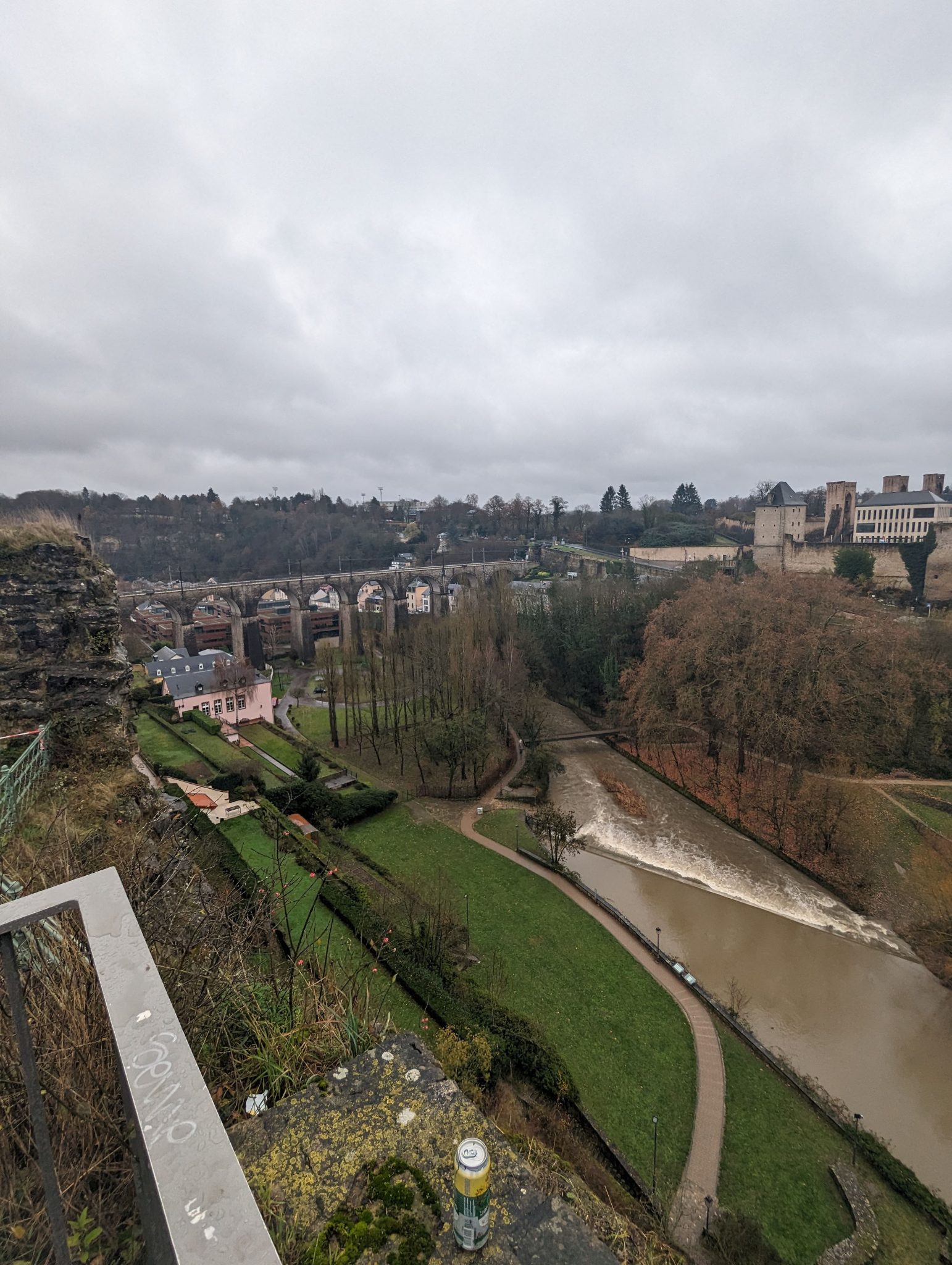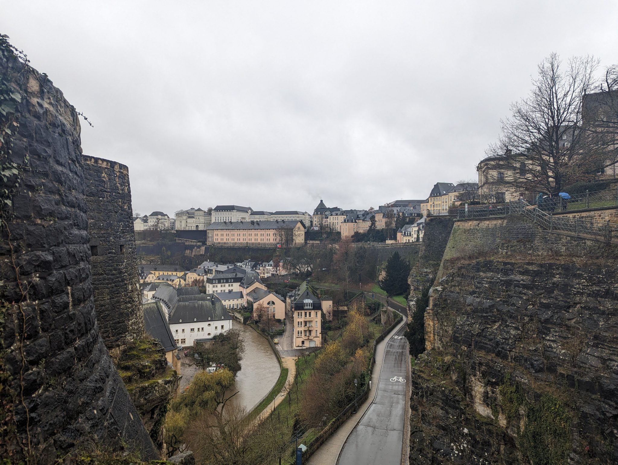 Upon existing the Casemates you arrive at the Chemin de la Corniche which is an elevated walkway with SPECTACULAR views of the city. It is endearingly called the “most beautiful balcony in Europe” and I would be inclined to agree! It is a beautiful path that runs along the top of a cliff side and overlooks the valley (still part of the city) below. Even though its a fairly rainy day, I still very much enjoyed this stroll and taking the time to stop and take in such a fairy tale landscape.