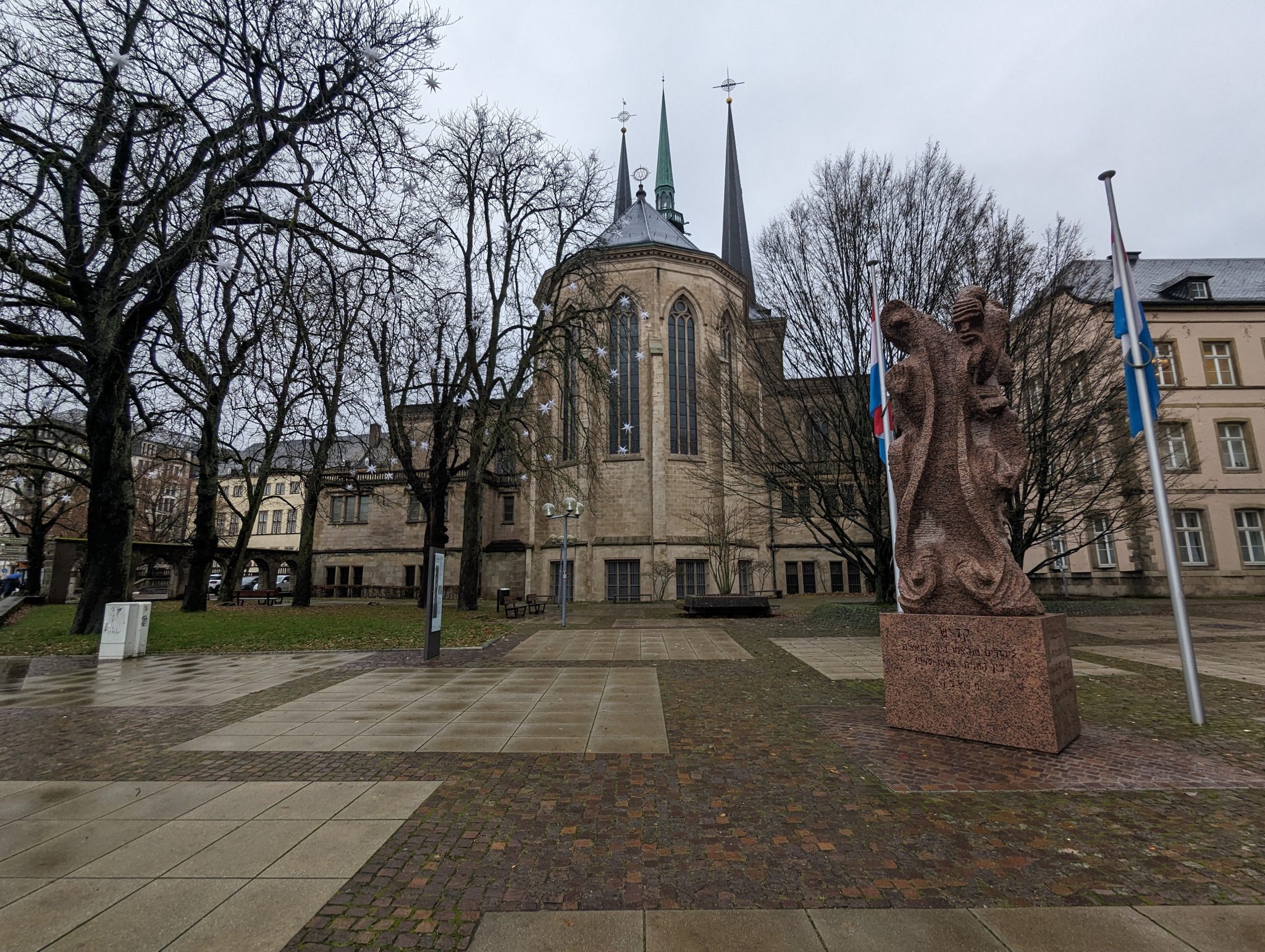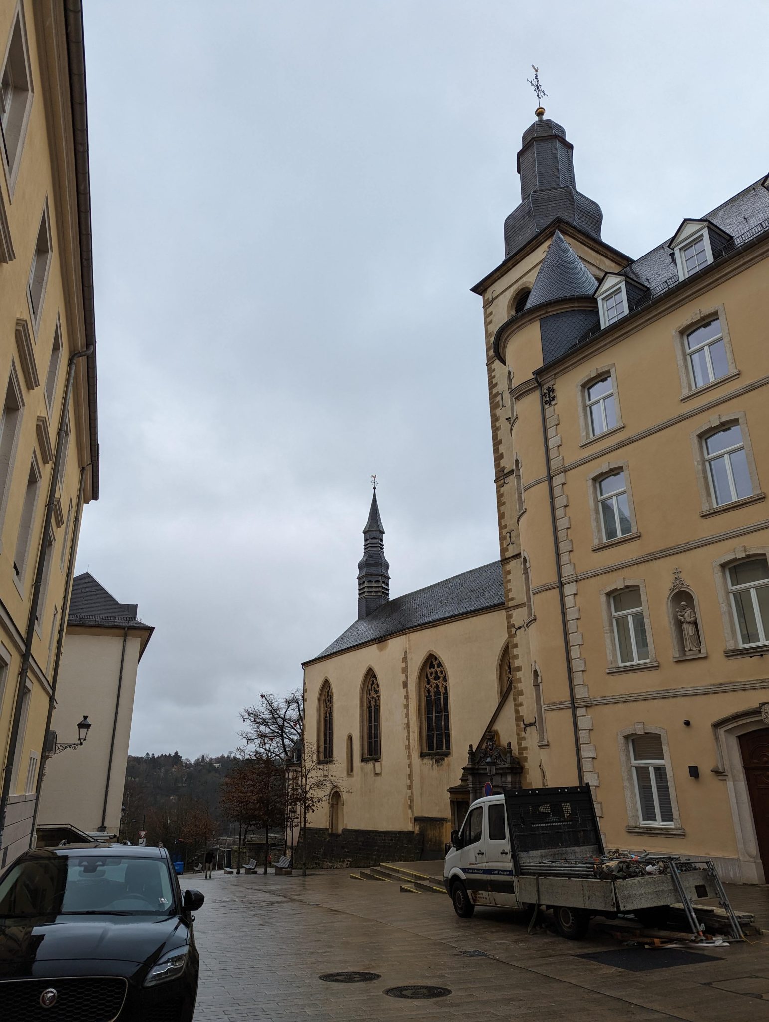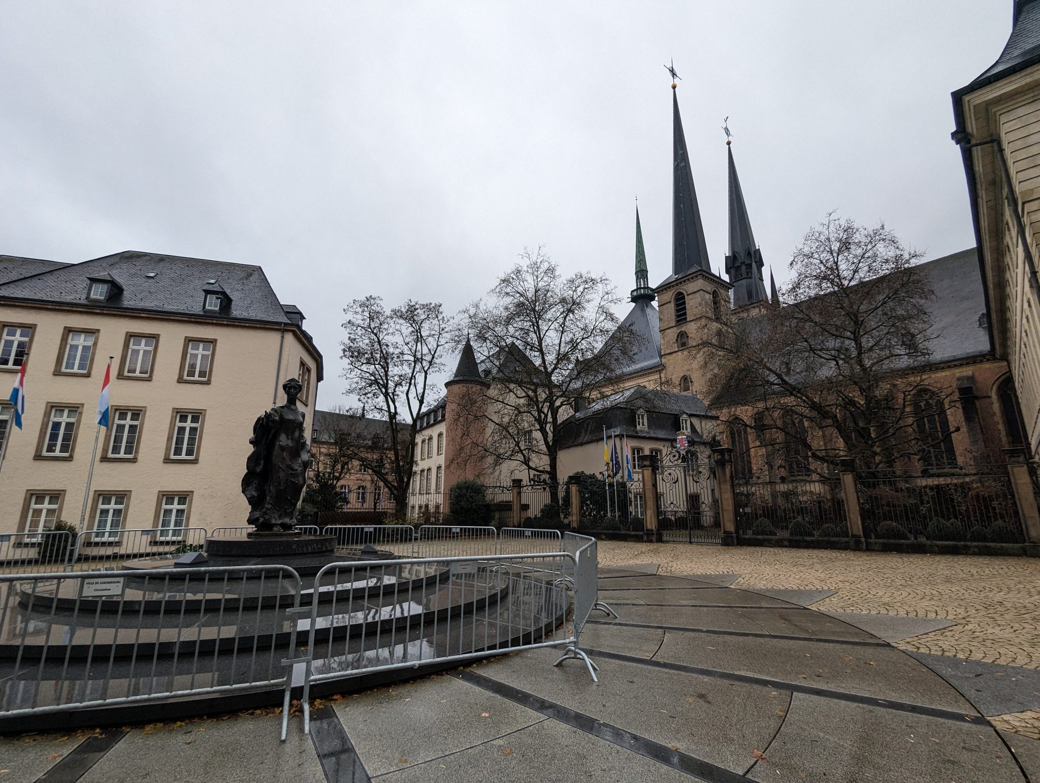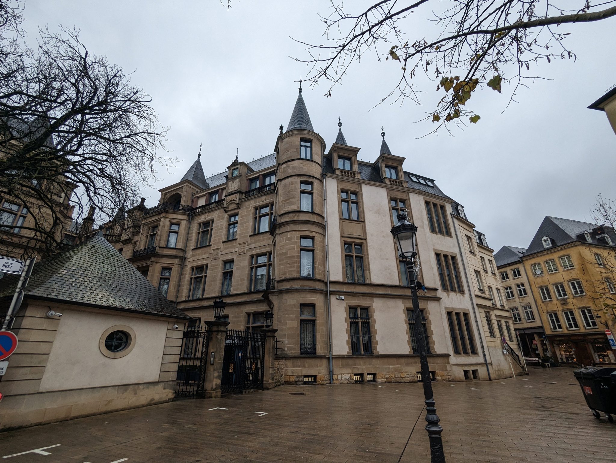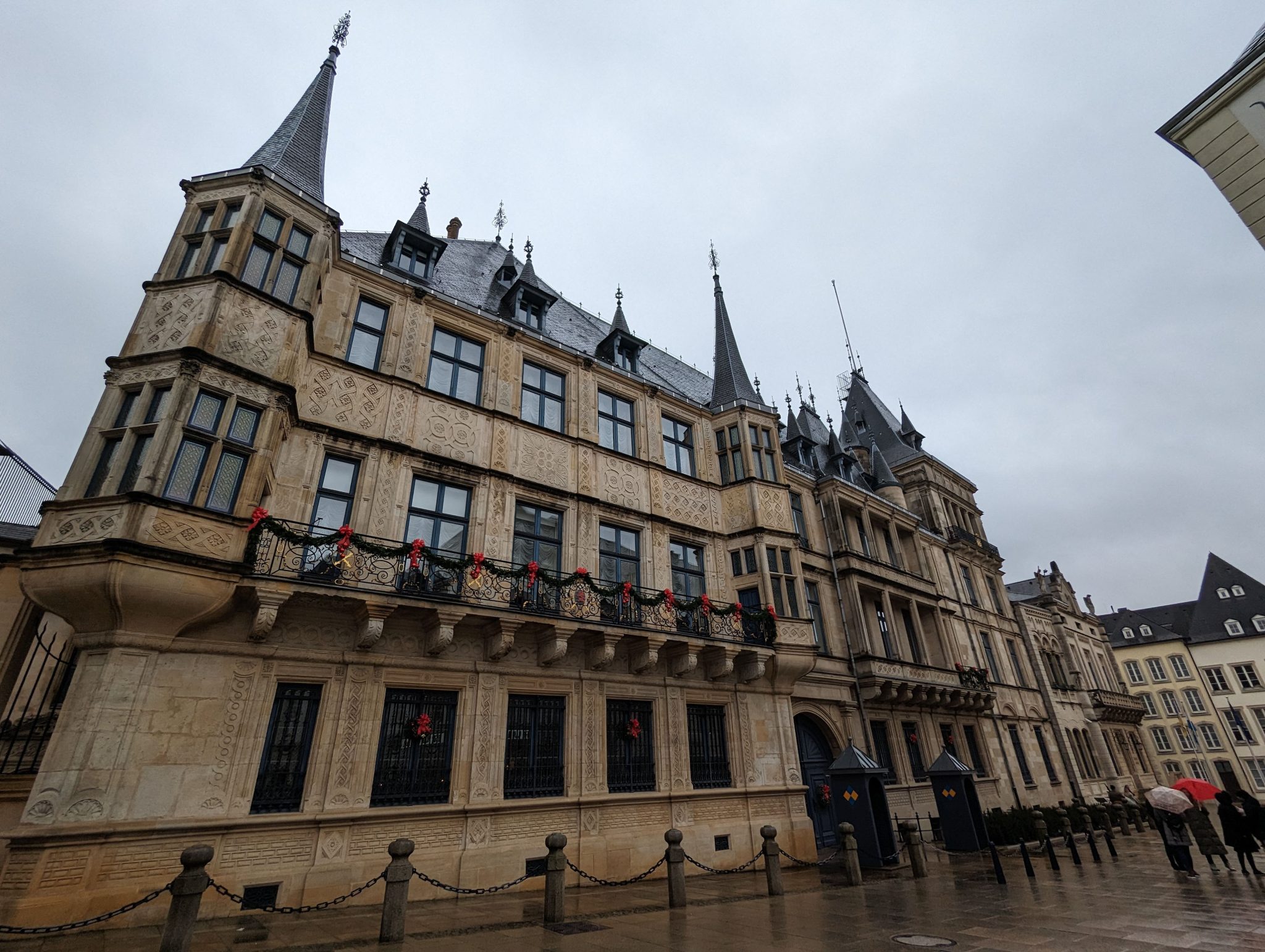 The first stop on the path is the Grand Ducal Palace. This is the residence for the Grand Duke of Luxembourg. It’s where he resides and performs his duties. Tours are only offered in the summer months, so I resign myself to wandering around the perimeter of the premises. While not as grand as other palaces, it’s still looks very lavish and actually quite functional!