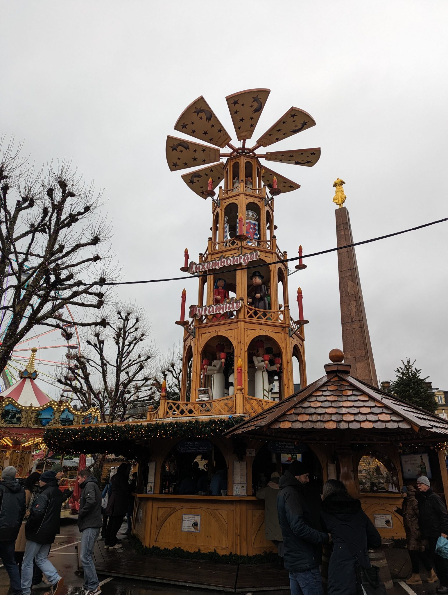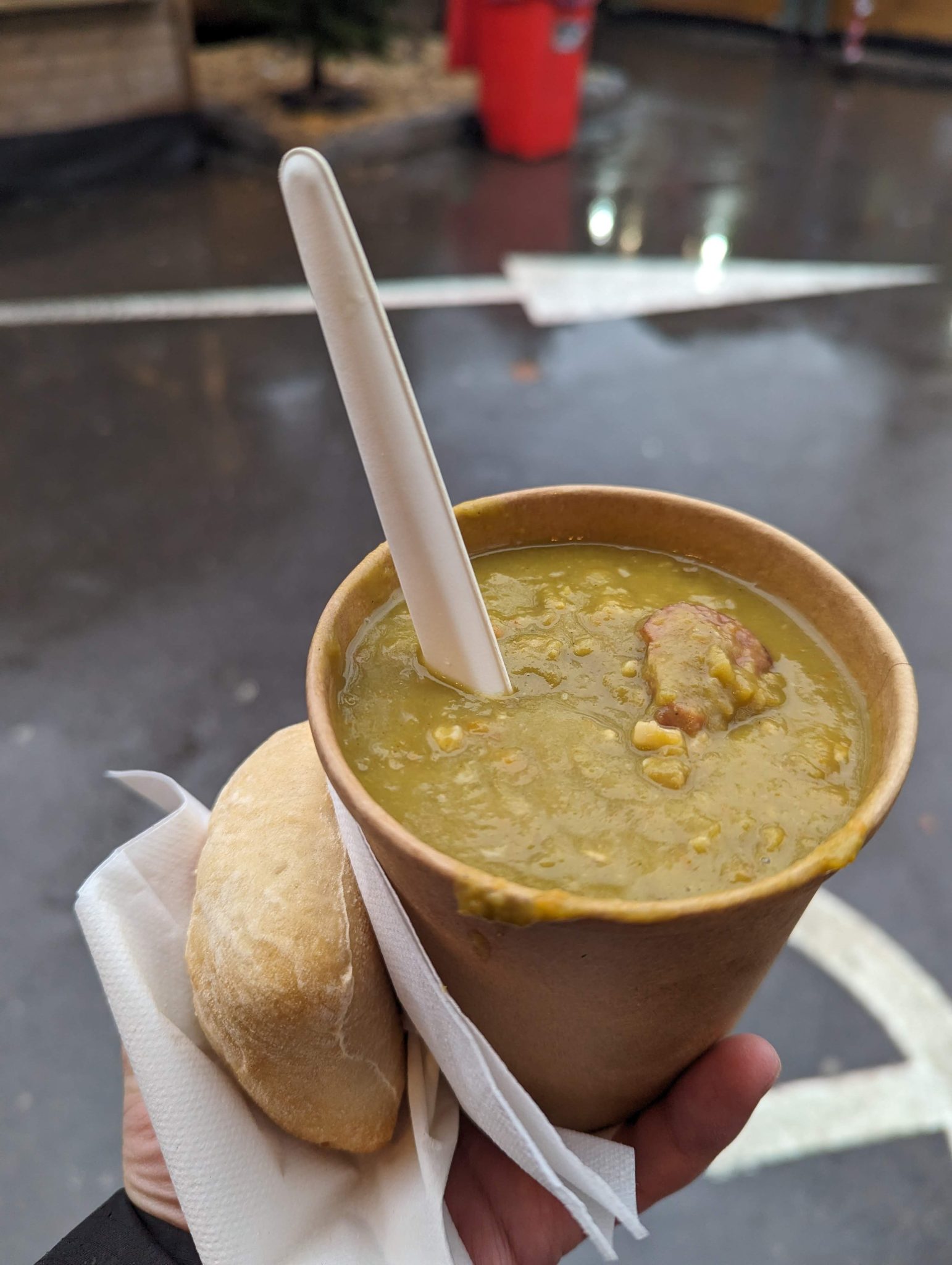 While exploring, I pick up different snacks along the way. I pick up some potato fritters which come with apple sauce. It’s a neat combination of sweet and savory! I also stumble on a place serving Pea soup. And if you have been following along, you know that I have a current obsession with pea soup so it is a must for me here. A little later on in the afternoon, I pass by this stand with a big wok of interesting pasta? I ask and it is called spaetzle which is a traditional egg noodle. It’s something new so I order some for takeaway for dinner later on. I can safely say the food options at these markets are top notch. There were so many things I wanted to try but my stomach and wallet simply did not allow. It just means another trip is required!