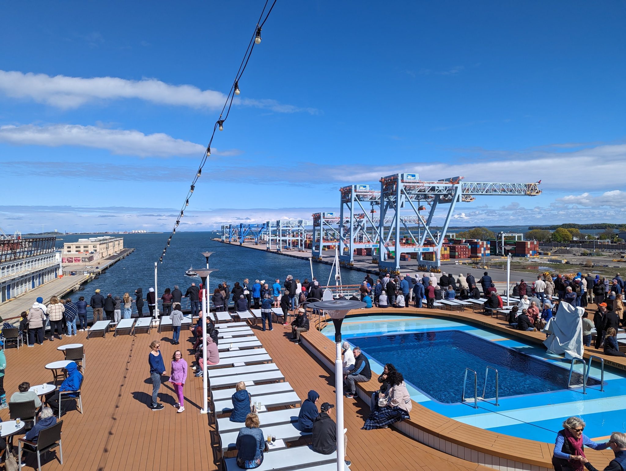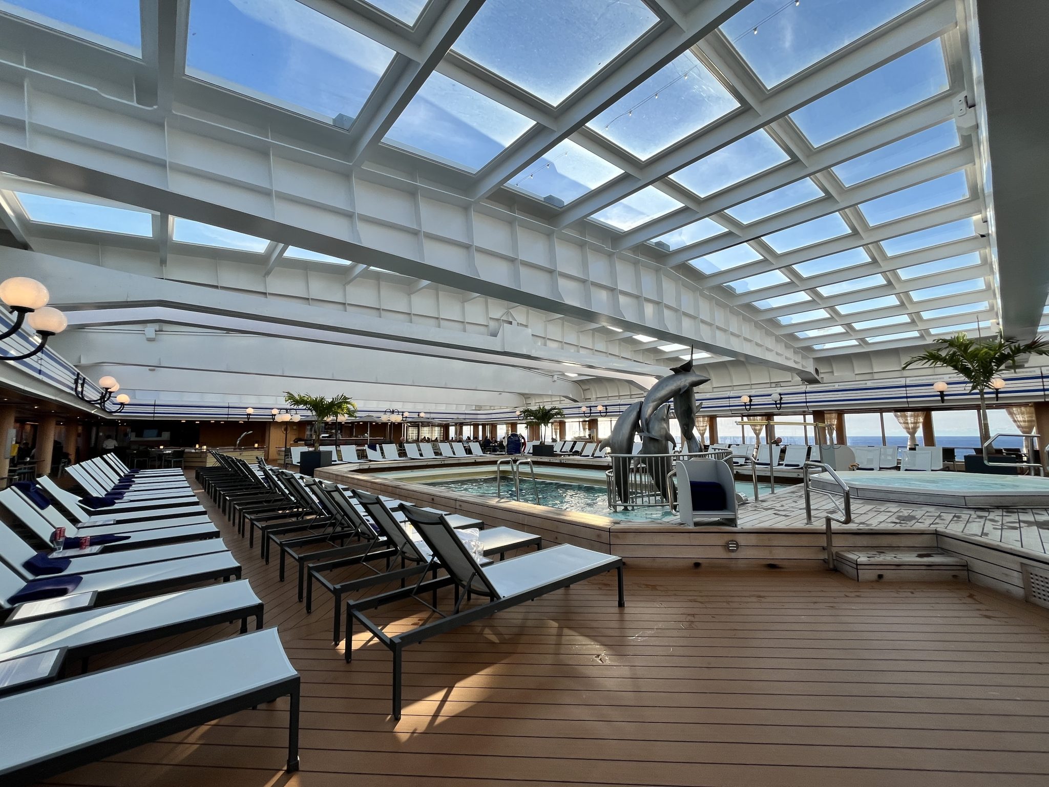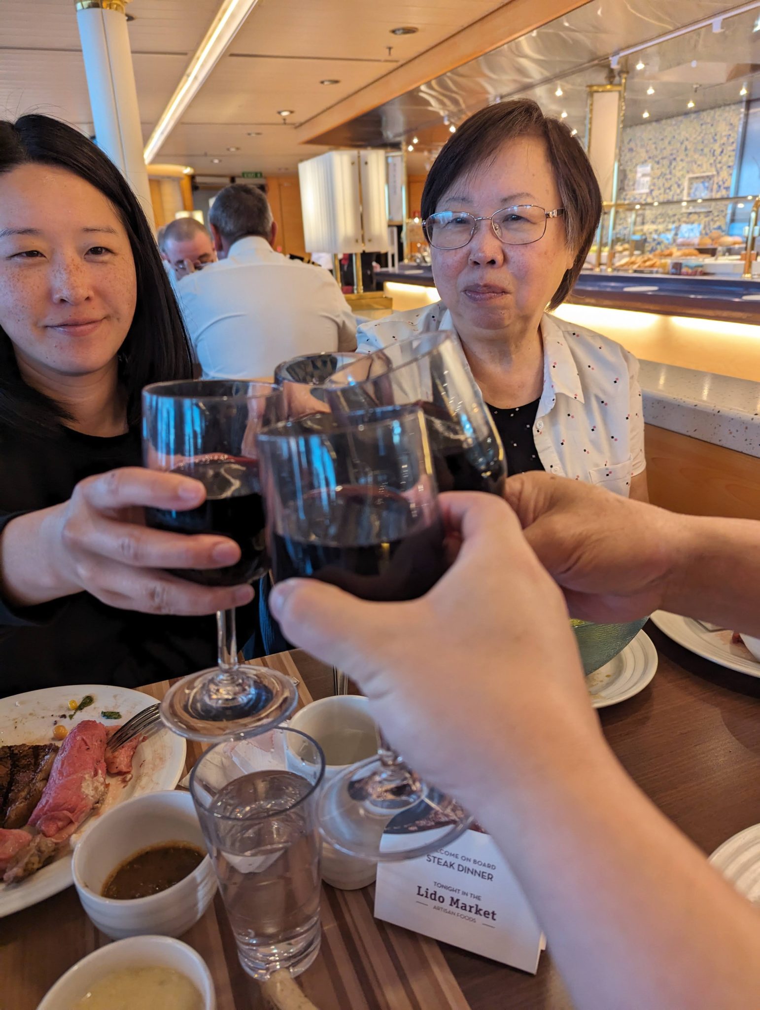 Soon enough, Boston is in the rear view and we are well on our way. There are a few organizational activities to get acquainted with the ship in the afternoon and soon we find that its time for dinner. Instead of going to the main dining room, we decide to go casual and head to the Lido Market which is the more casual dining option onboard. We’re all in good spirits looking forward to these next seven days since it will give us a lot of time together!