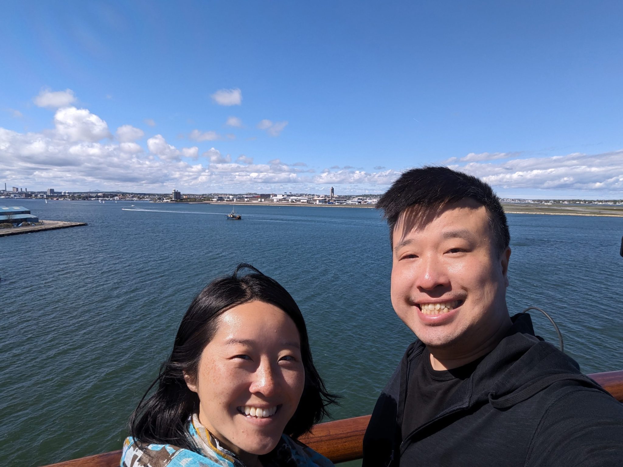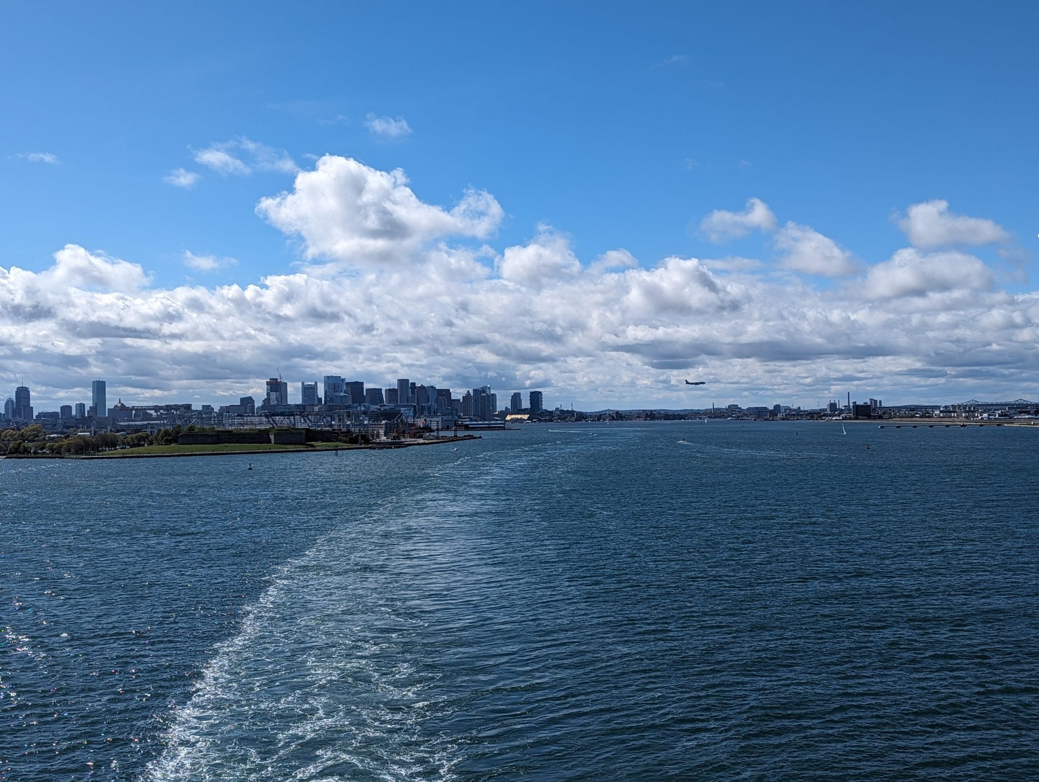 Soon its time to so The Sister and I head outside on deck to see our cruise set sail. One of the cool things about the port is that it is right under the flight path of Boston International Airport. So while we’ll be cruising away, we do so while watching a lot of planes fly over on approach to land! We spend a good amount of time enjoying the sailing festivities and seeing as its a beautiful sunny day doesn’t hurt either!