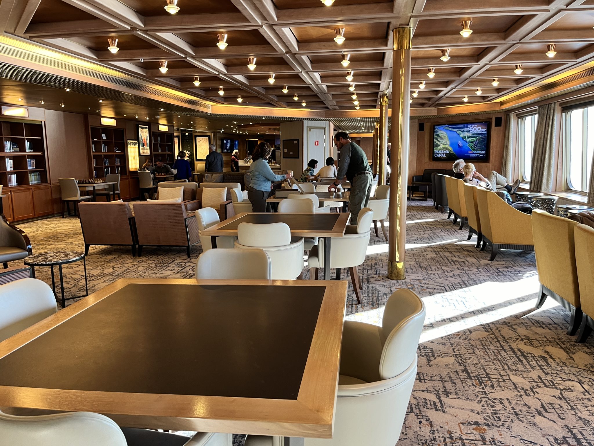 After lunch, we decide to head onboard and get ourselves settled in our cabins. The Sister and I decide to wander the cruise ship and explore our home for the next few days. The boat is a bit dated and smaller than some of the modern ships. But we’ll later find out why that’s an advantage. But for now, it has a homely feel and already the ship starts to grow on us!