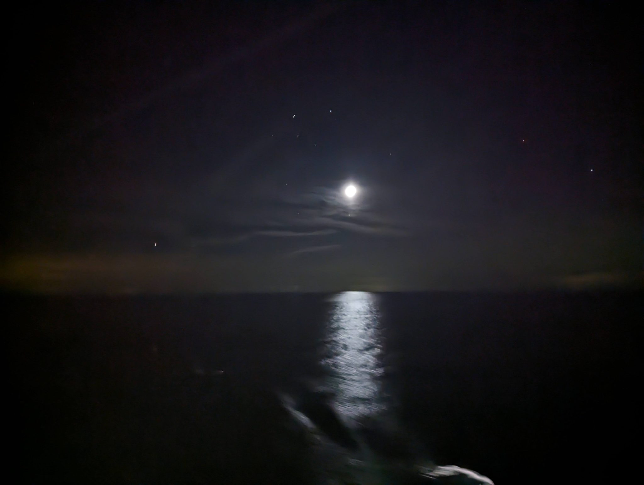 Before turning in for the evening, there were reports that the Aurora Borealis activity in the North America is particularly active. Given we are in the middle of the Ocean with very little light pollution, we decide to attempt and capture some of it. Sadly, nothing really comes of it, but it’s still kind of a neat to try and take night photos on a cruise ship in the middle of the ocean.