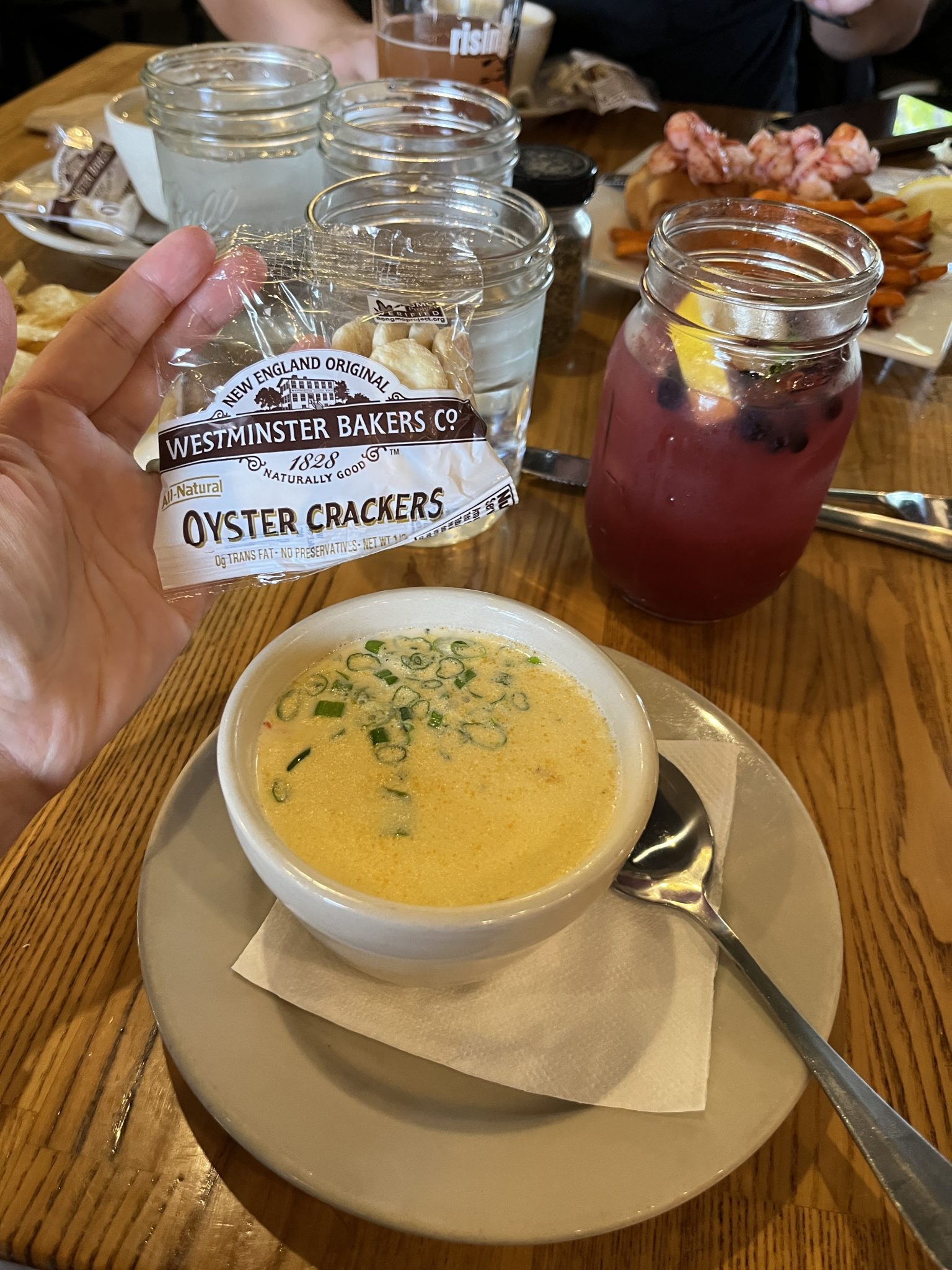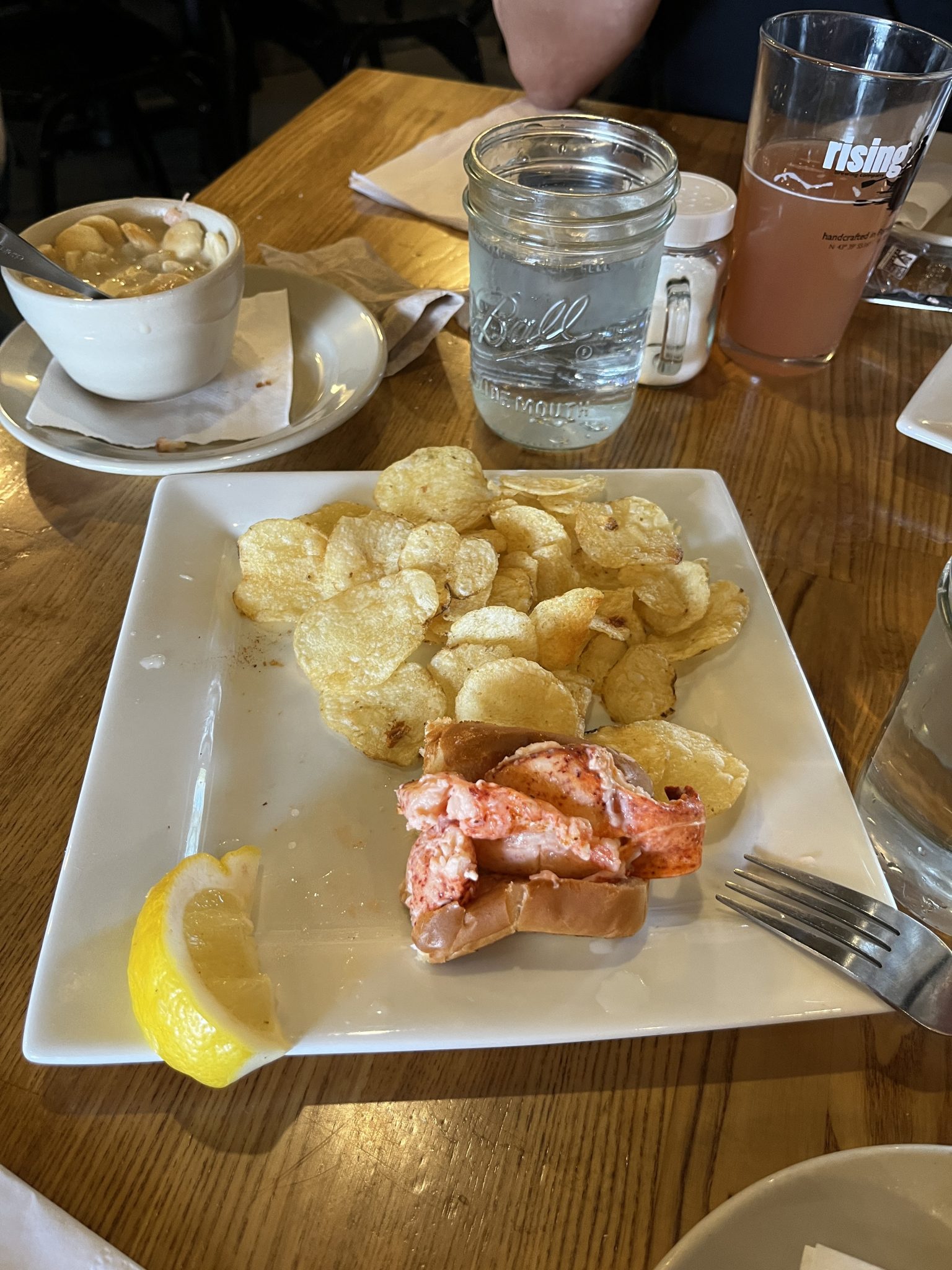 Another thing on our list is to have some Boston clam chowder. For this, we have a light lunch at Row 34. We also share some mussels along with our chowders for the family.