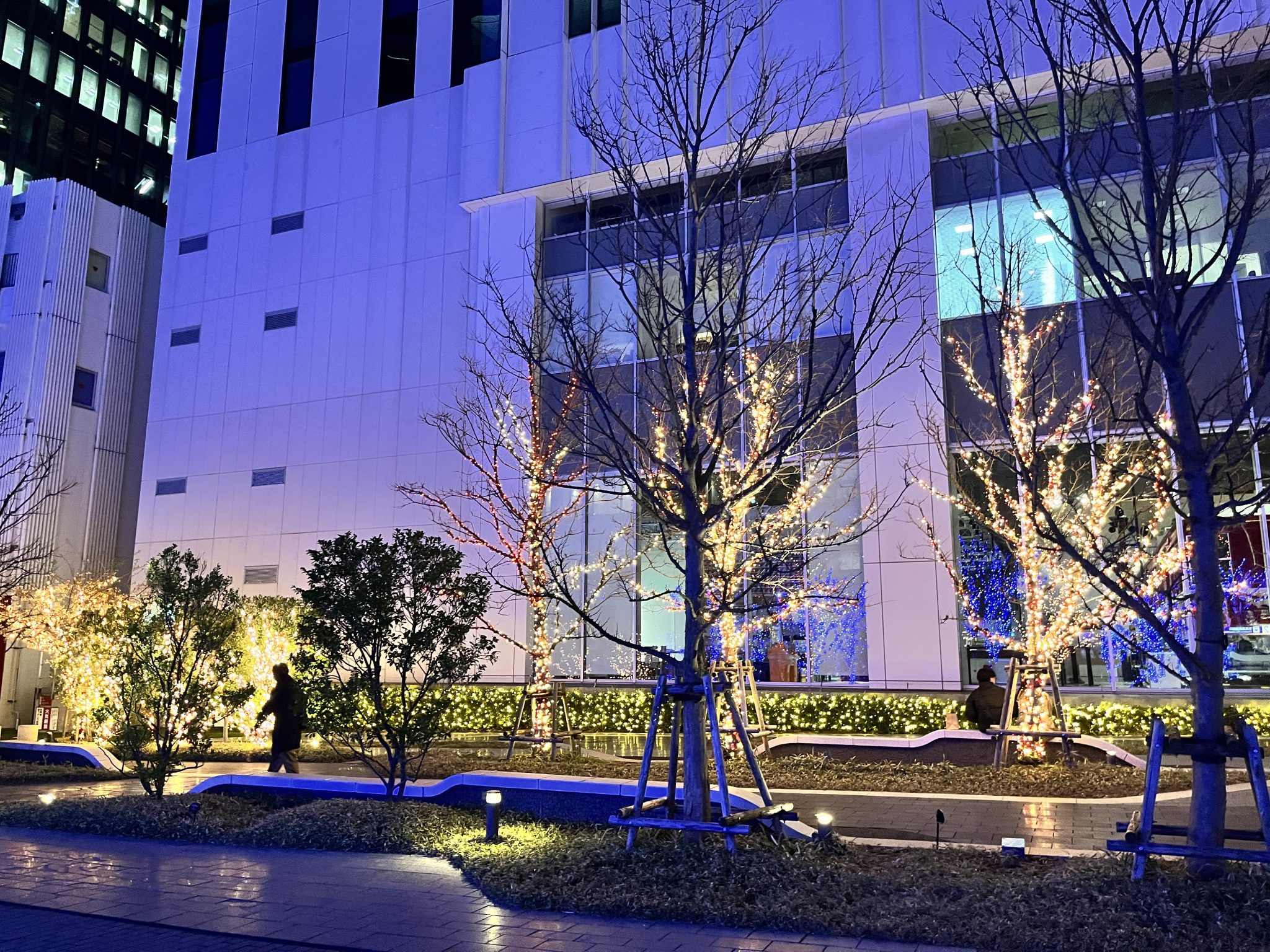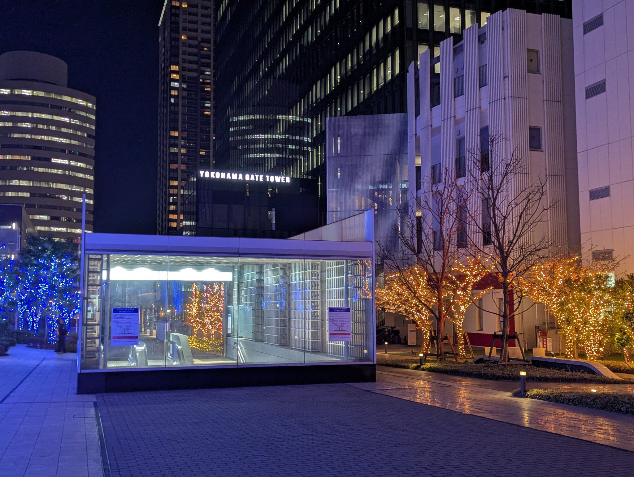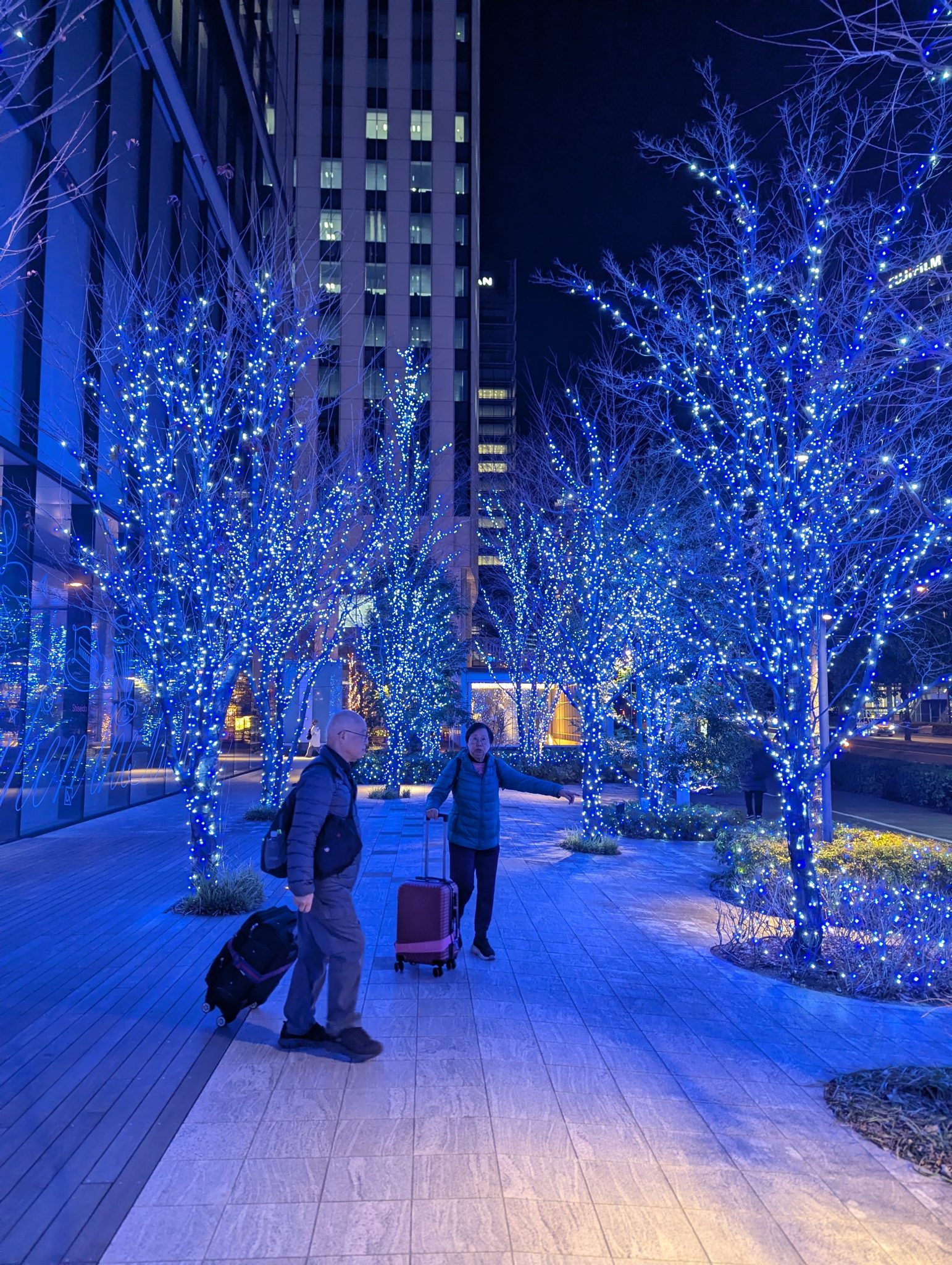 While waiting, The Sister and I make our first Japanese convenience store purchases. For The Sister she will always start with a Nigiri. For myself, I’m a big egg salad sandwich guy. We introduce our favourites to the parental minions in hopes of selling them on it! Soon it’s time to board the train and its an hour long ride to Yokohama Station. After arriving in Yokohama station we make a single subway transfer. Once we surface we are welcome by a lovely decorated light display in central Yokohama! Either these lights are always here or its still a holdover from either Christmas or New Years! Nonetheless its lovely!