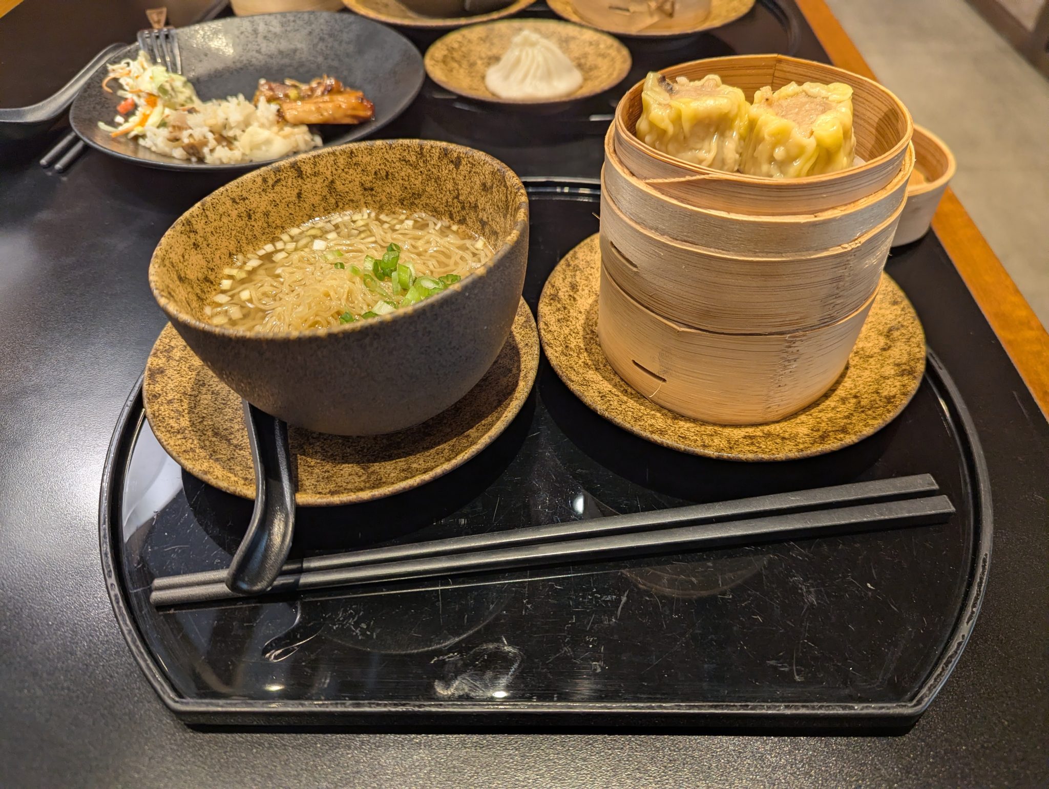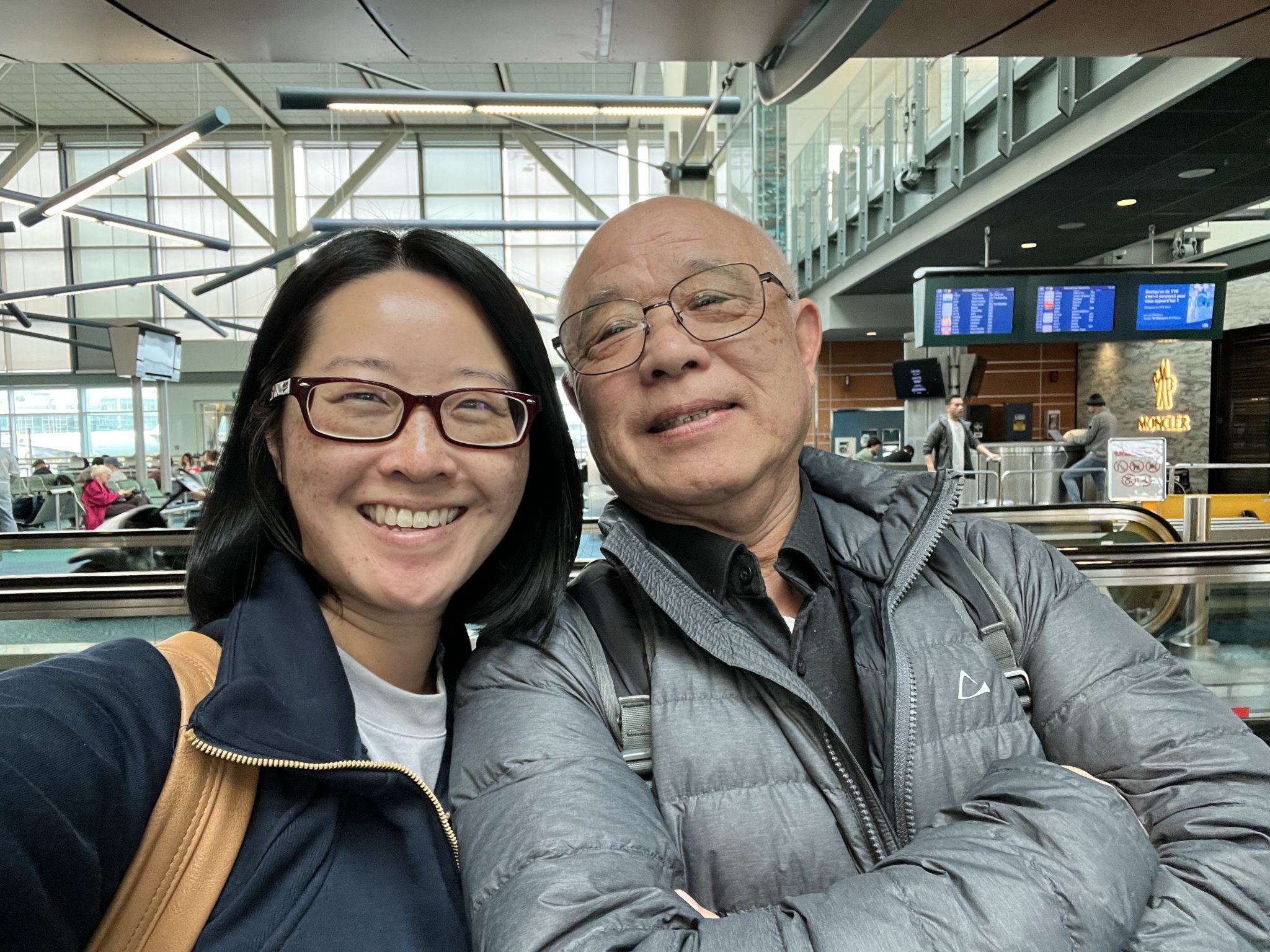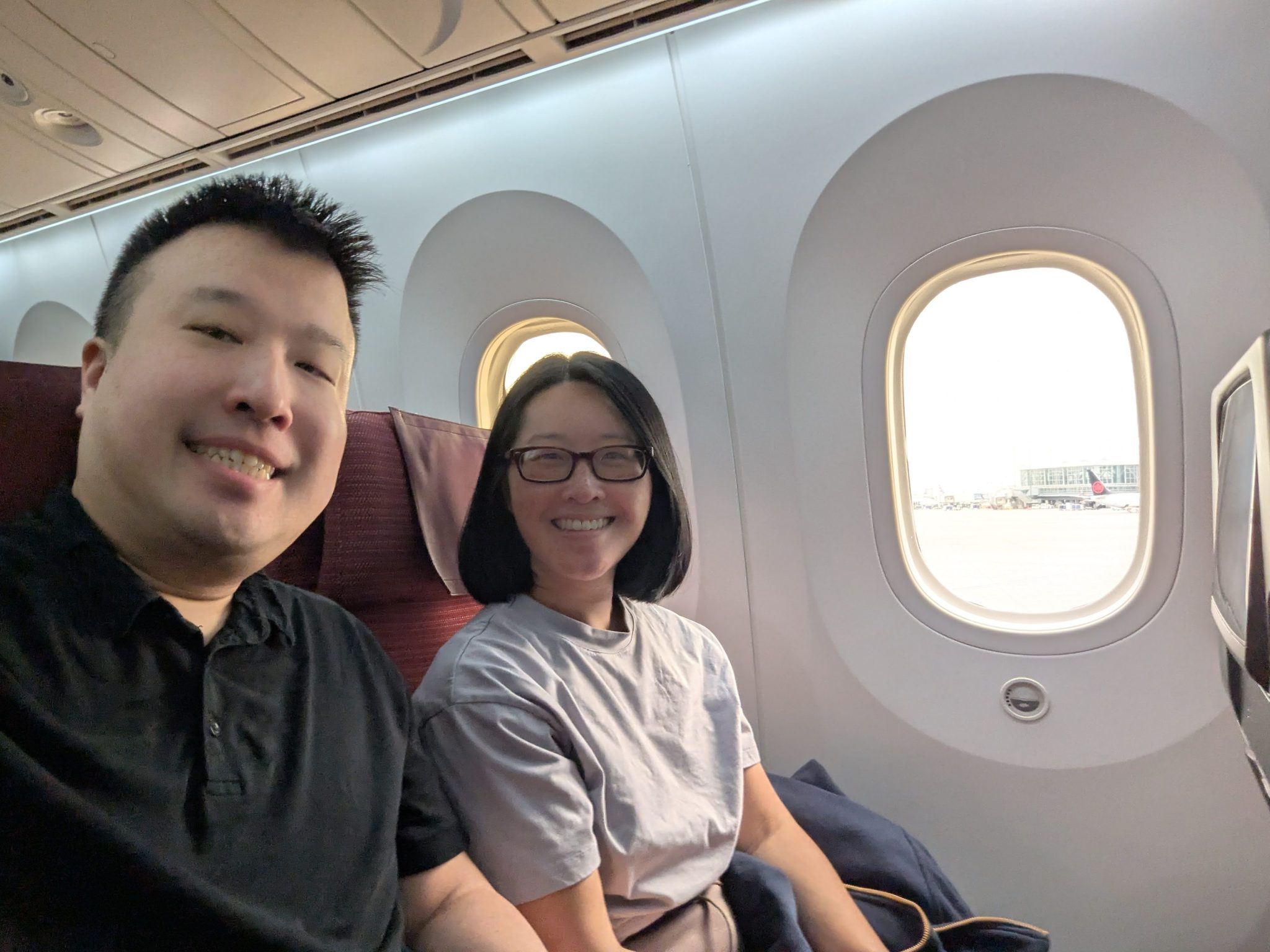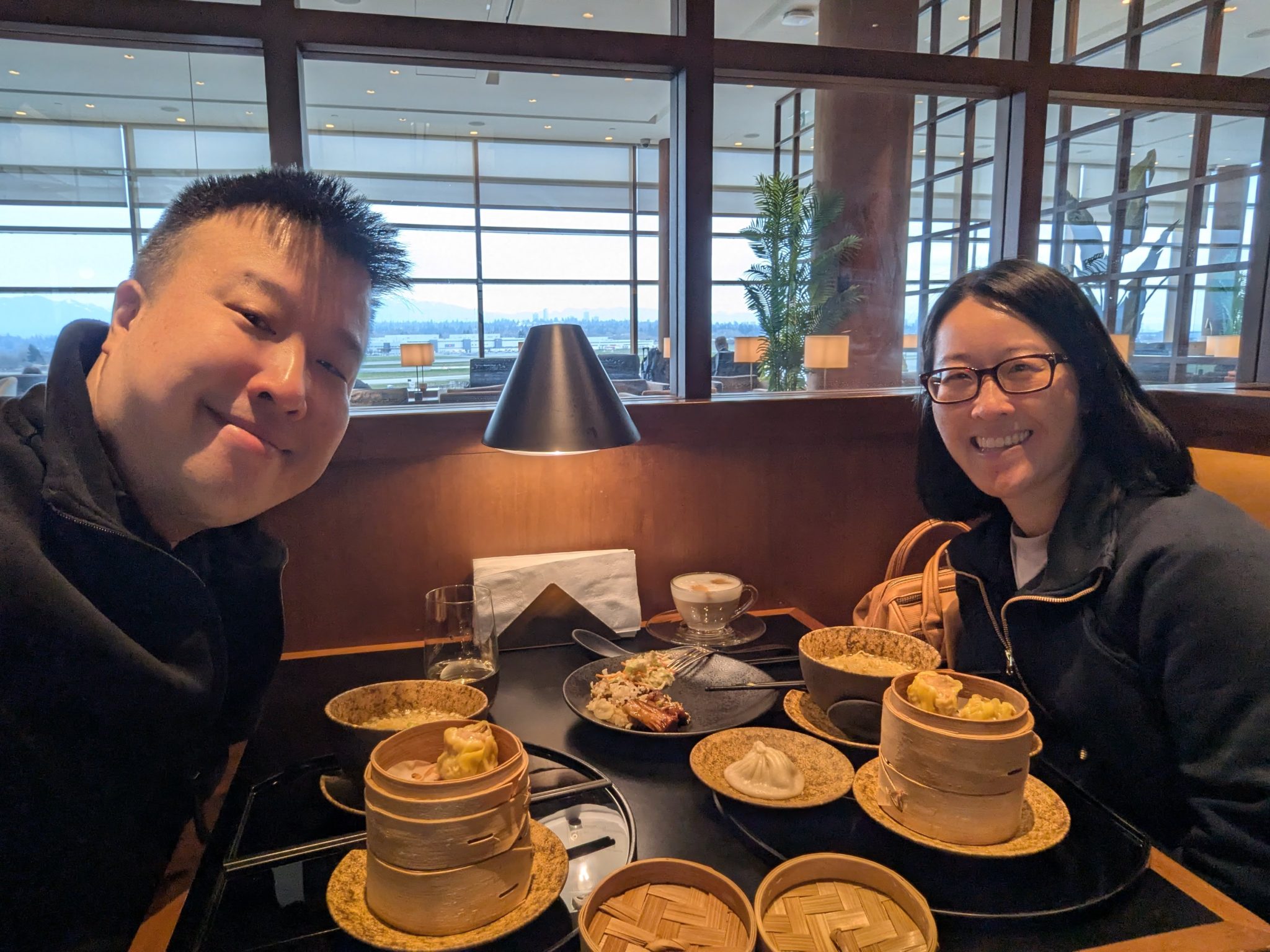 They also have a tasty noodle and dim sum bar which makes for a great lunch before we get on the plane. The Sister and I exchange messages with the parental minions to check in with one another. Before long we all have full bellies and are ready to board our flight.
